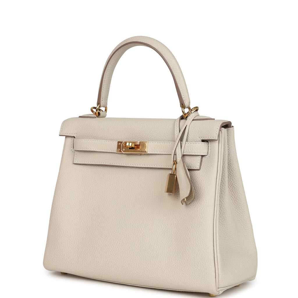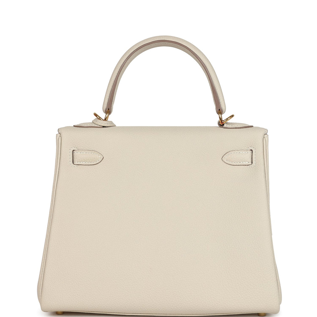 Pre-owned Hermes Special Order (HSS) Kelly Retourne 25 Craie Togo Gold Hardware