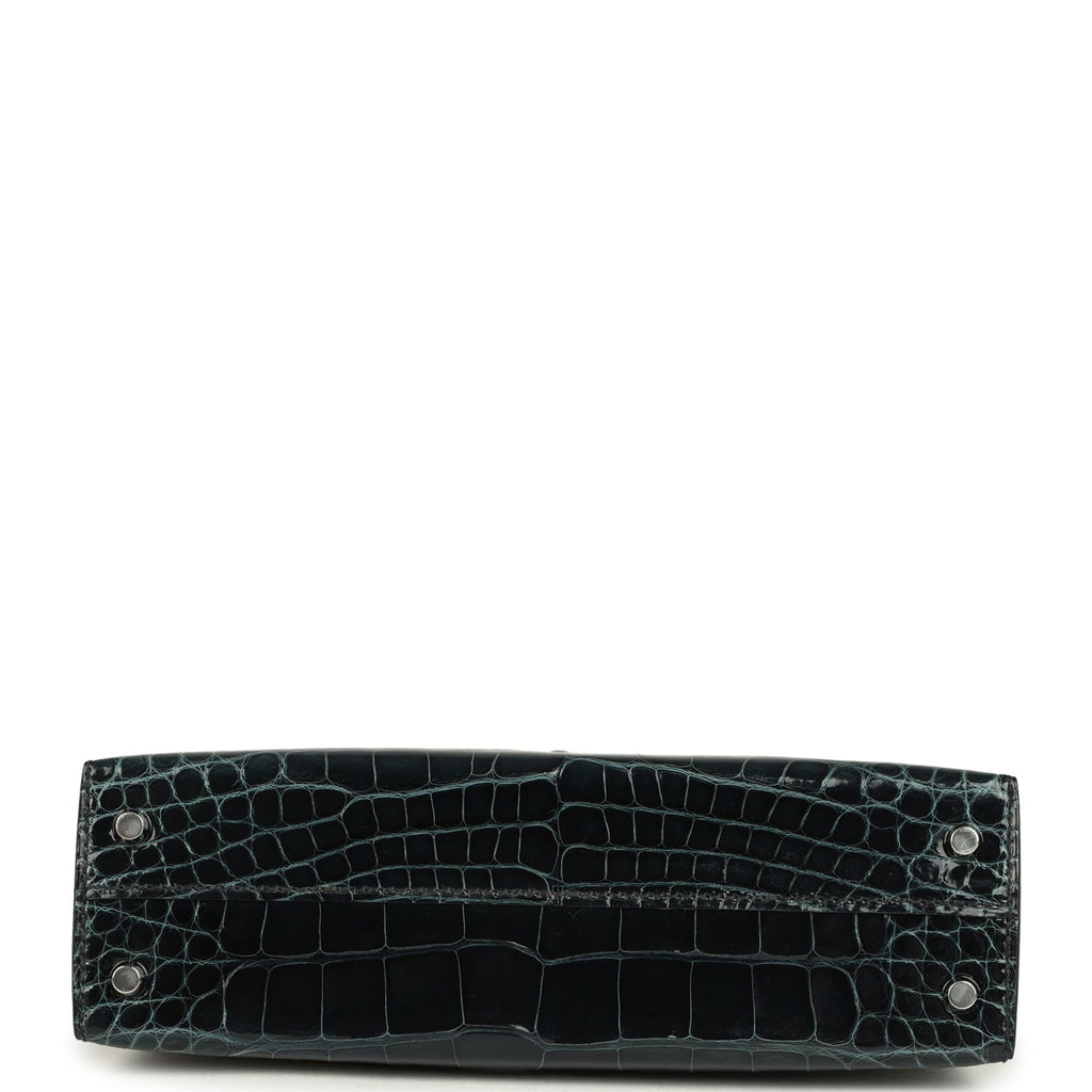 Pre-owned Hermes Special Order (HSS) Kelly Sellier 20 Vert Rousseau Verso Shiny Alligator Mississippiensis Palladium Hardware