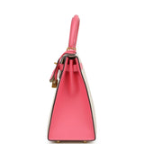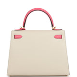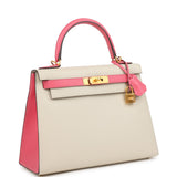 Pre-owned Hermes Special Order (HSS) Kelly Sellier 28 Craie and Rose Azalee Epsom Brushed Gold Hardware