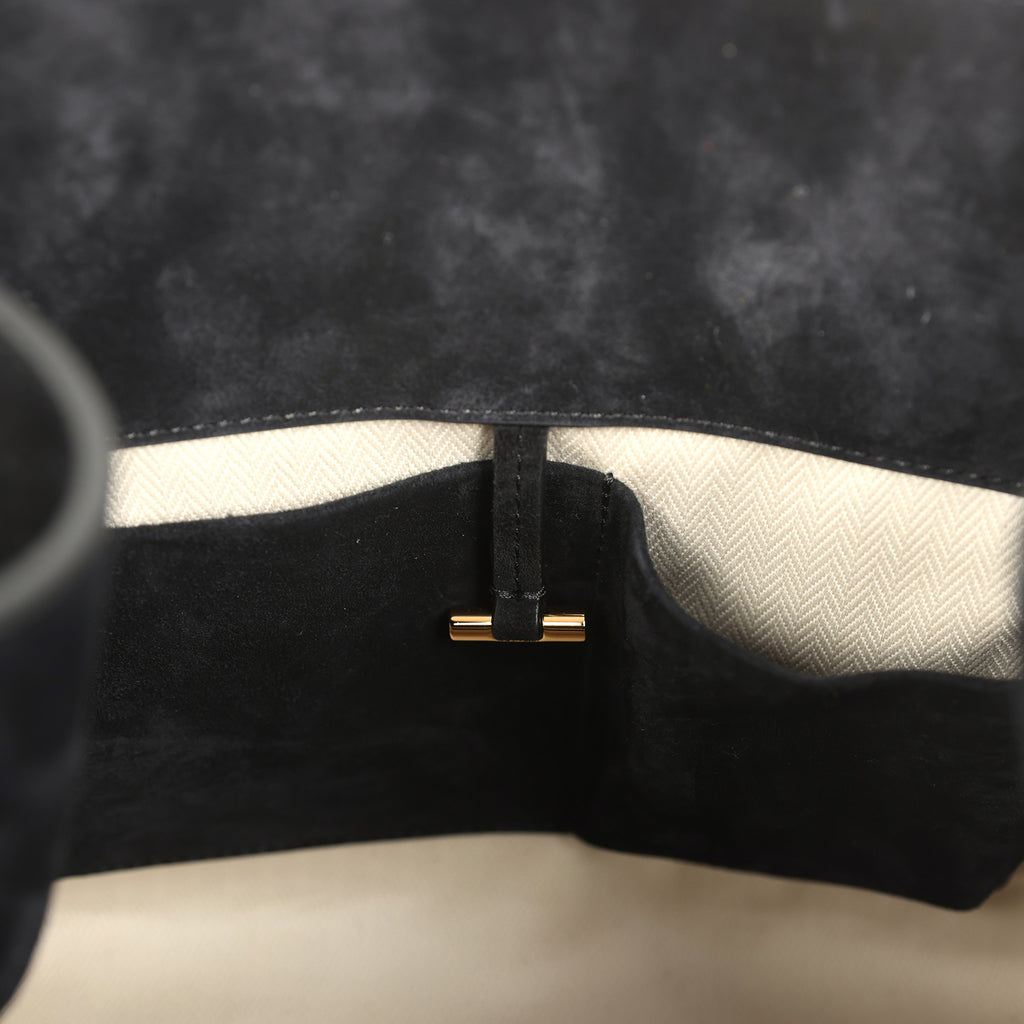The Row Soft Margaux 12 Bag Black Suede Gold Hardware