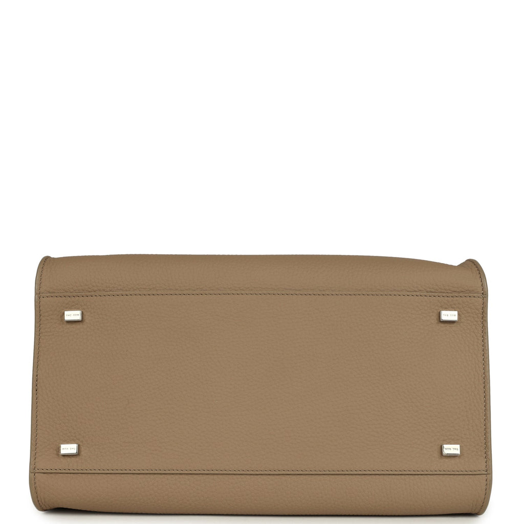The Row Soft Margaux 12 Bag Dark Taupe Calfskin Silver Hardware