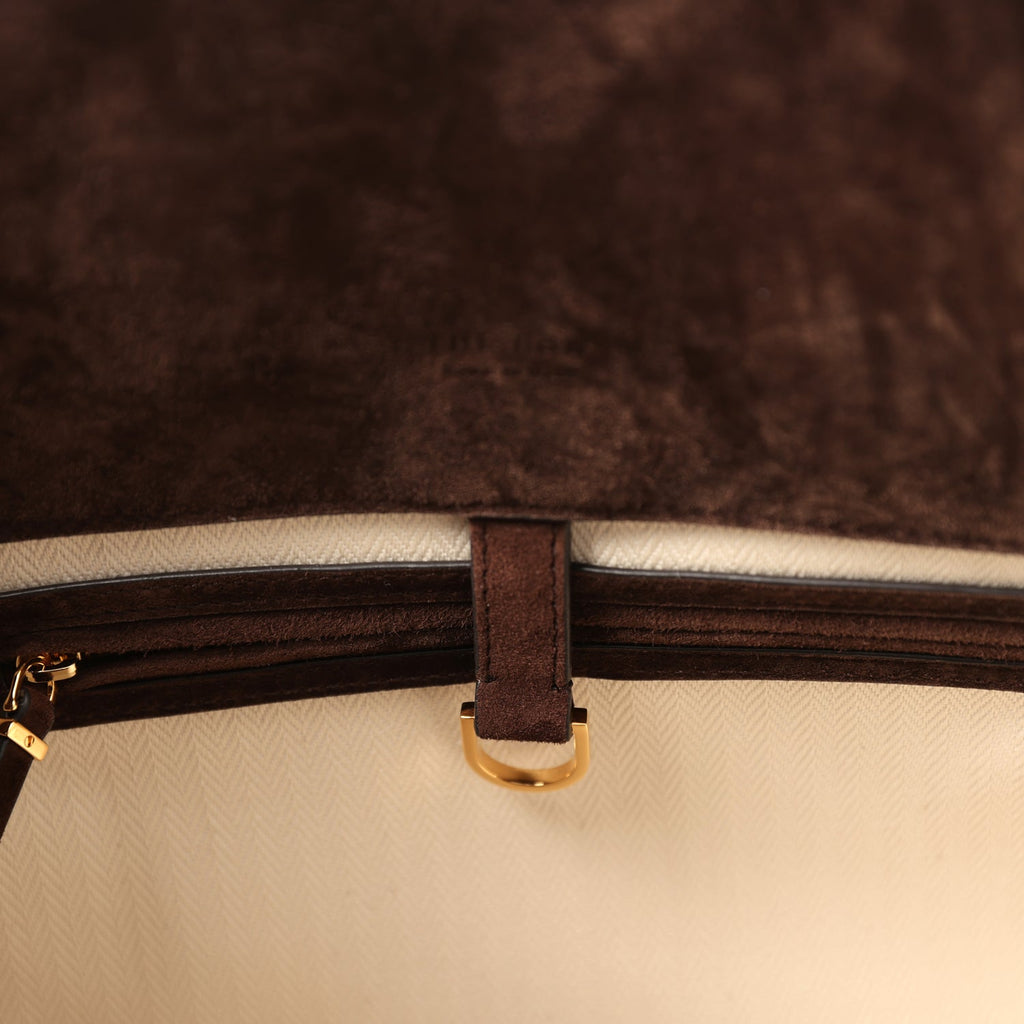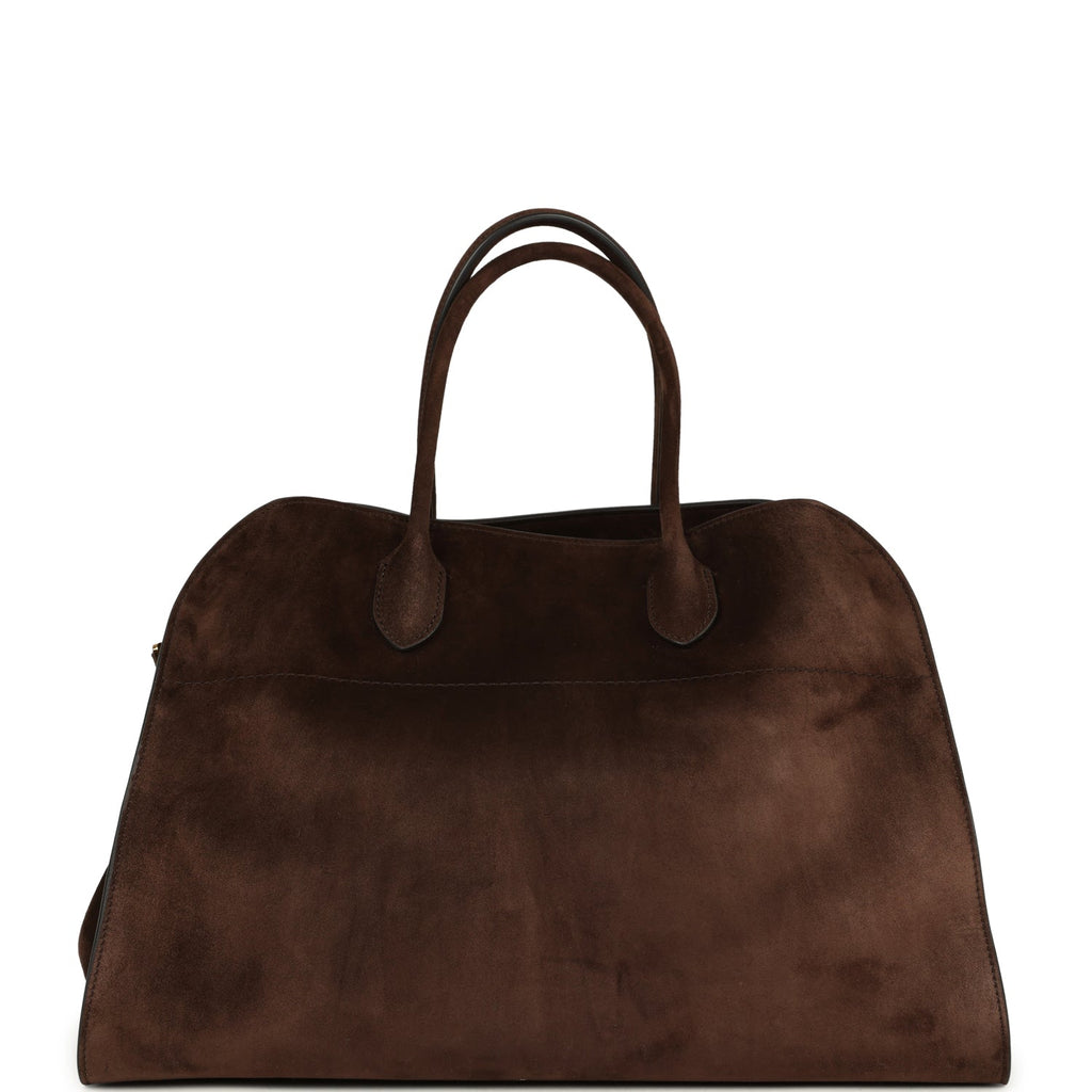 The Row Soft Margaux 15 Bag Mocha Suede Gold Hardware