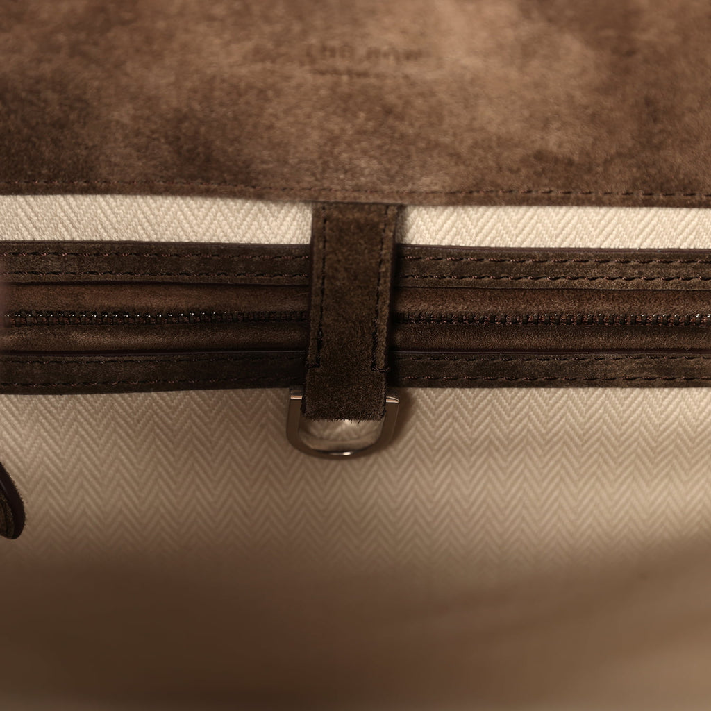 The Row Soft Margaux 15 Bag Nut Brown Suede Silver Hardware