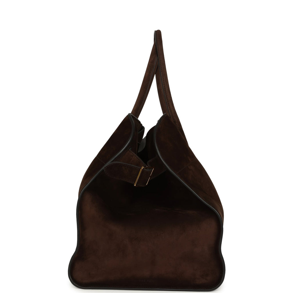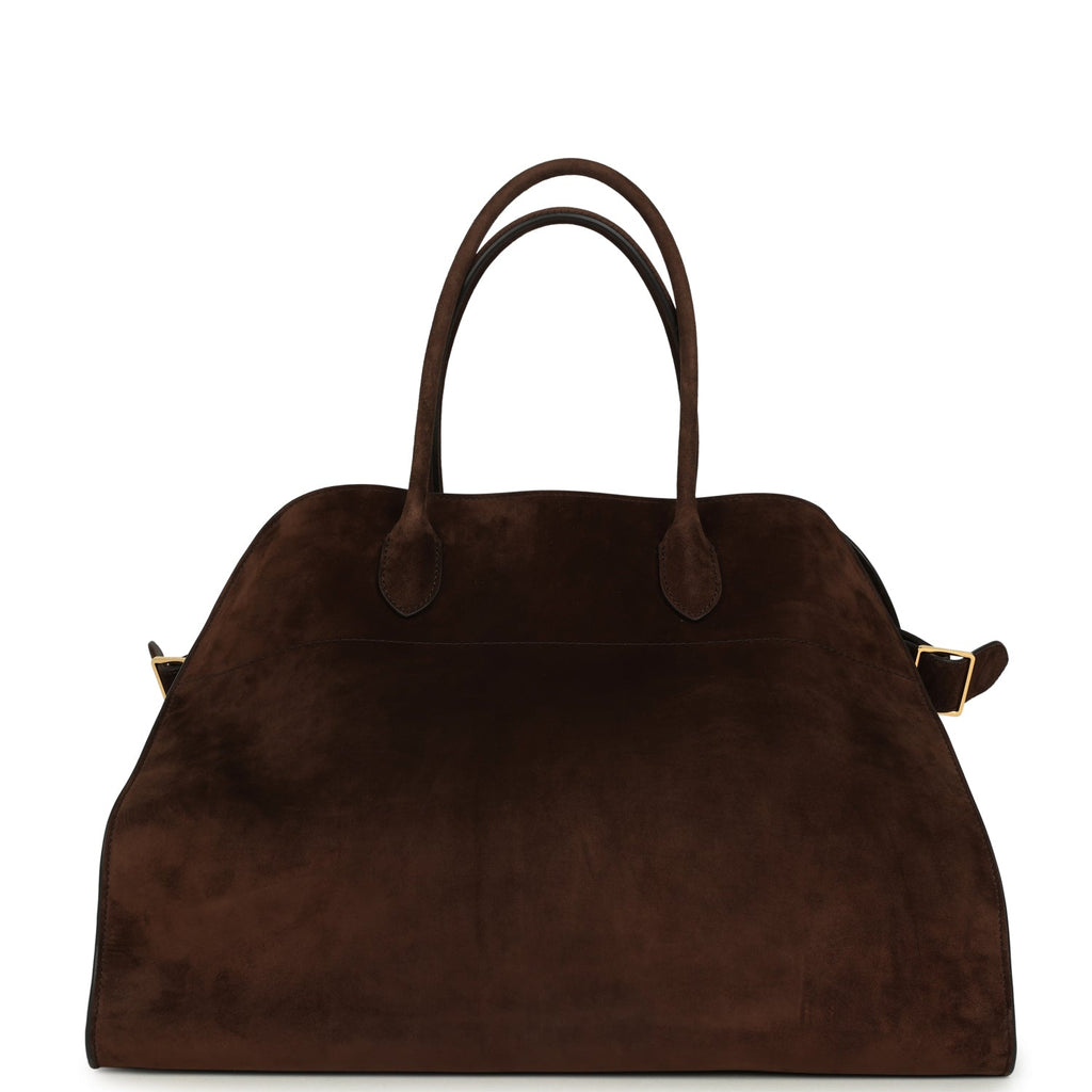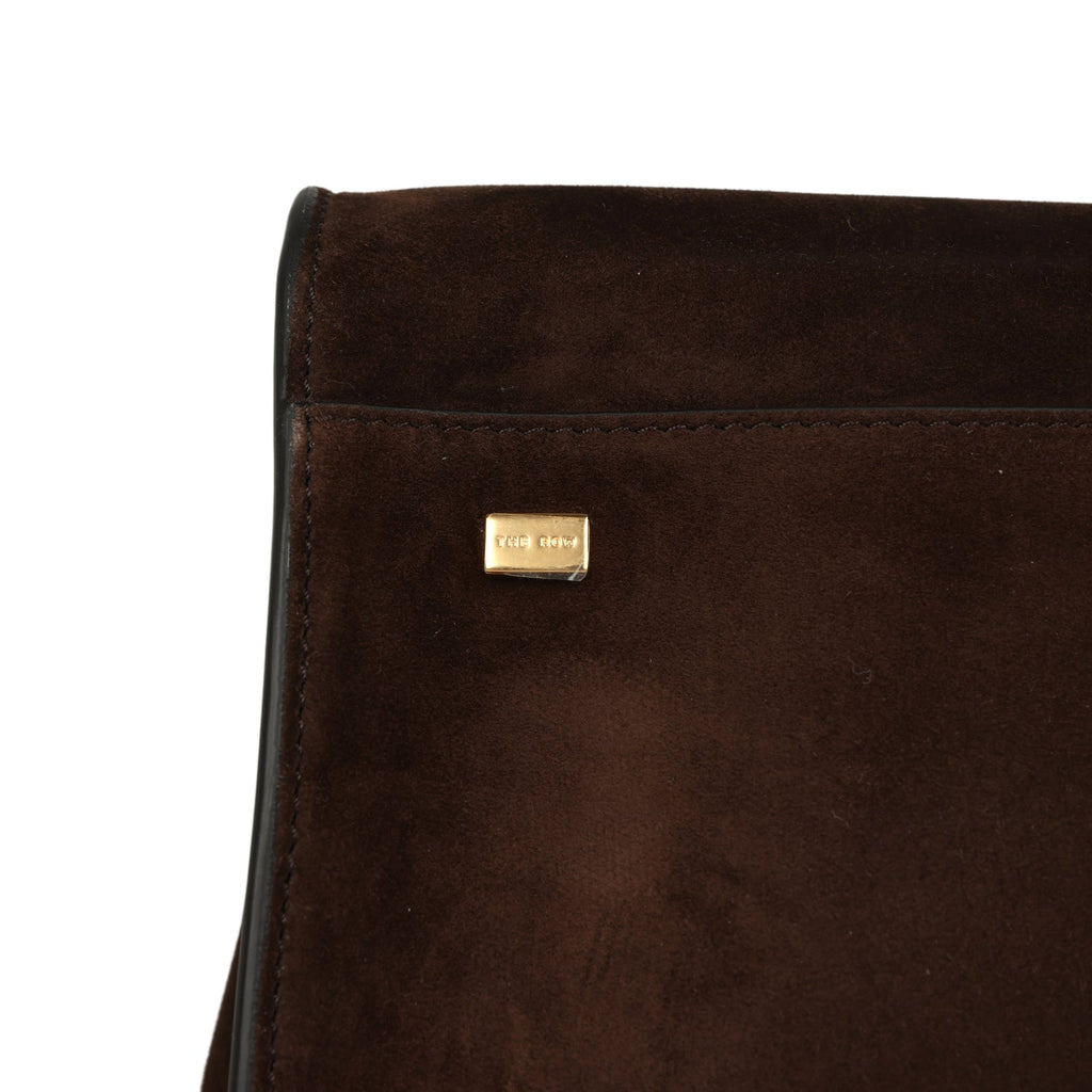 The Row Soft Margaux 17 Bag Mocha Suede Gold Hardware