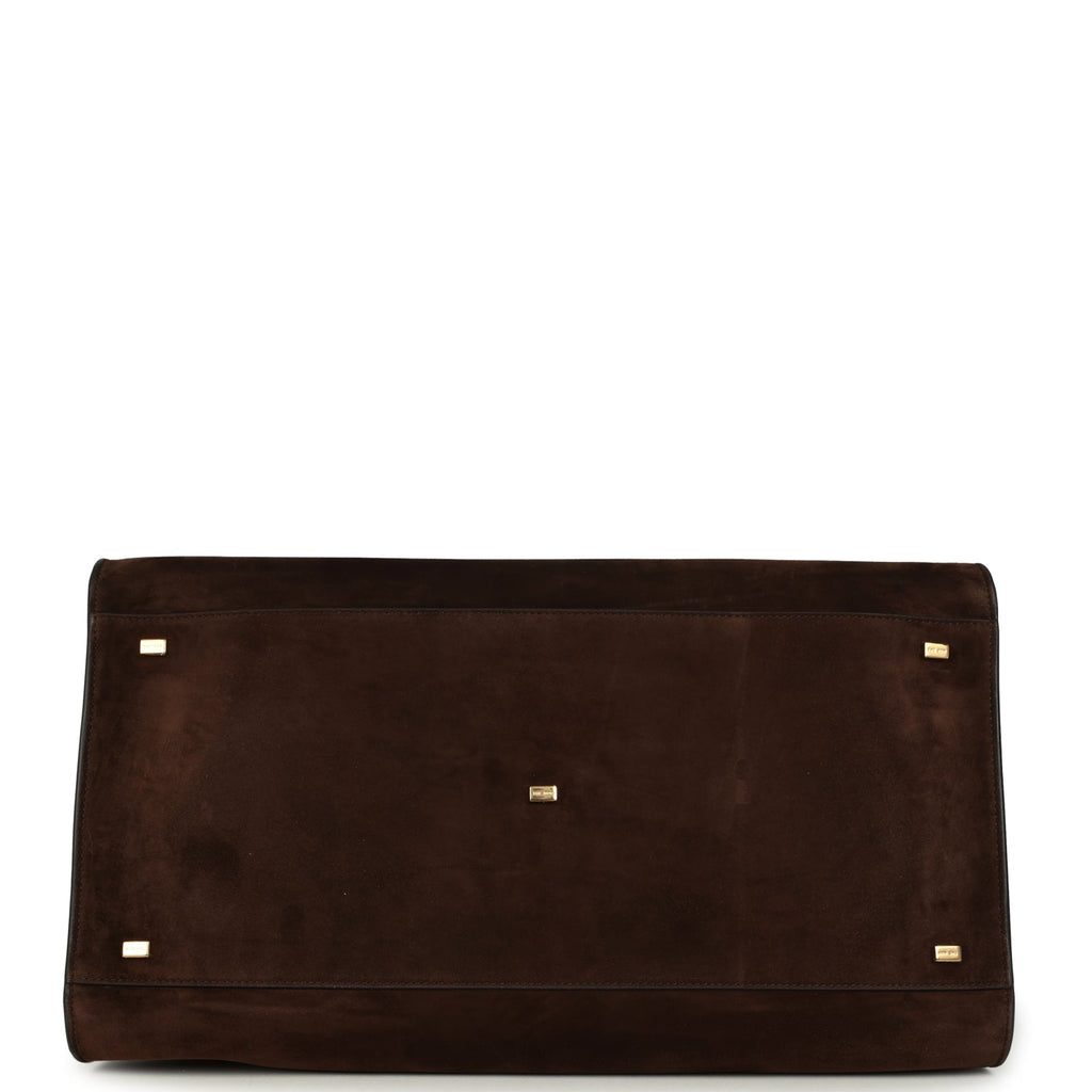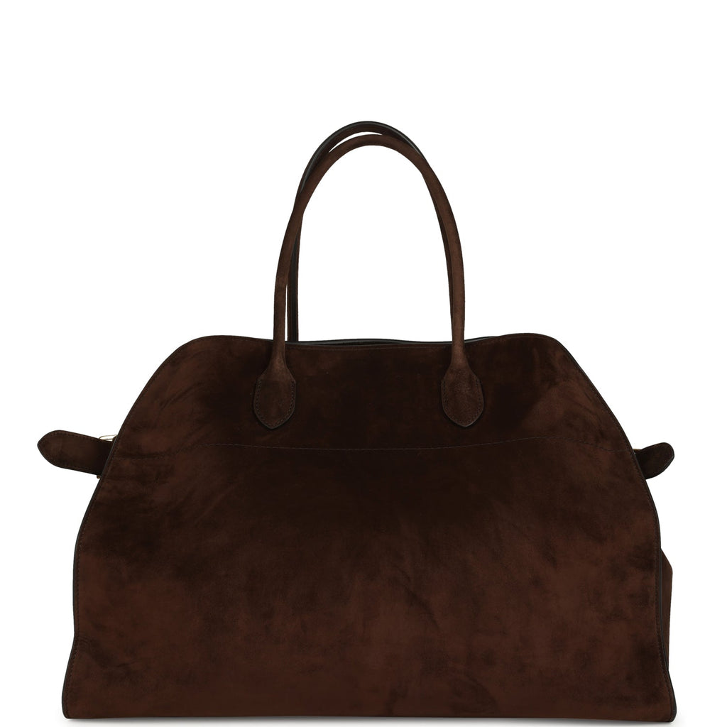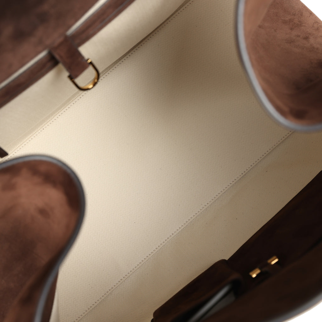 The Row Soft Margaux 17 Bag Mocha Suede Gold Hardware