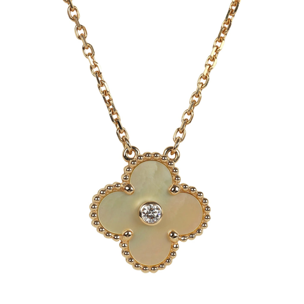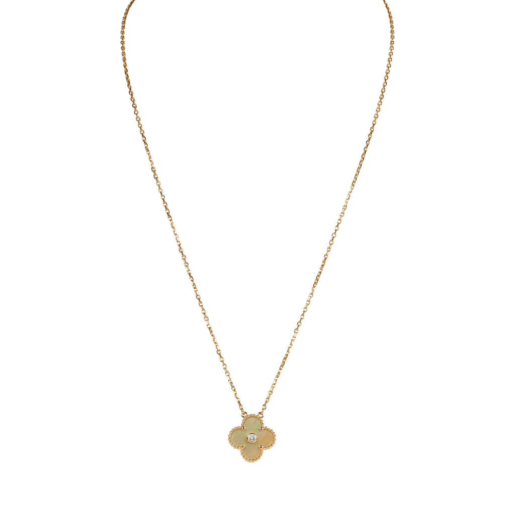 Van Cleef & Arpels 2018 Holiday Vintage Alhambra Pendant Necklace Yellow Mother Of Pearl 18K Yellow Gold Hardware & Diamonds