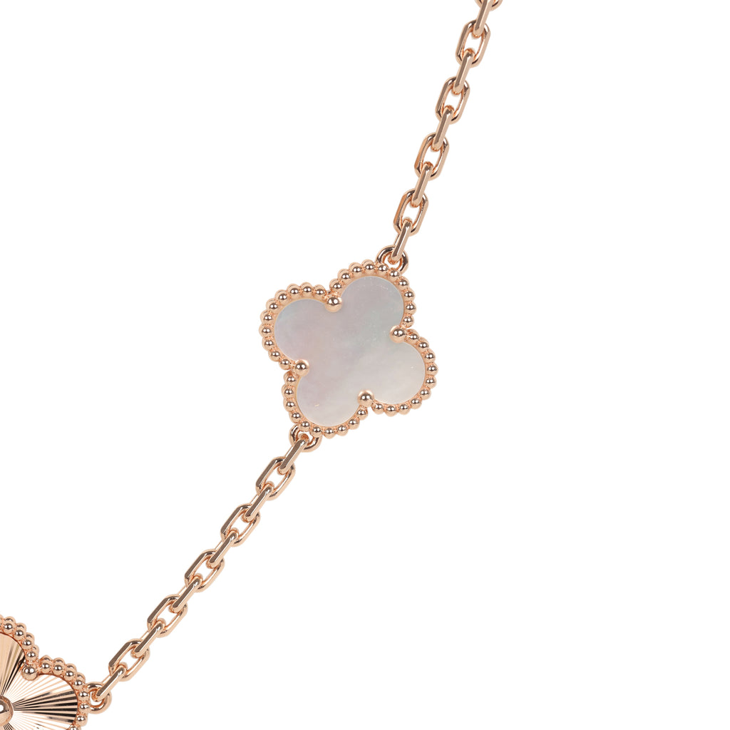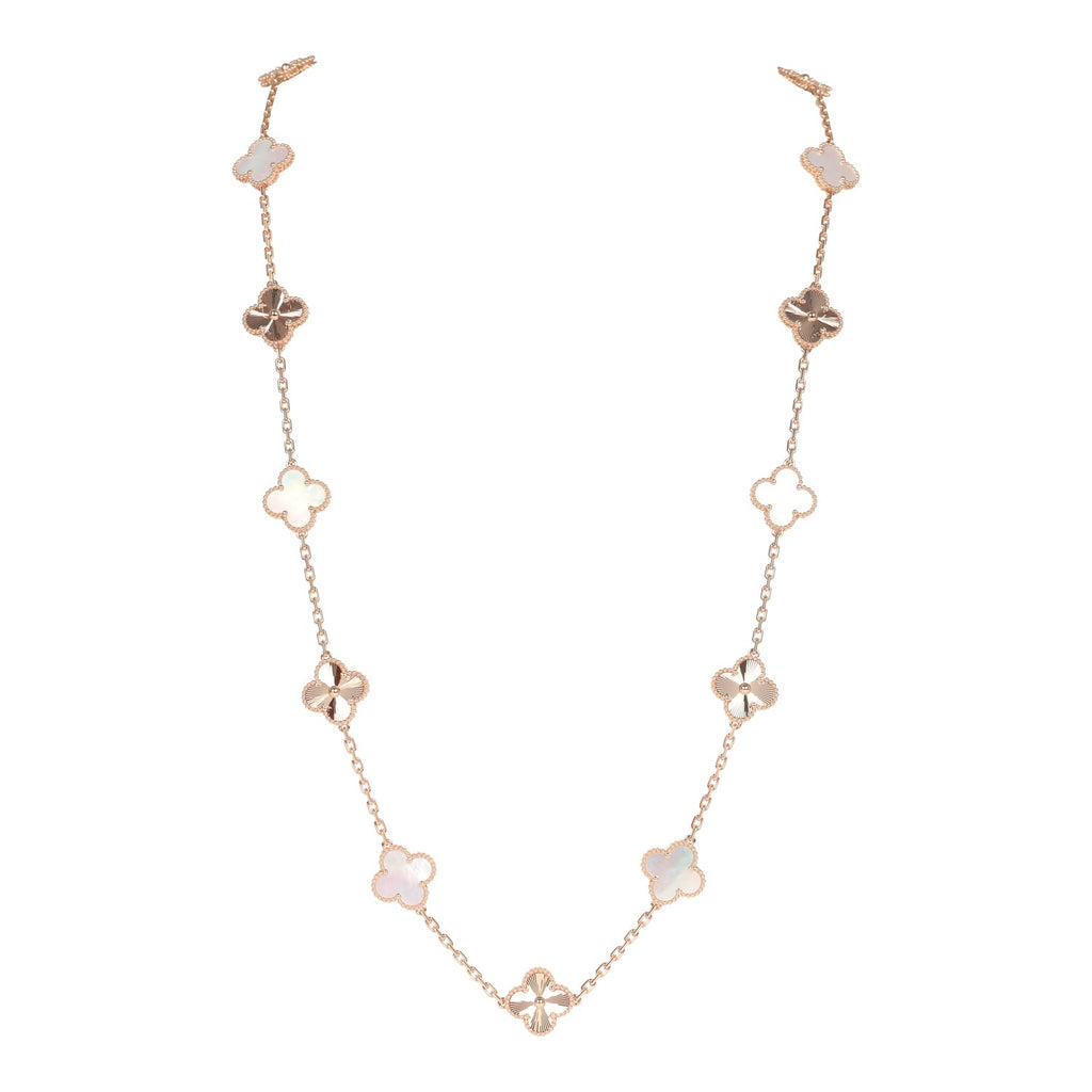 Van Cleef & Arpels Limited Edition Seoul Maison Vintage Alhambra 20 Motif Long Necklace White Mother of Pearl & 18K Rose Gold Hardware