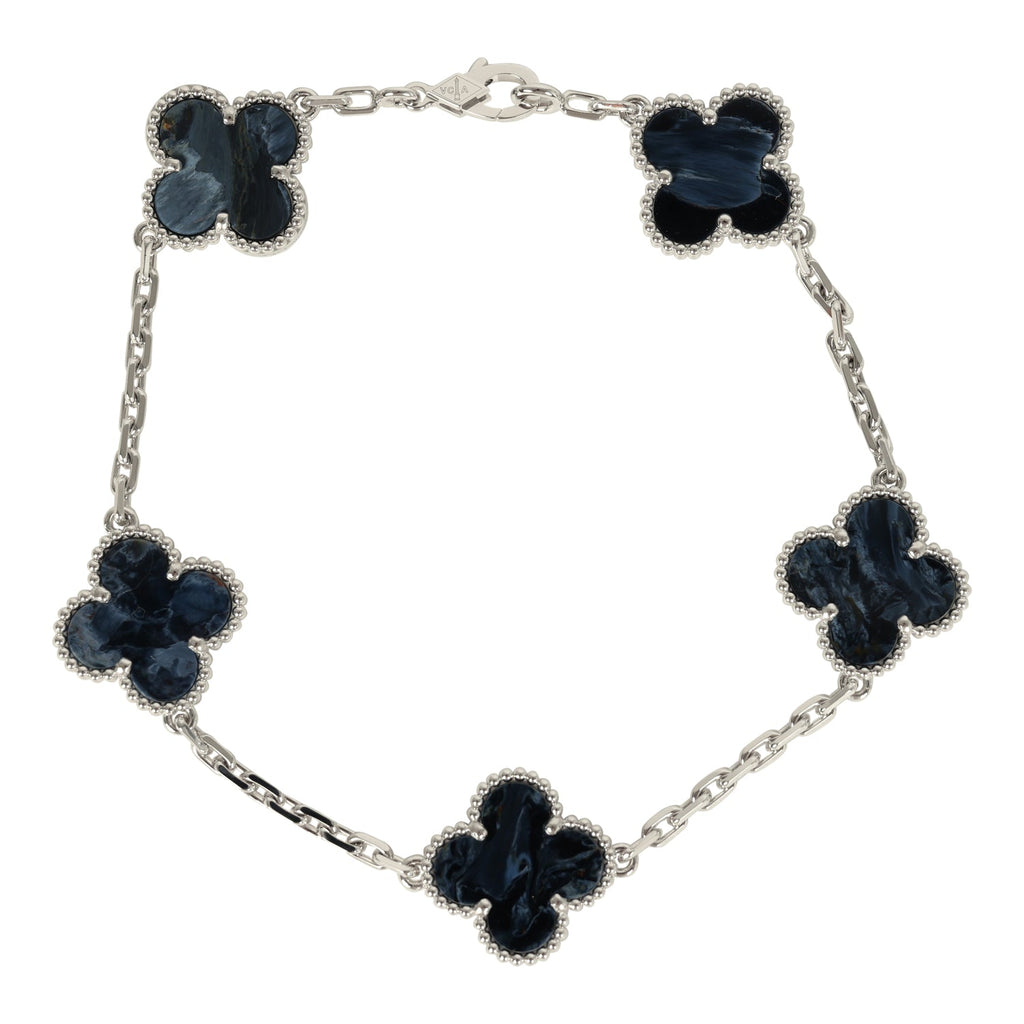 Van Cleef & Arpels Vintage Alhambra 5 Motif Bracelet Pietersite 18K White Gold