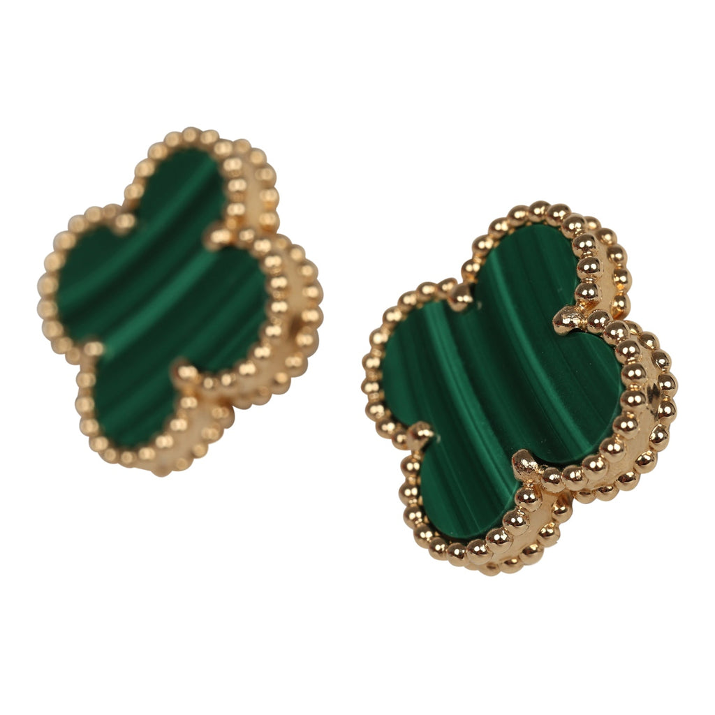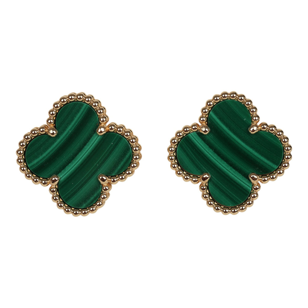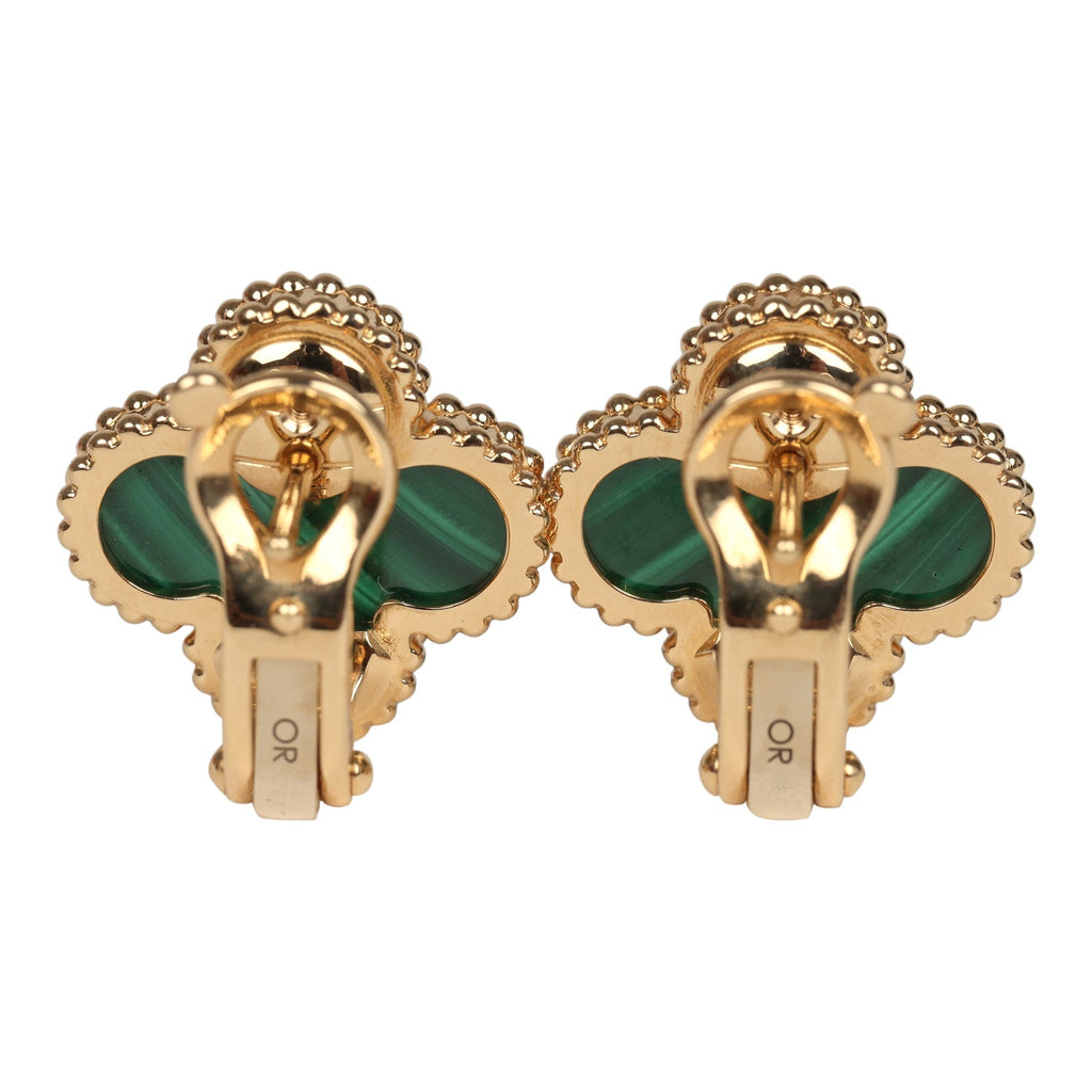 Van Cleef & Arpels Vintage Alhambra Motif Earrings Malachite 18K Yellow Gold