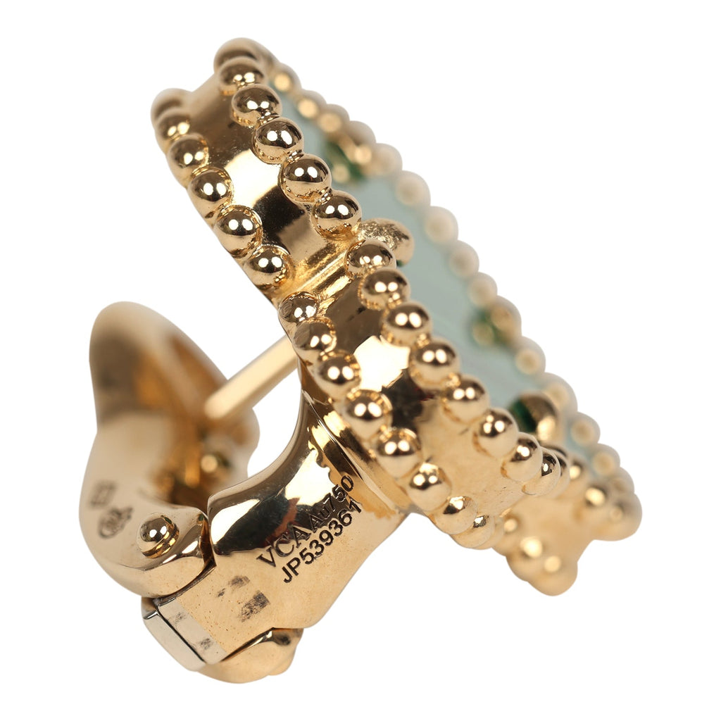 Van Cleef & Arpels Vintage Alhambra Motif Earrings Malachite 18K Yellow Gold
