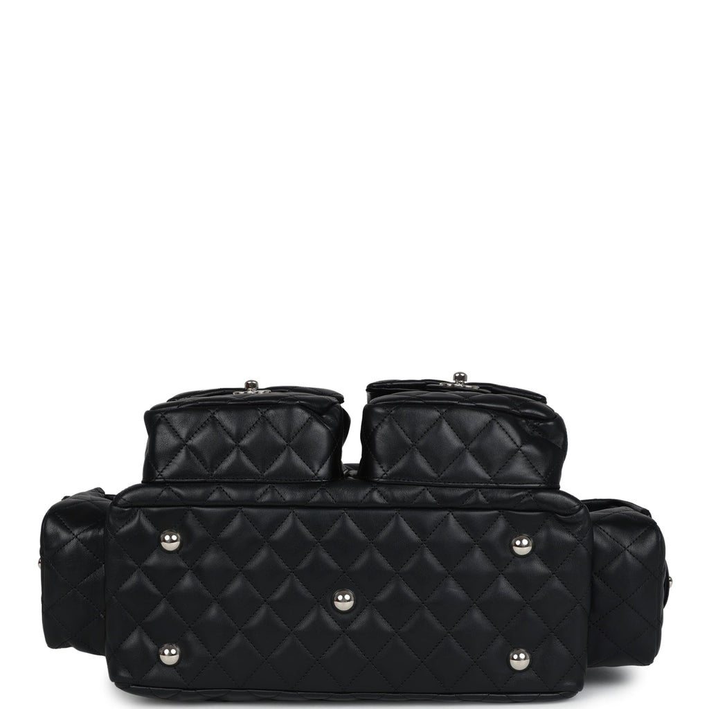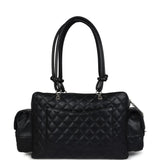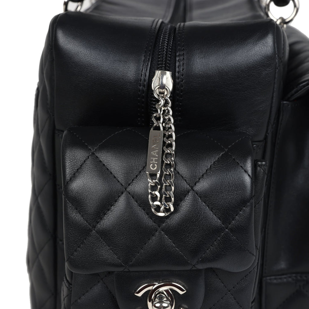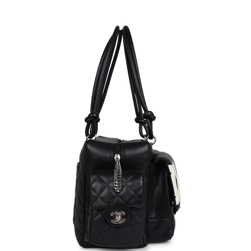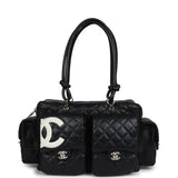 Vintage Chanel Large Cambon Ligne Reporter Bag Black and White Lambskin Silver Hardware