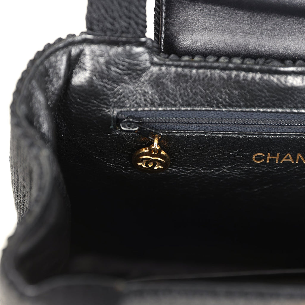 Vintage Chanel Large Kelly Rope Black Woven Gold Hardware