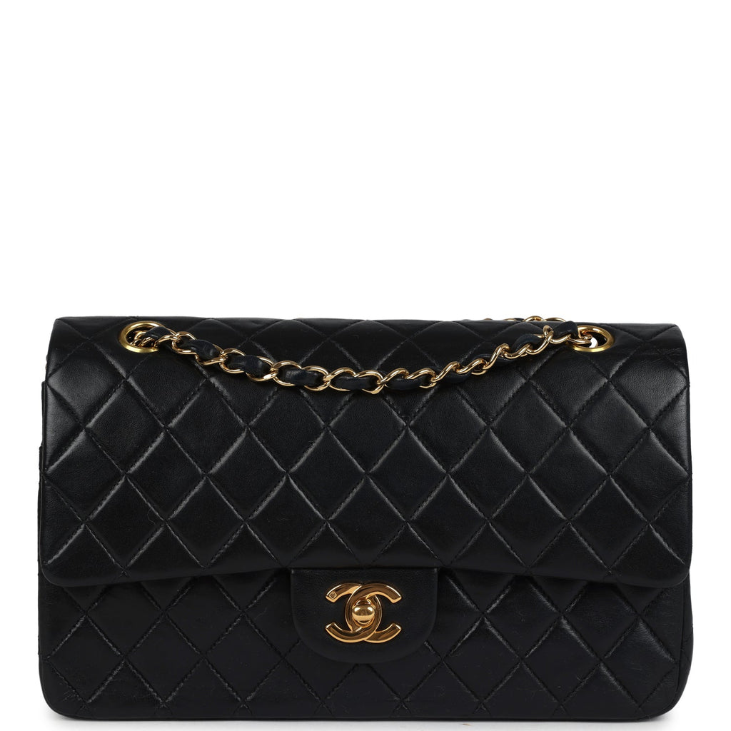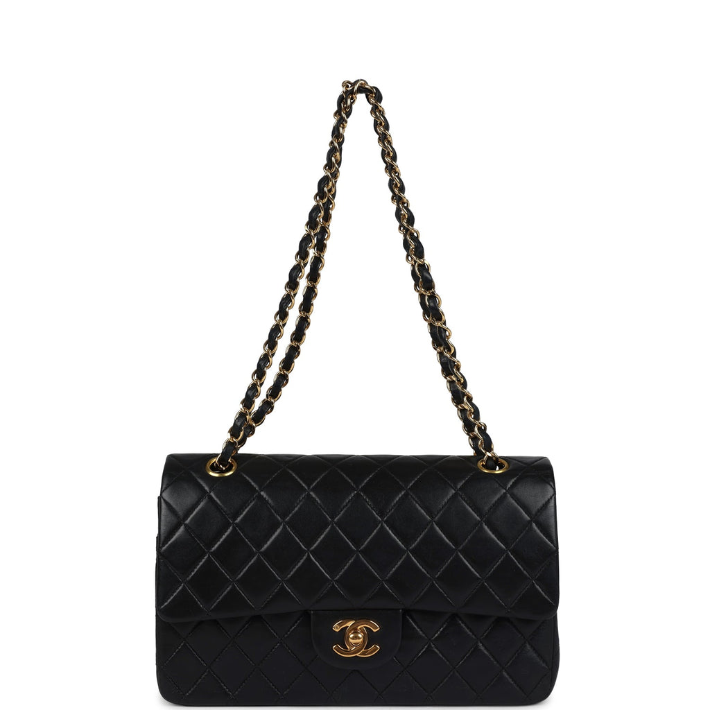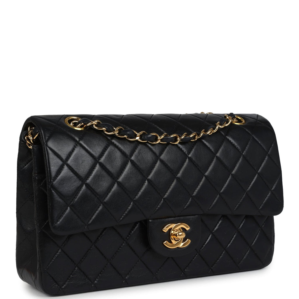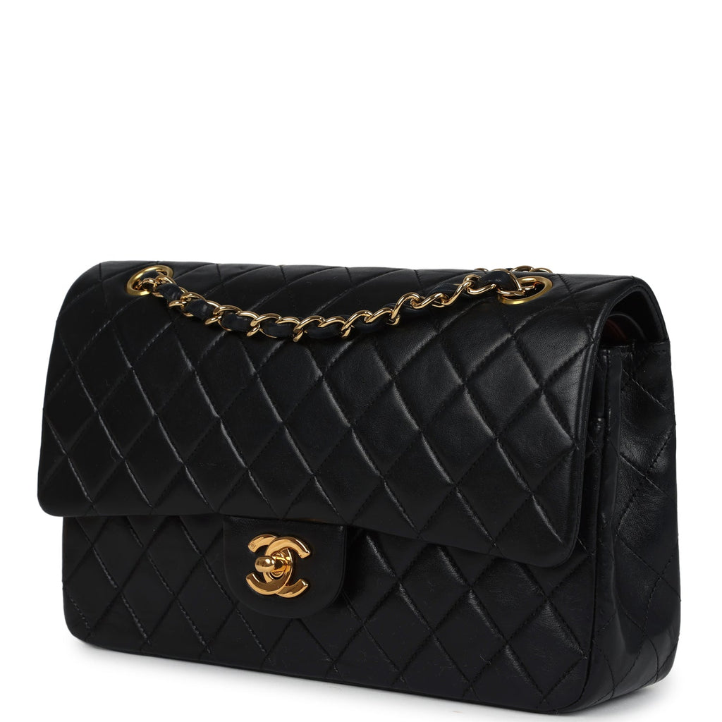 Vintage Chanel Medium Classic Double Flap Bag Black Lambskin Gold Hardware