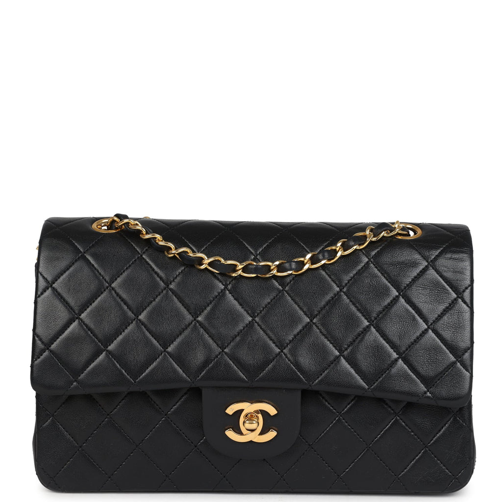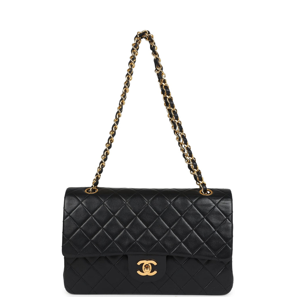 Vintage Chanel Medium Classic Double Flap Bag Black Lambskin Gold Hardware
