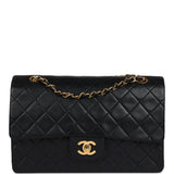 Vintage Chanel Medium Classic Double Flap Bag Black Lambskin Gold Hardware