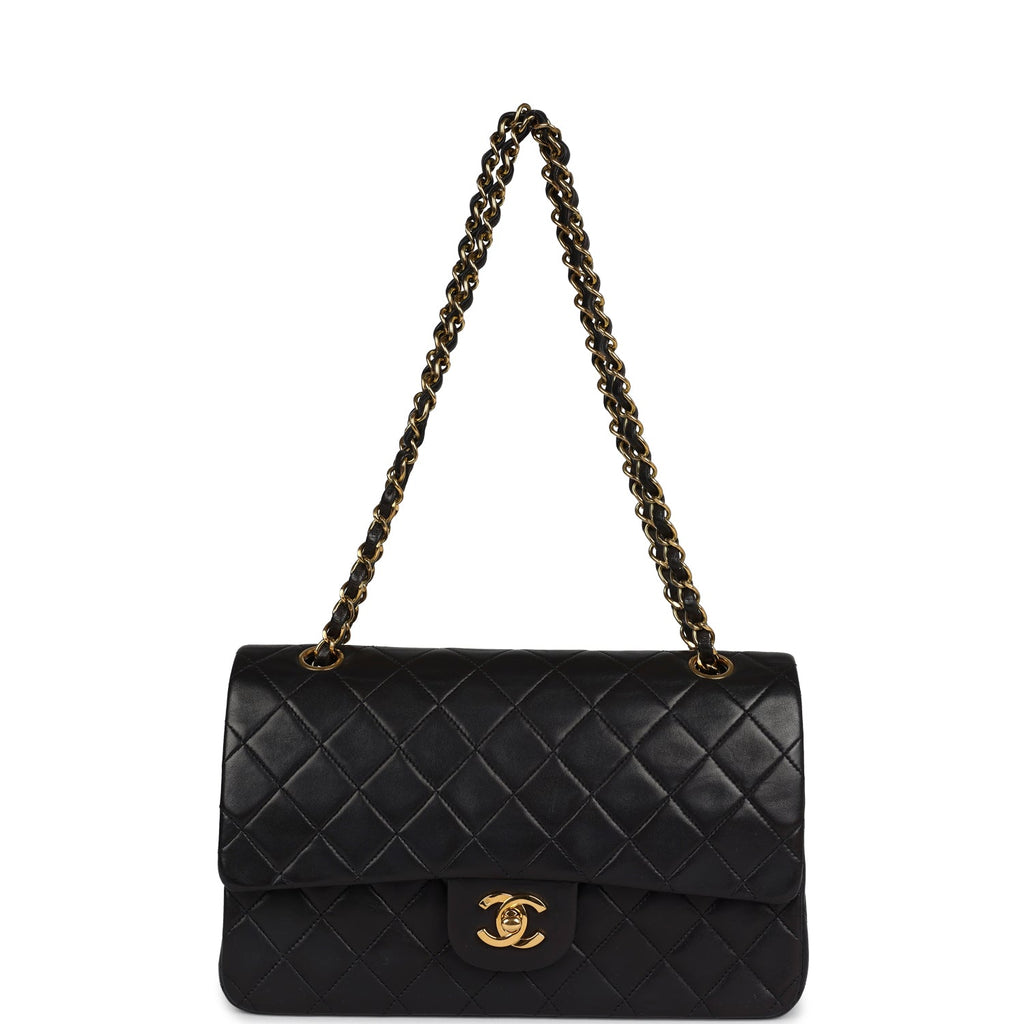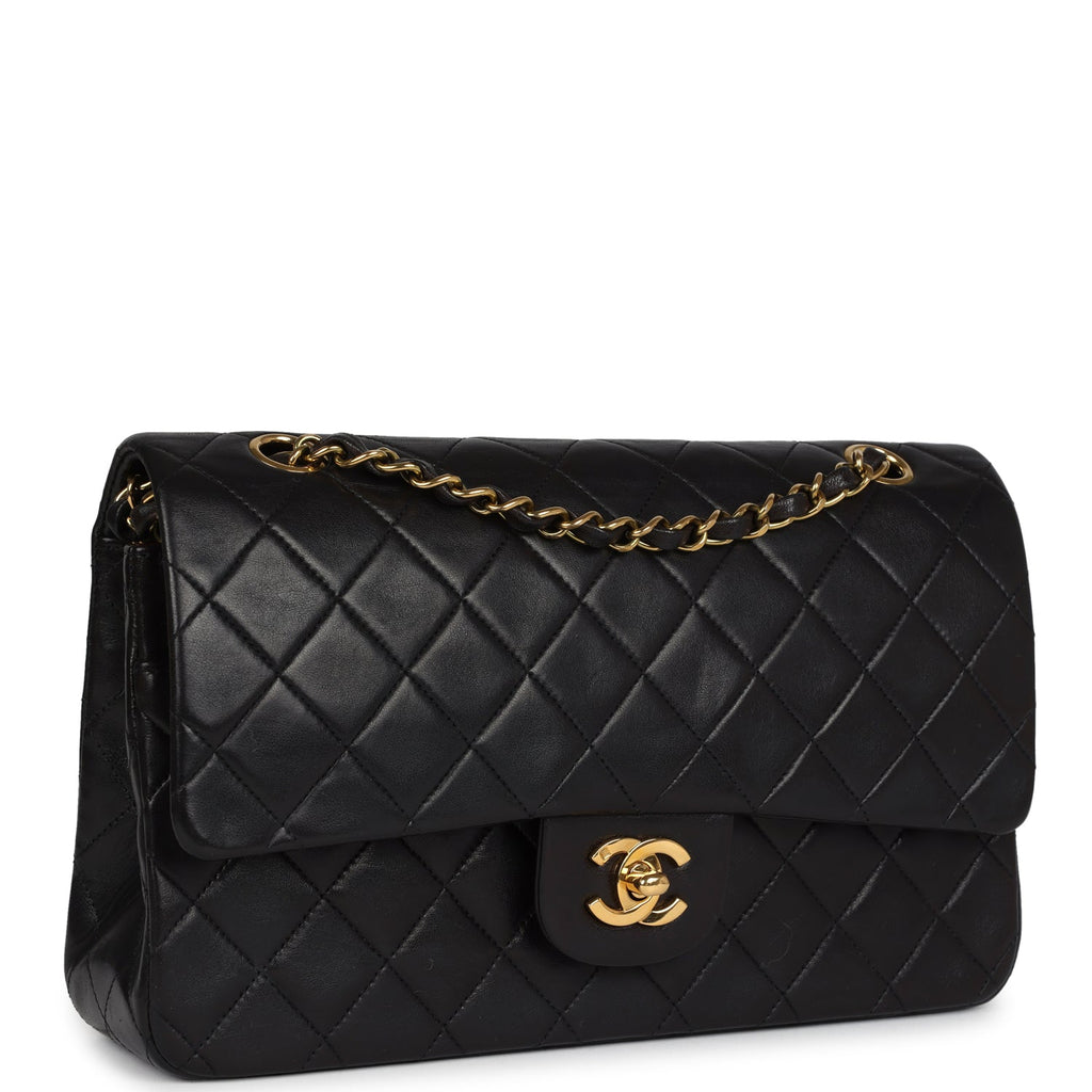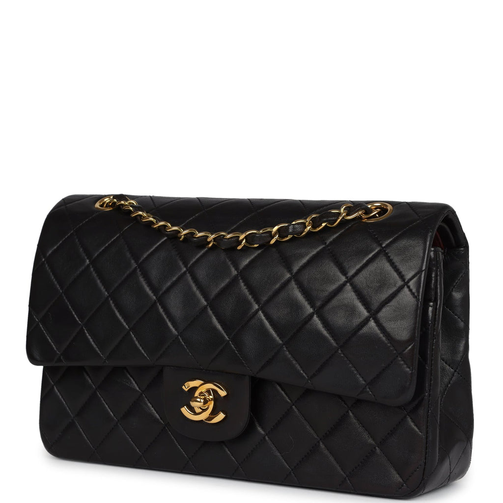 Vintage Chanel Medium Classic Double Flap Bag Black Lambskin Gold Hardware