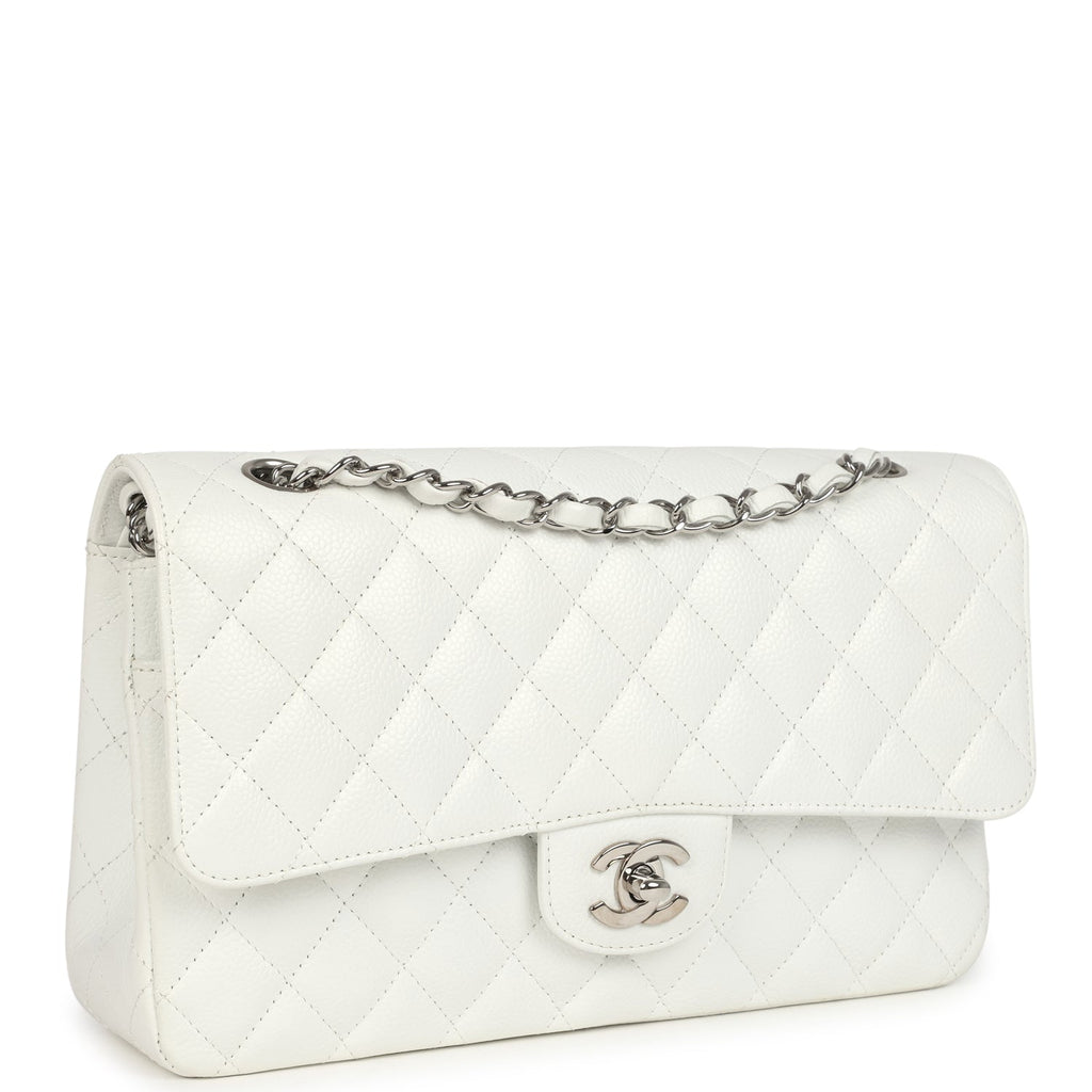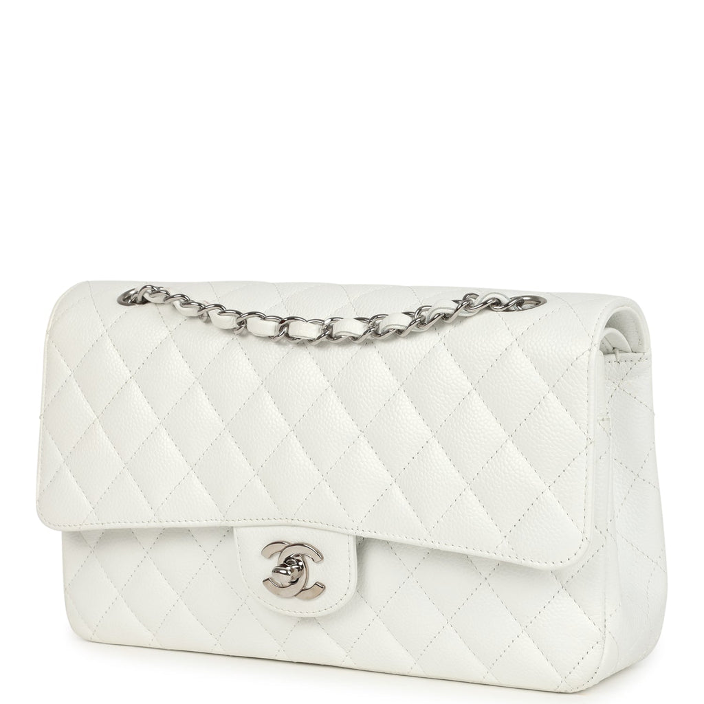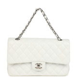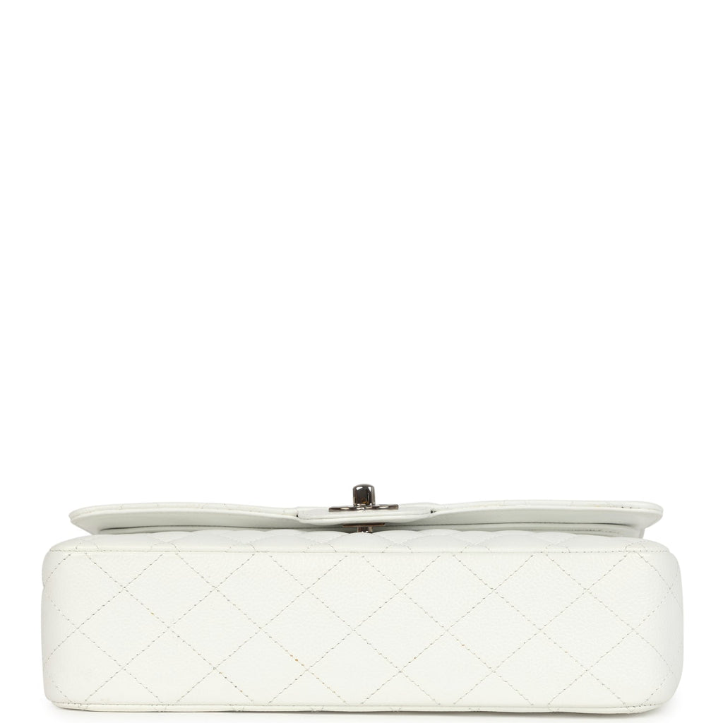 Vintage Chanel Medium Classic Double Flap White Caviar Silver Hardware