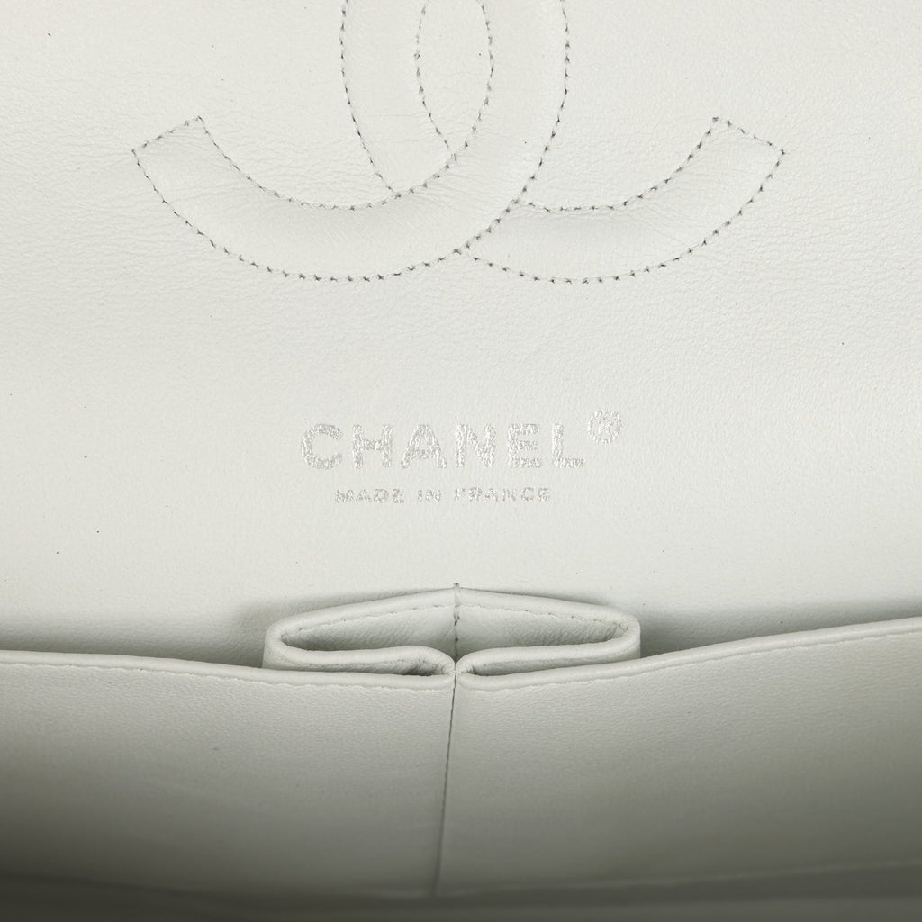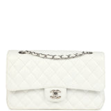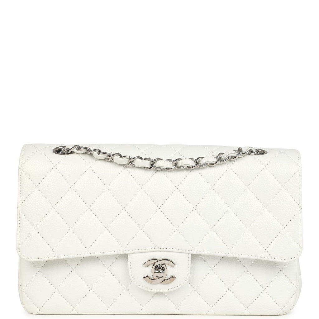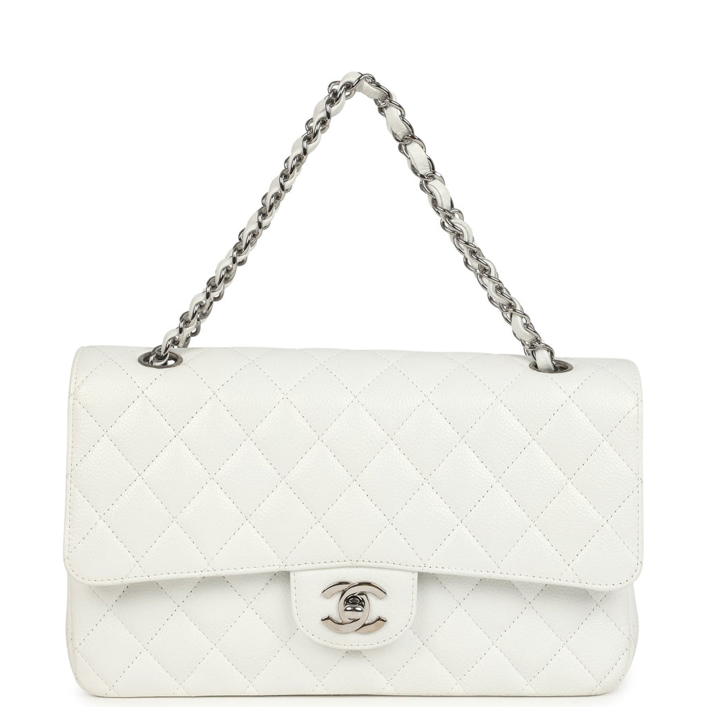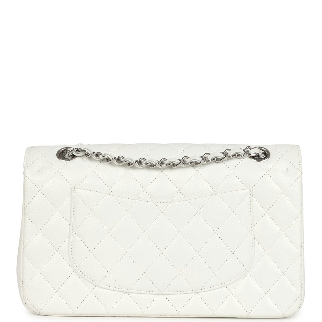 Vintage Chanel Medium Classic Double Flap White Caviar Silver Hardware
