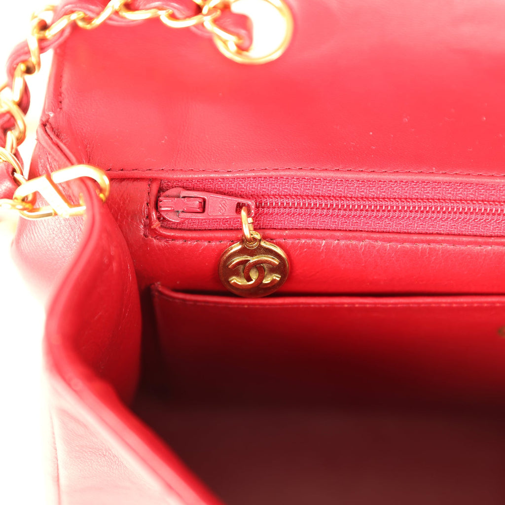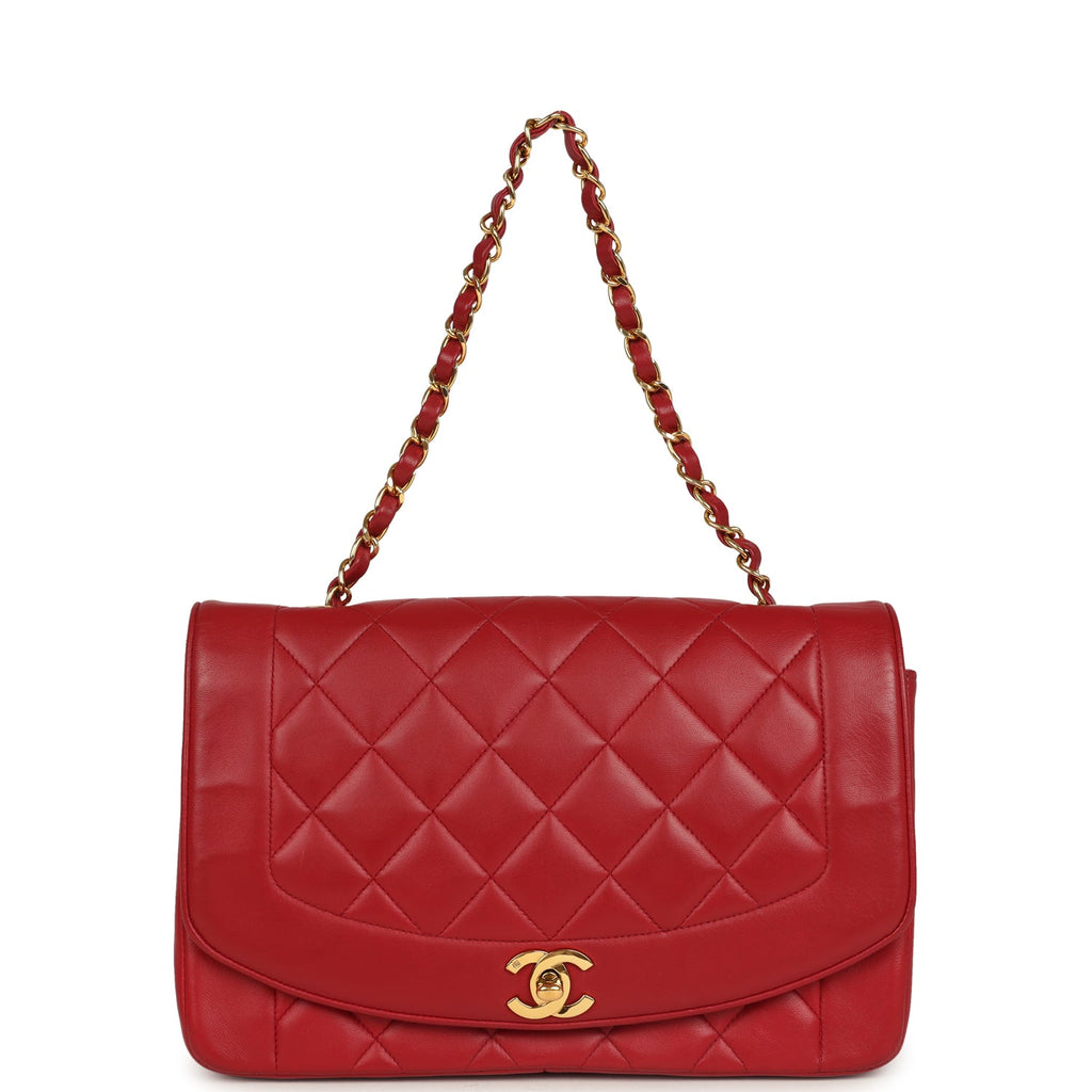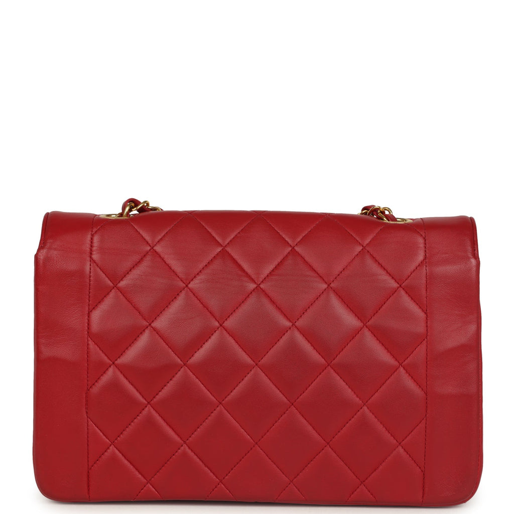 Vintage Chanel Medium Diana Flap Bag Red Lambskin Gold Hardware