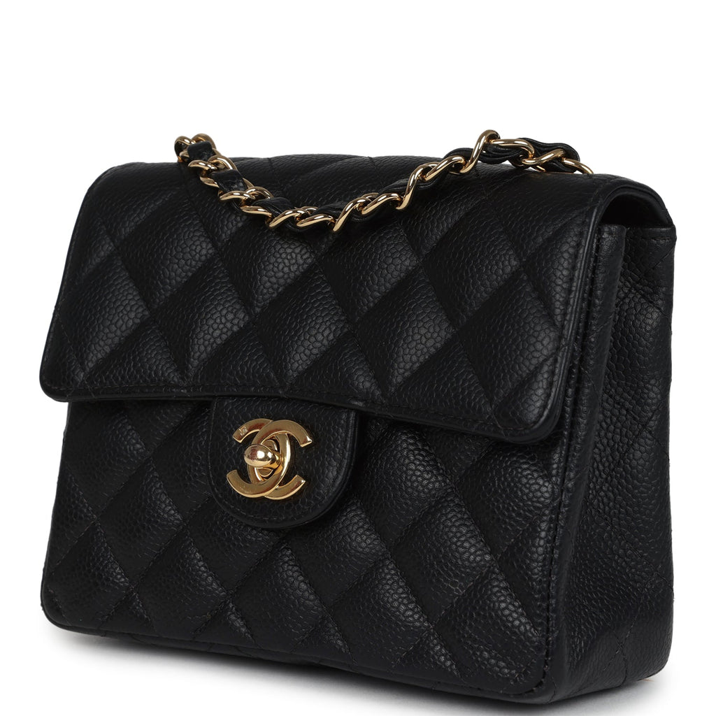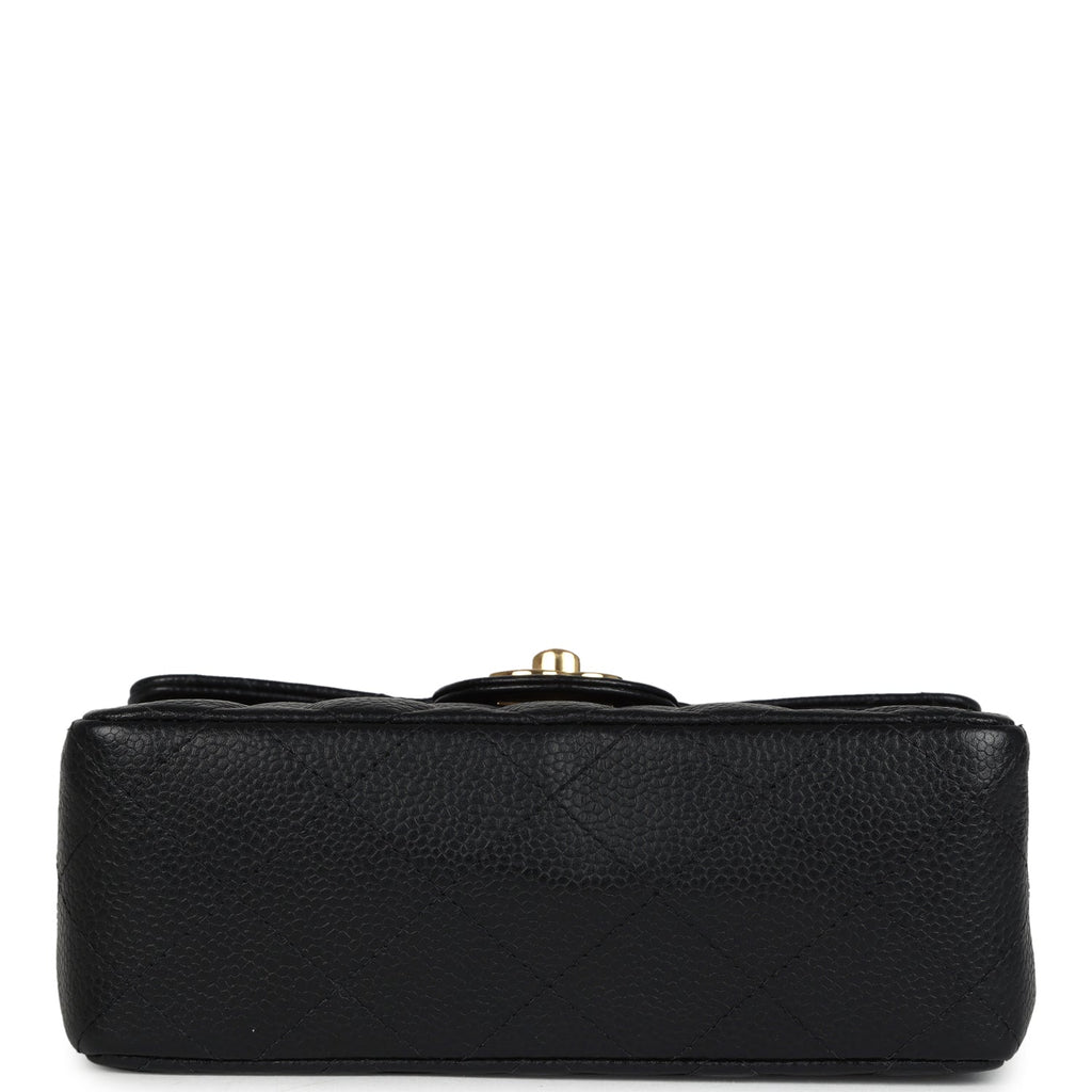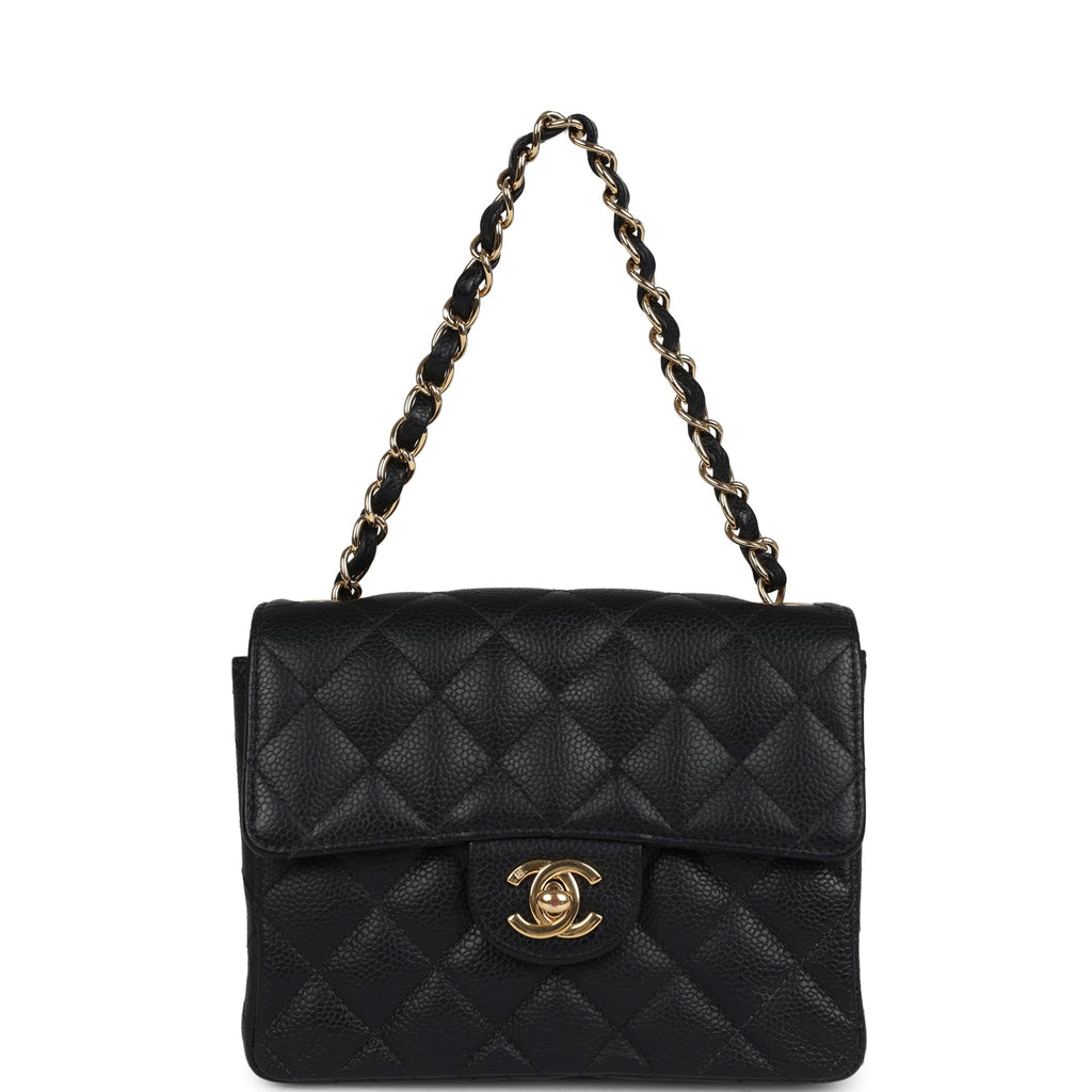 Vintage Chanel Mini Square Half Flap Bag Black Caviar Gold Hardware