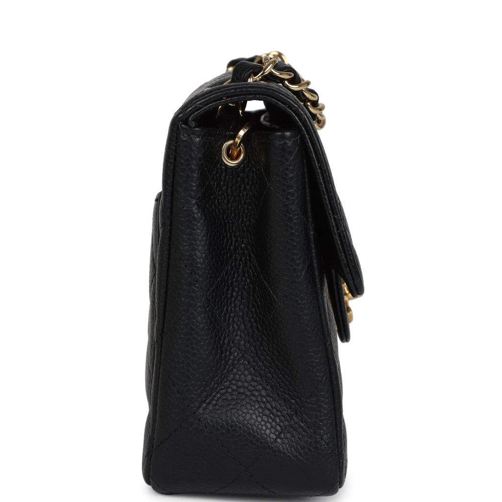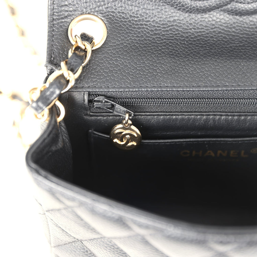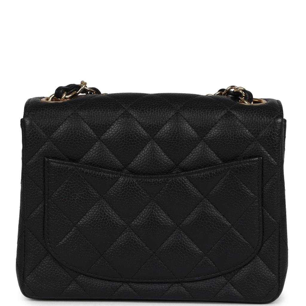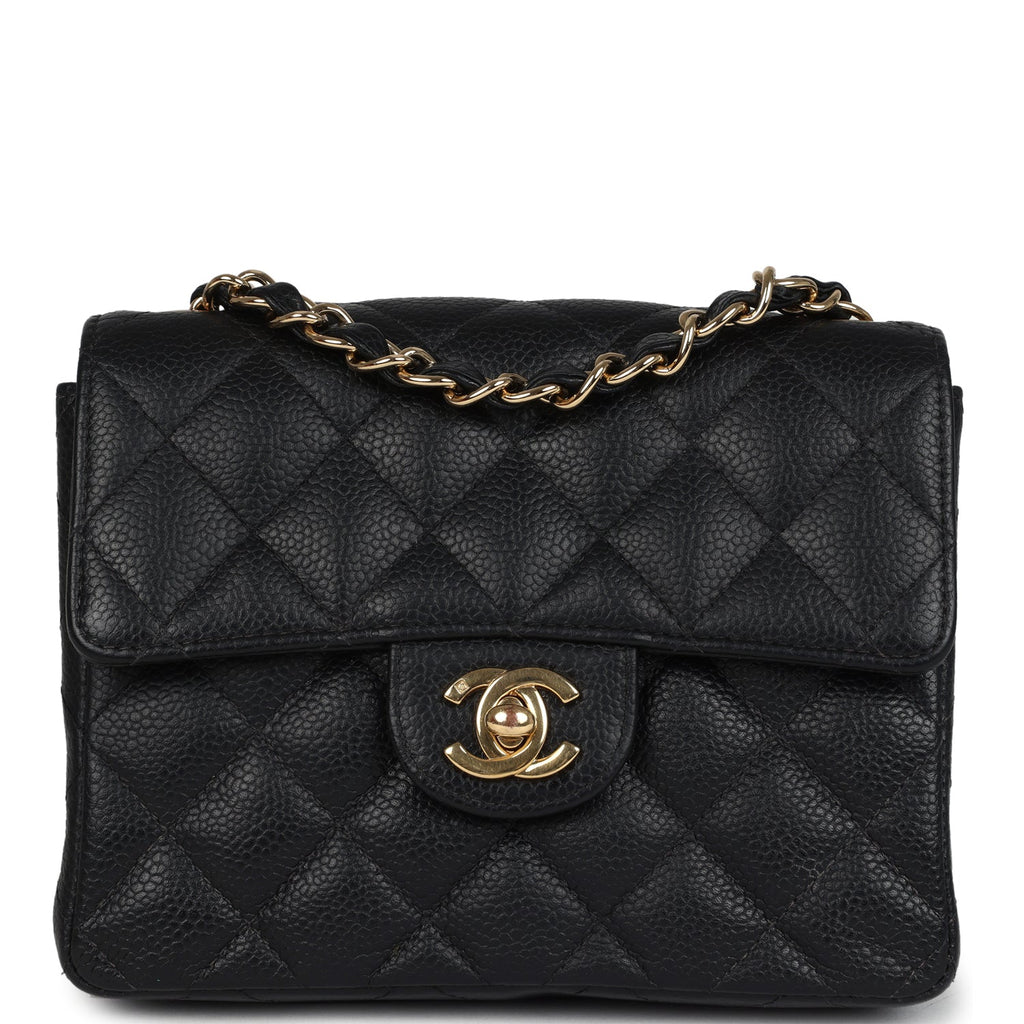 Vintage Chanel Mini Square Half Flap Bag Black Caviar Gold Hardware