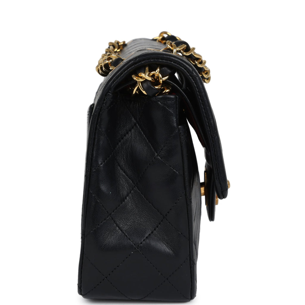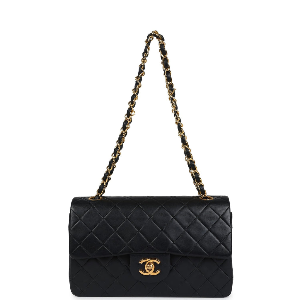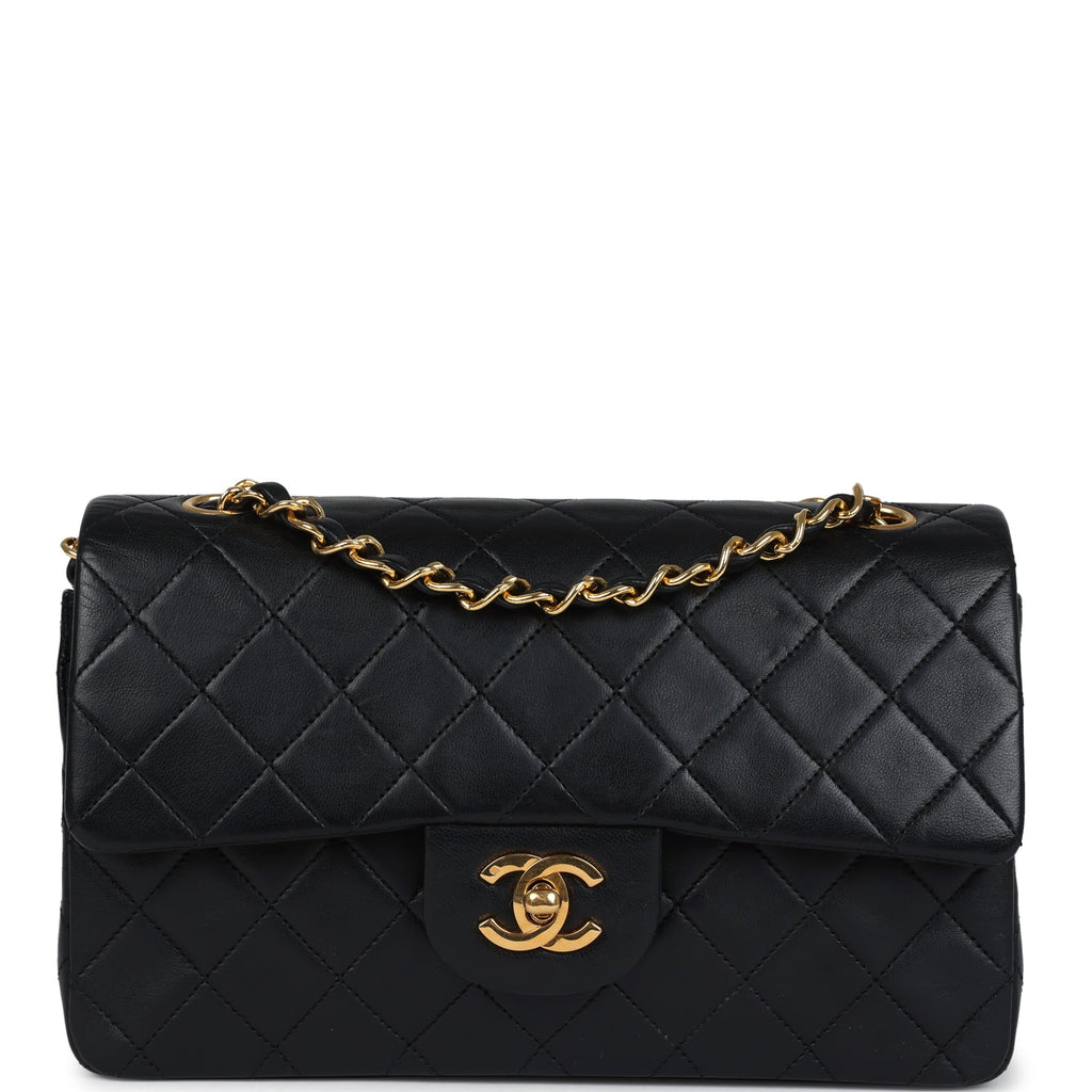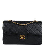 Vintage Chanel Small Classic Double Flap Black Lambskin Gold Hardware