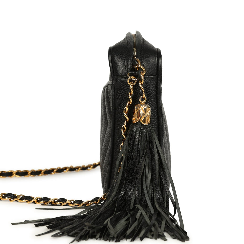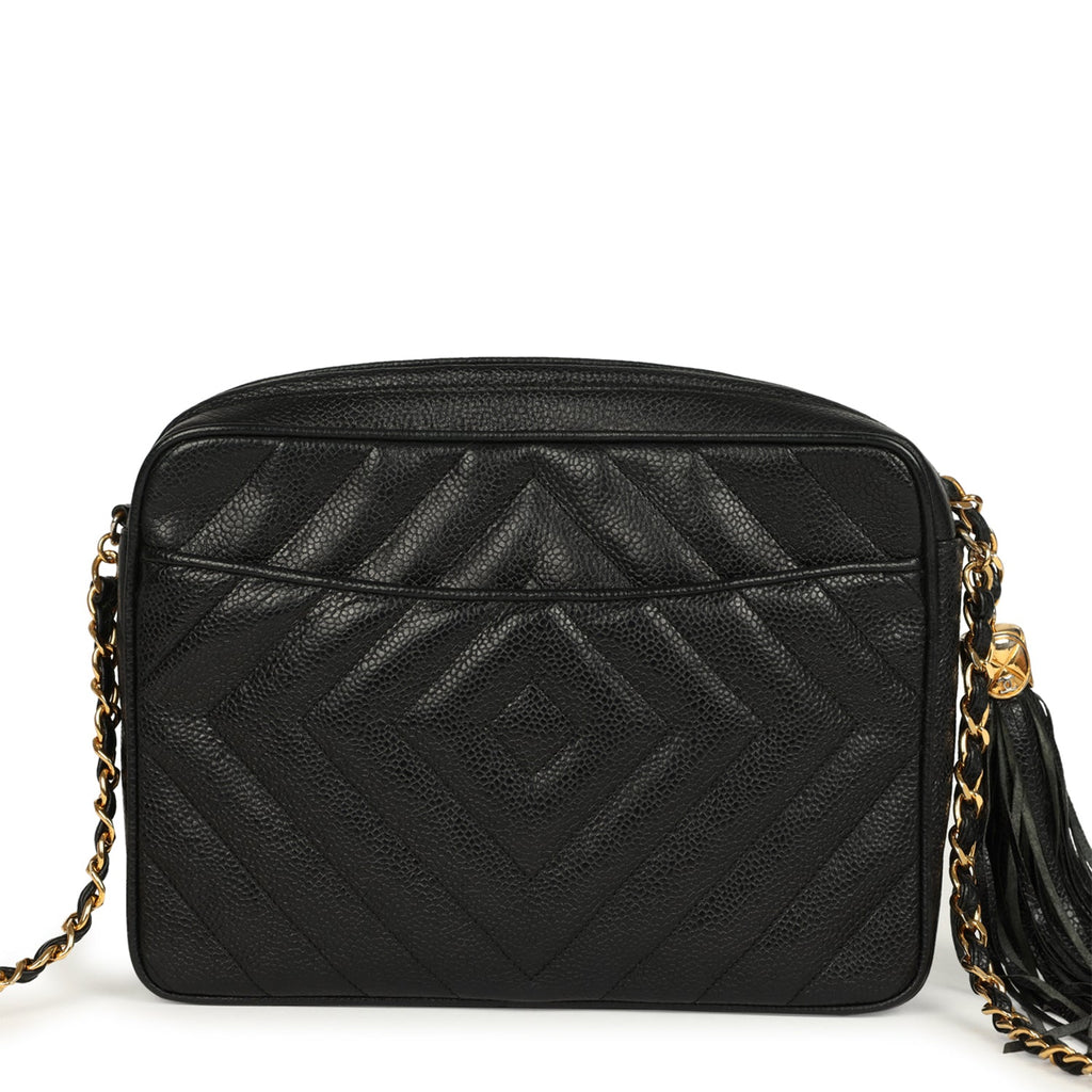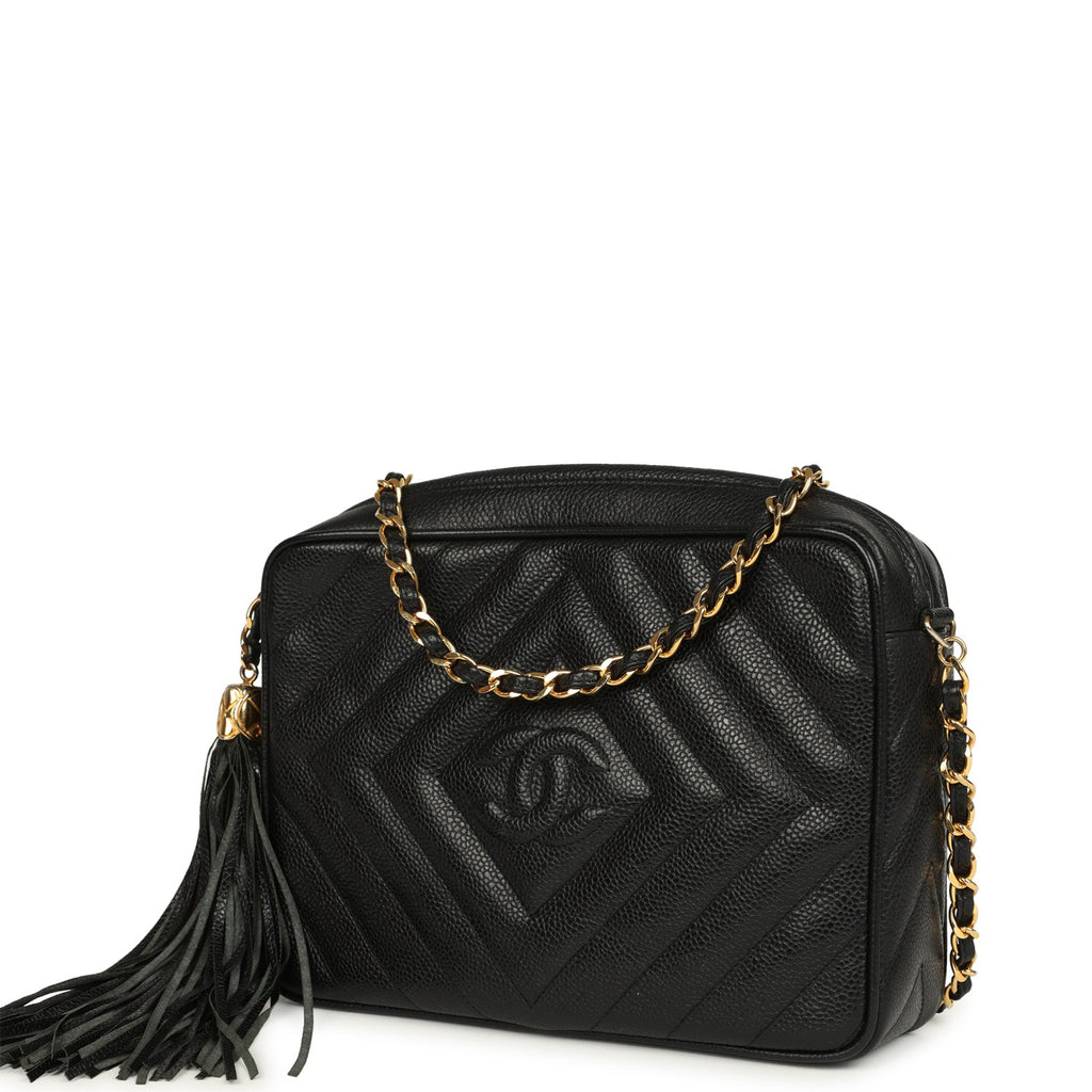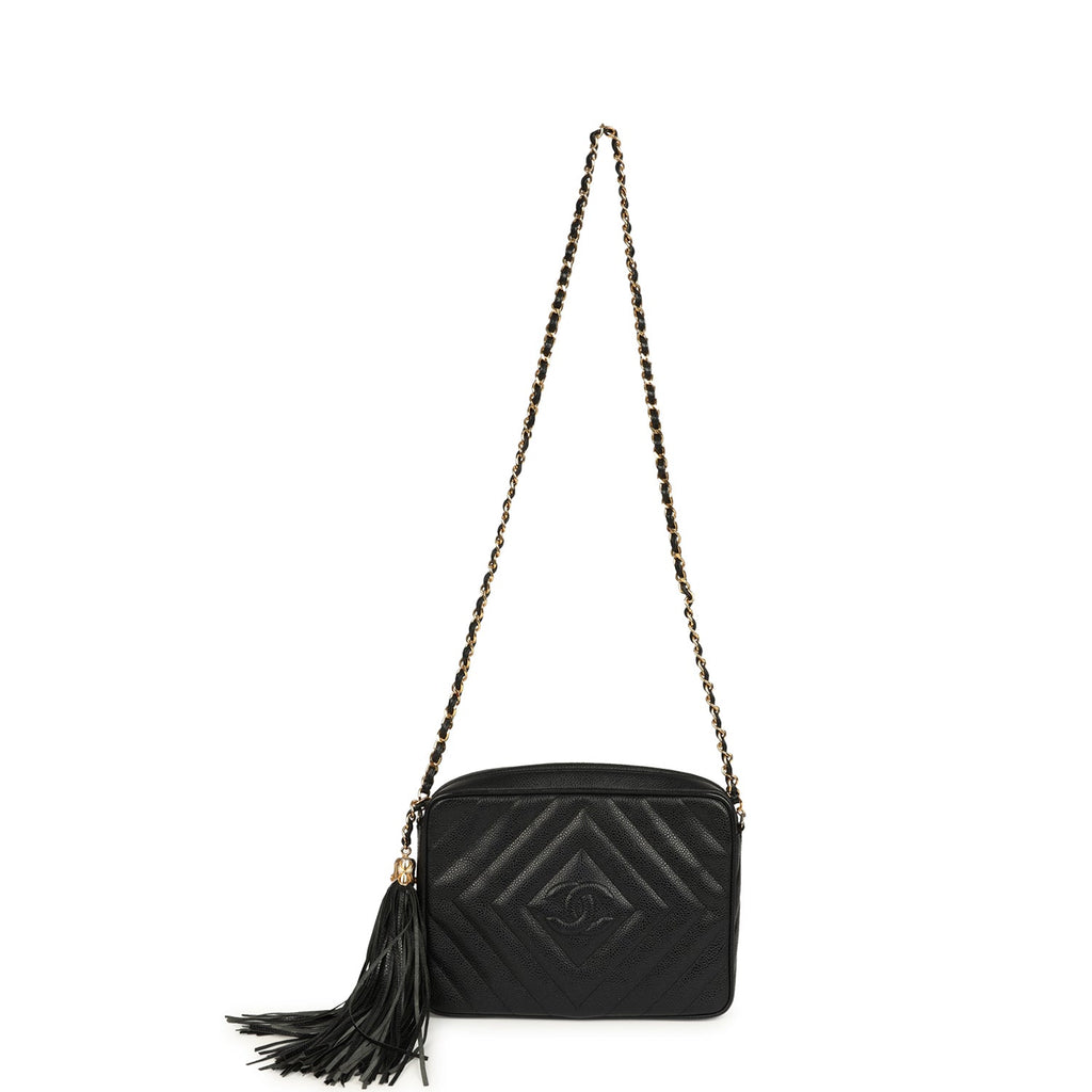 Vintage Chanel Small Diamond Quilted Camera Bag Black Caviar Gold Hardware