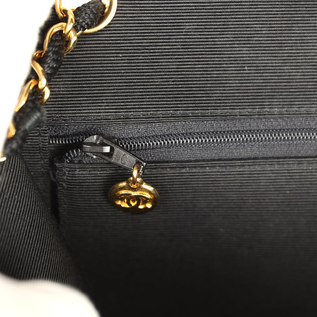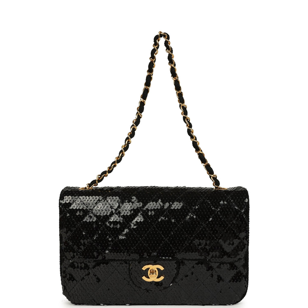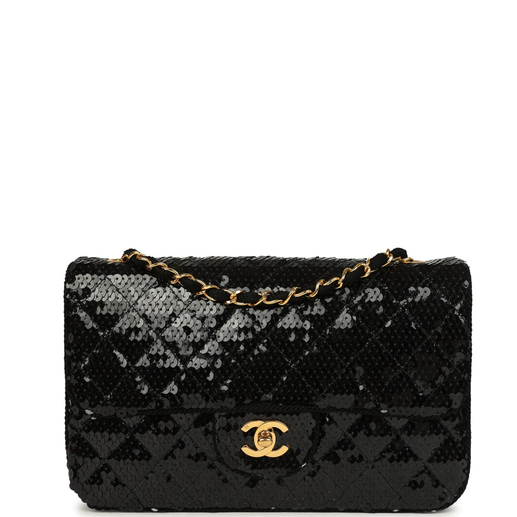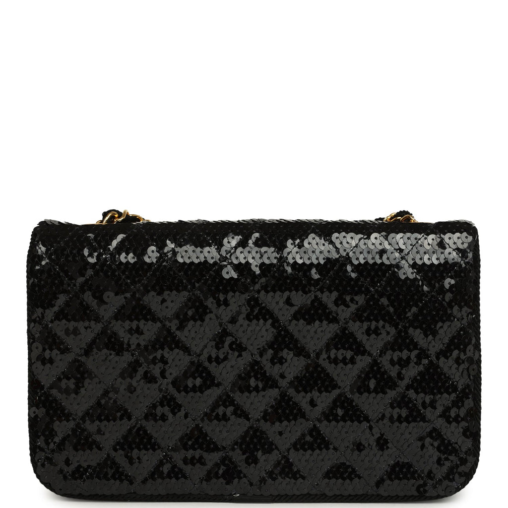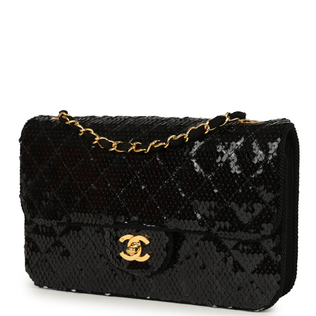 Vintage Chanel Small Flap Bag Black Sequin Gold Hardware