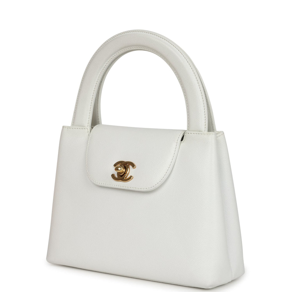 Vintage Chanel Small Kelly White Caviar Gold Hardware