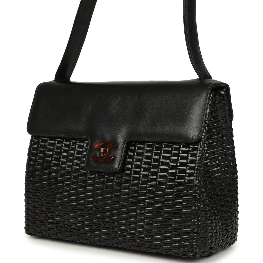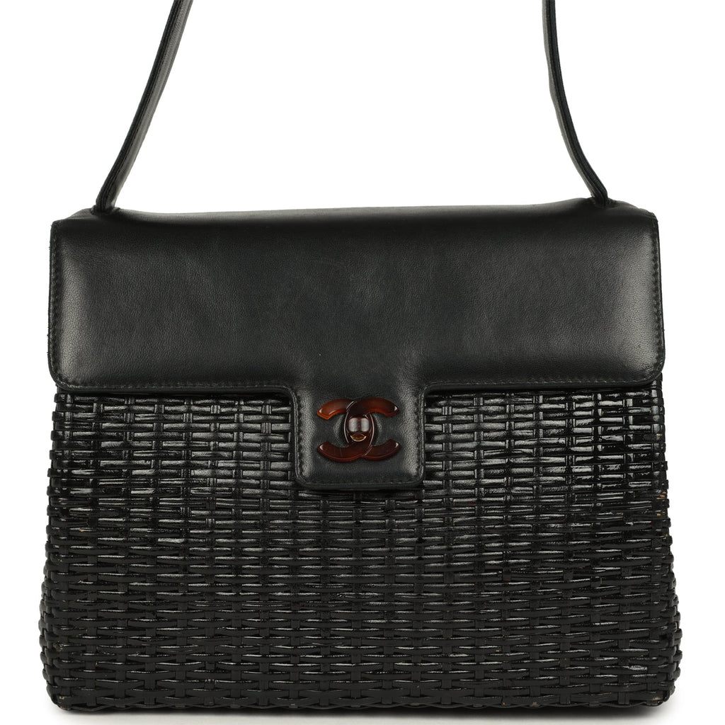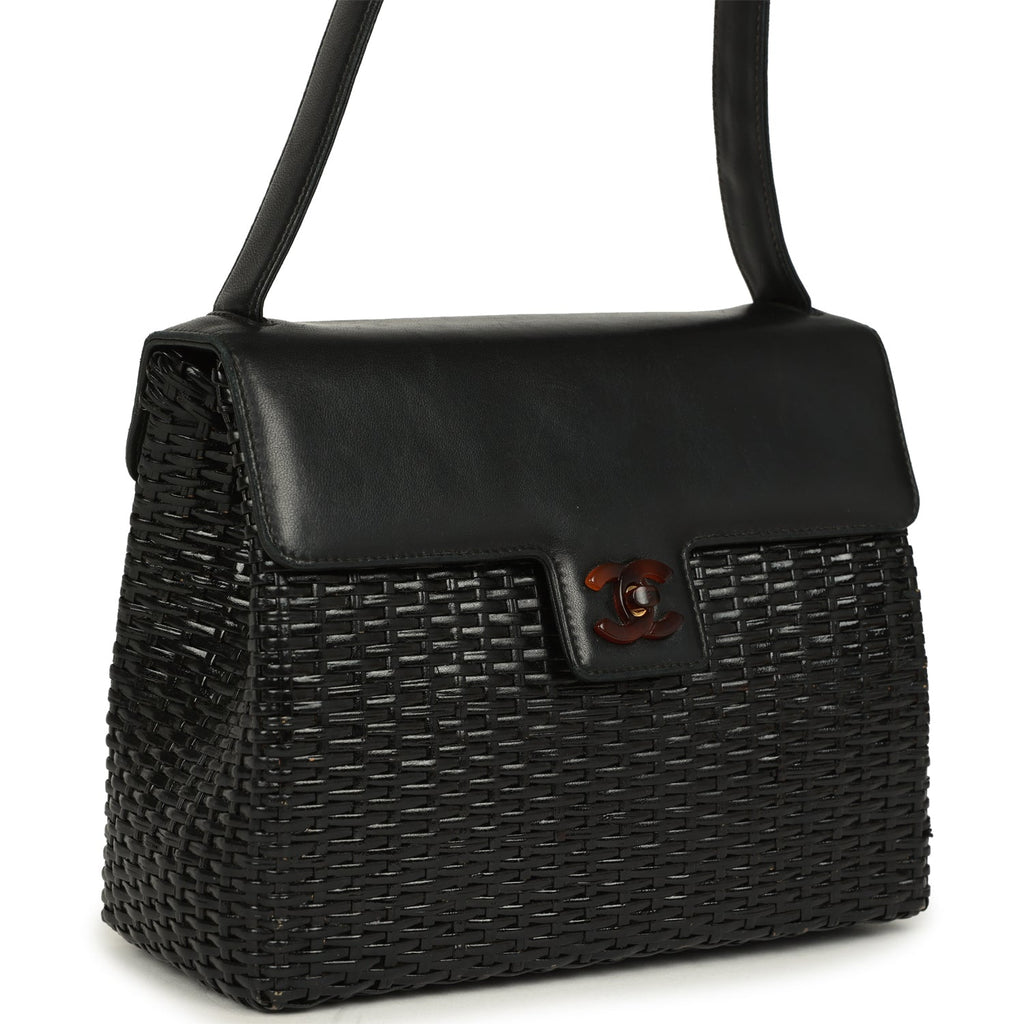 Vintage Chanel Wicker Basket Bag Black Lambskin and Rattan Bakelite Hardware