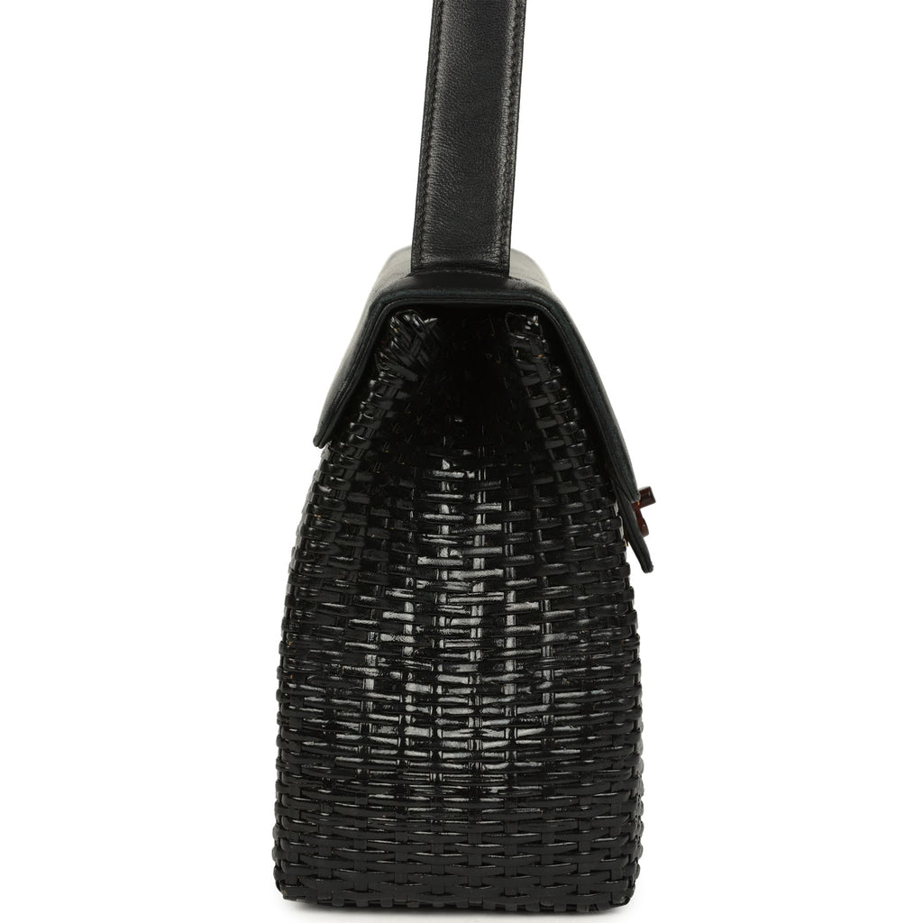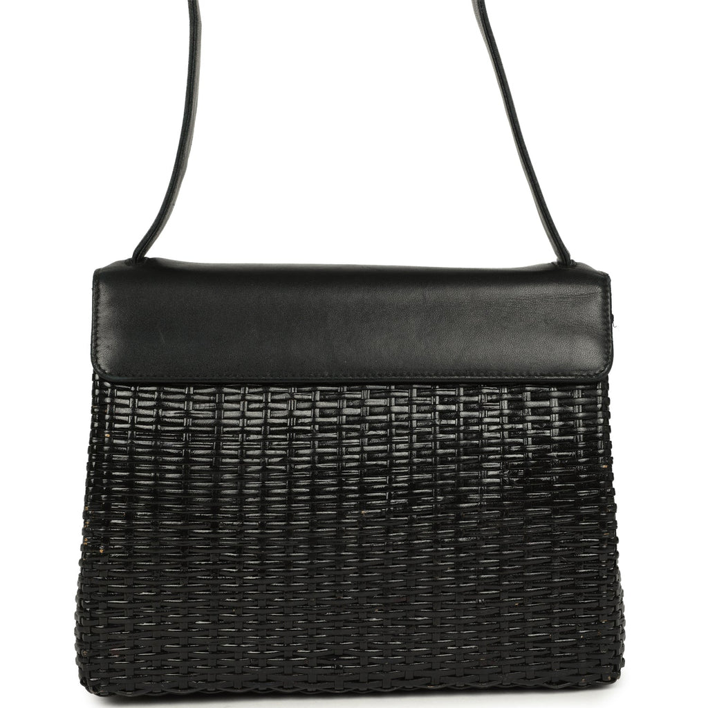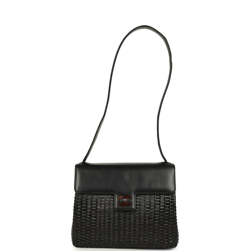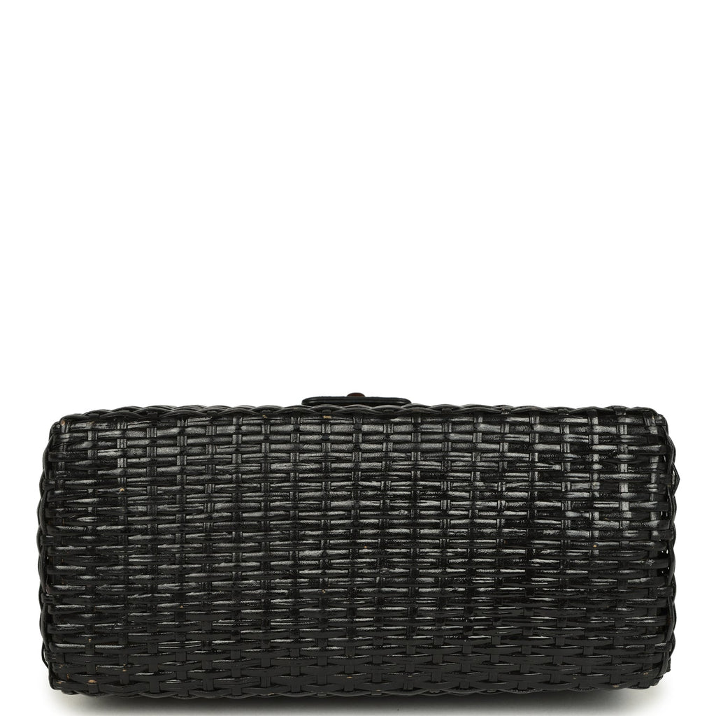 Vintage Chanel Wicker Basket Bag Black Lambskin and Rattan Bakelite Hardware