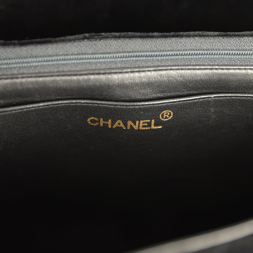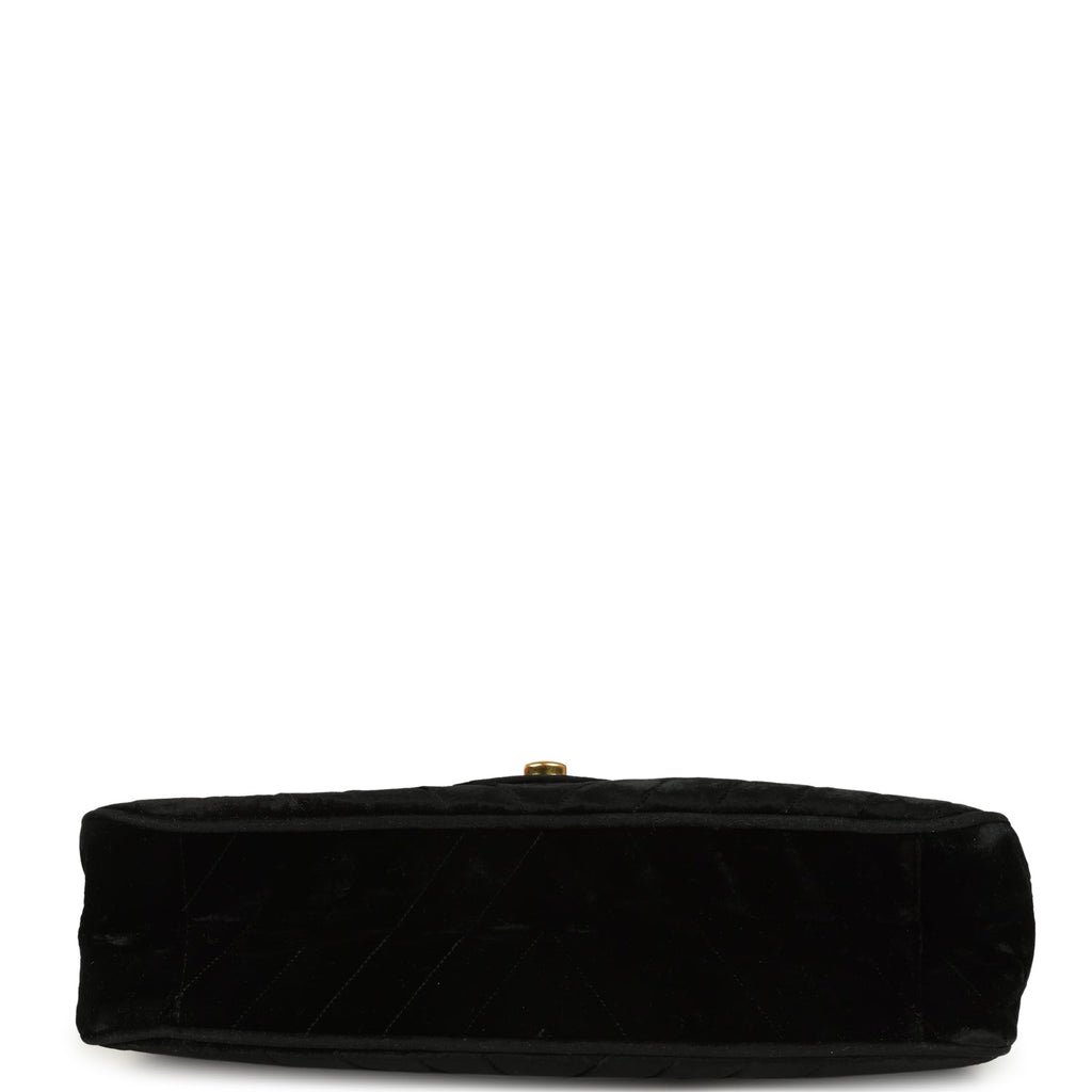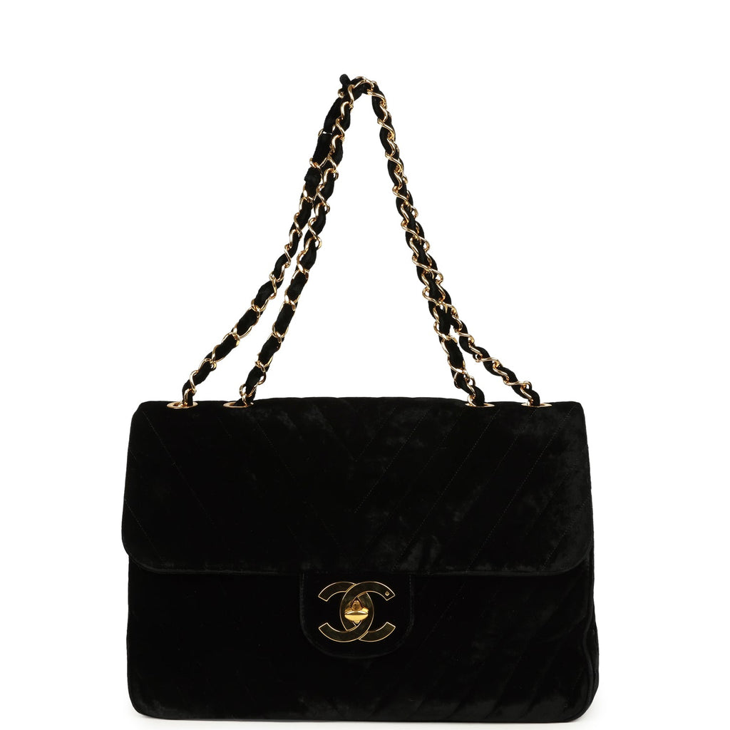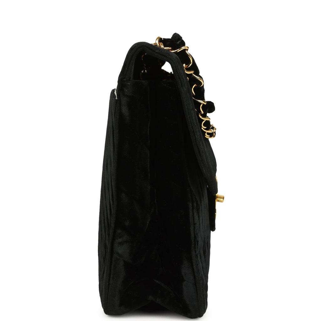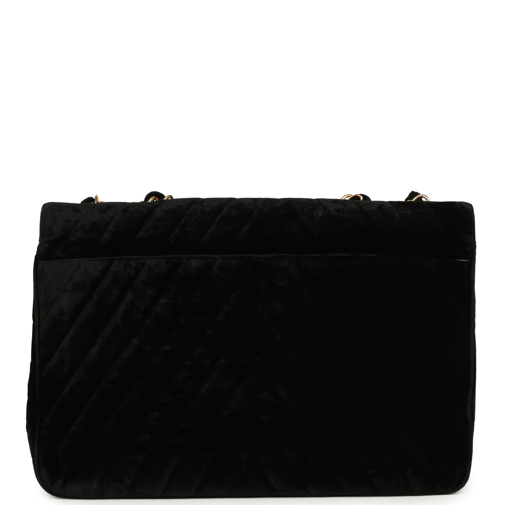 Vintage Chanel XL Classic Chevron Single Flap Bag Black Velvet Gold Hardware
