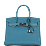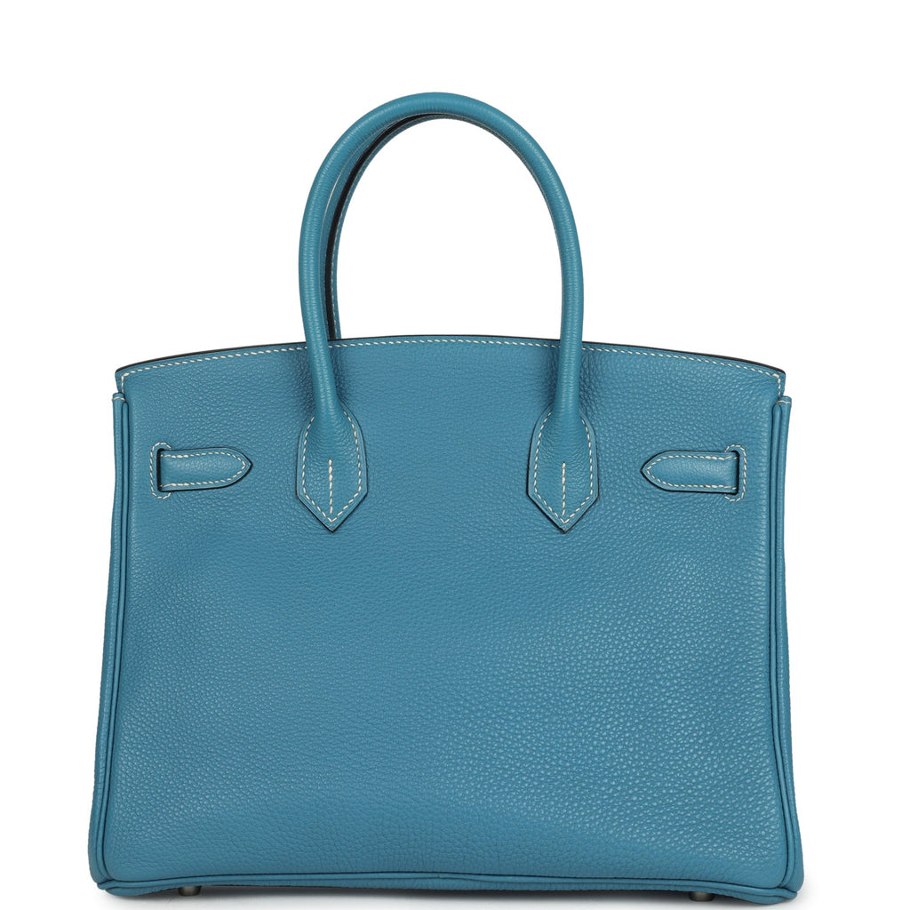 Vintage Hermes Birkin 30 Blue Jean Clemence Palladium Hardware