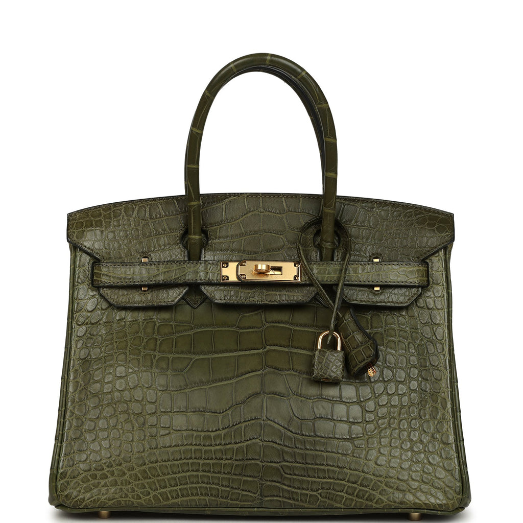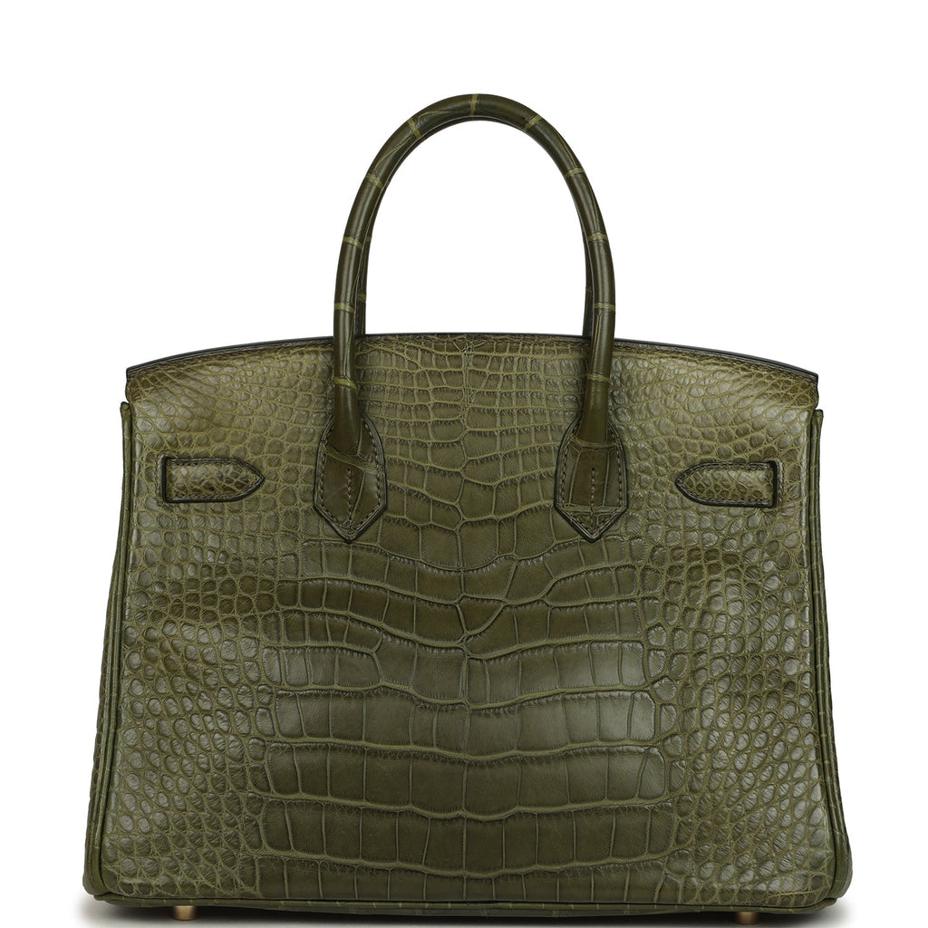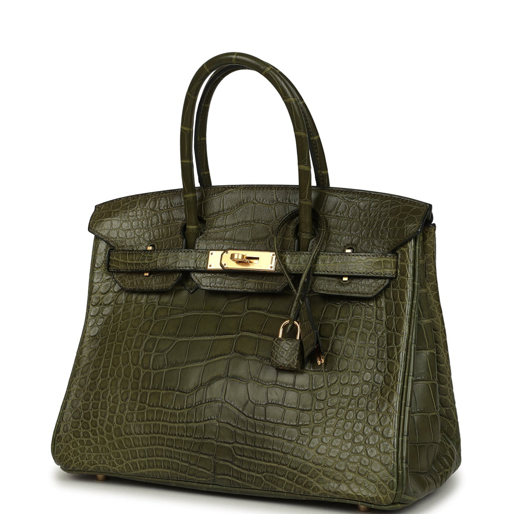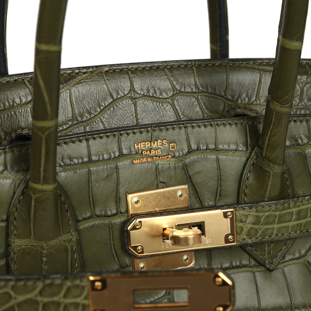 Vintage Hermes Birkin 30 Vert Olive Matte Alligator Gold Hardware