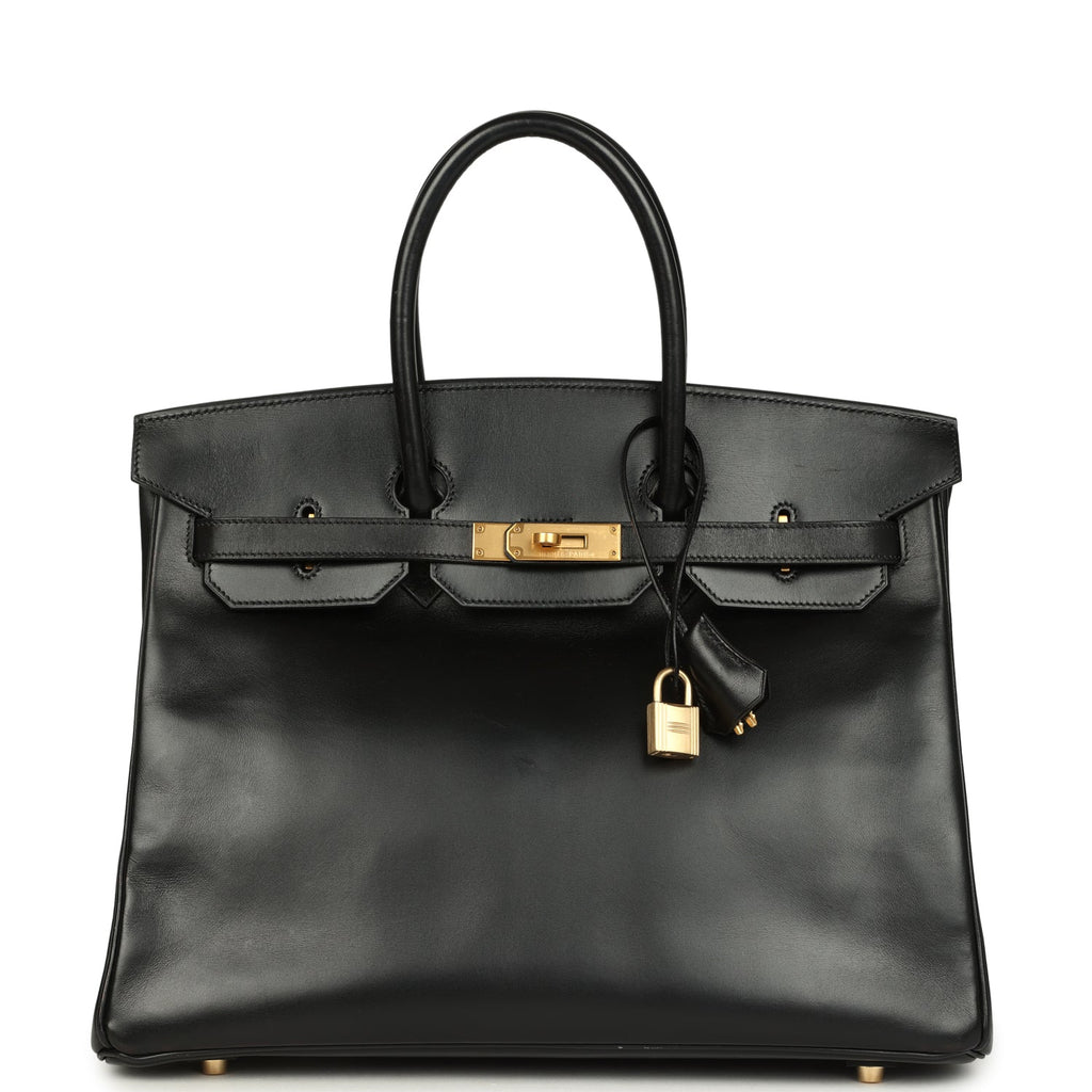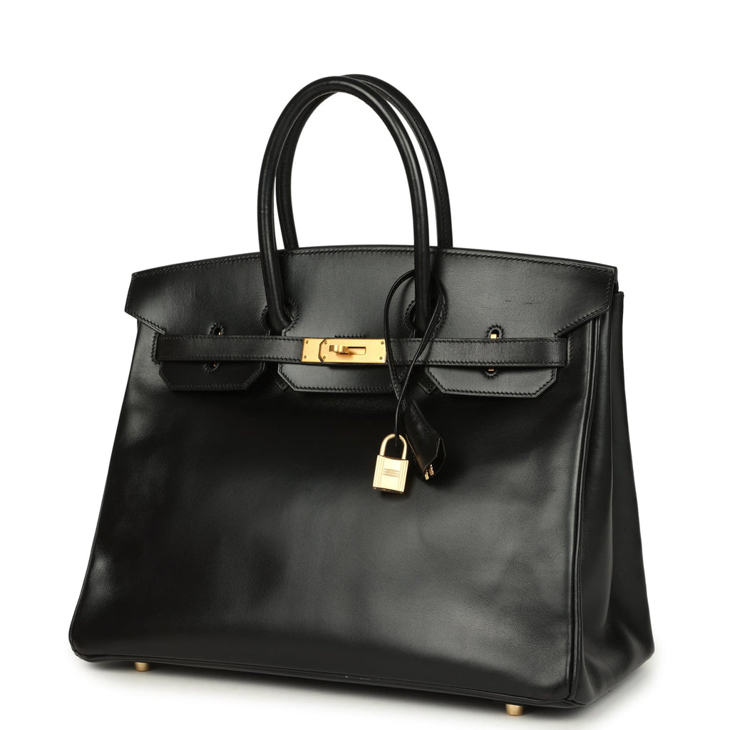 Vintage Hermes Birkin 35 Black Box Brushed Gold Hardware
