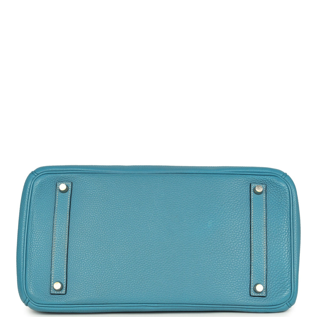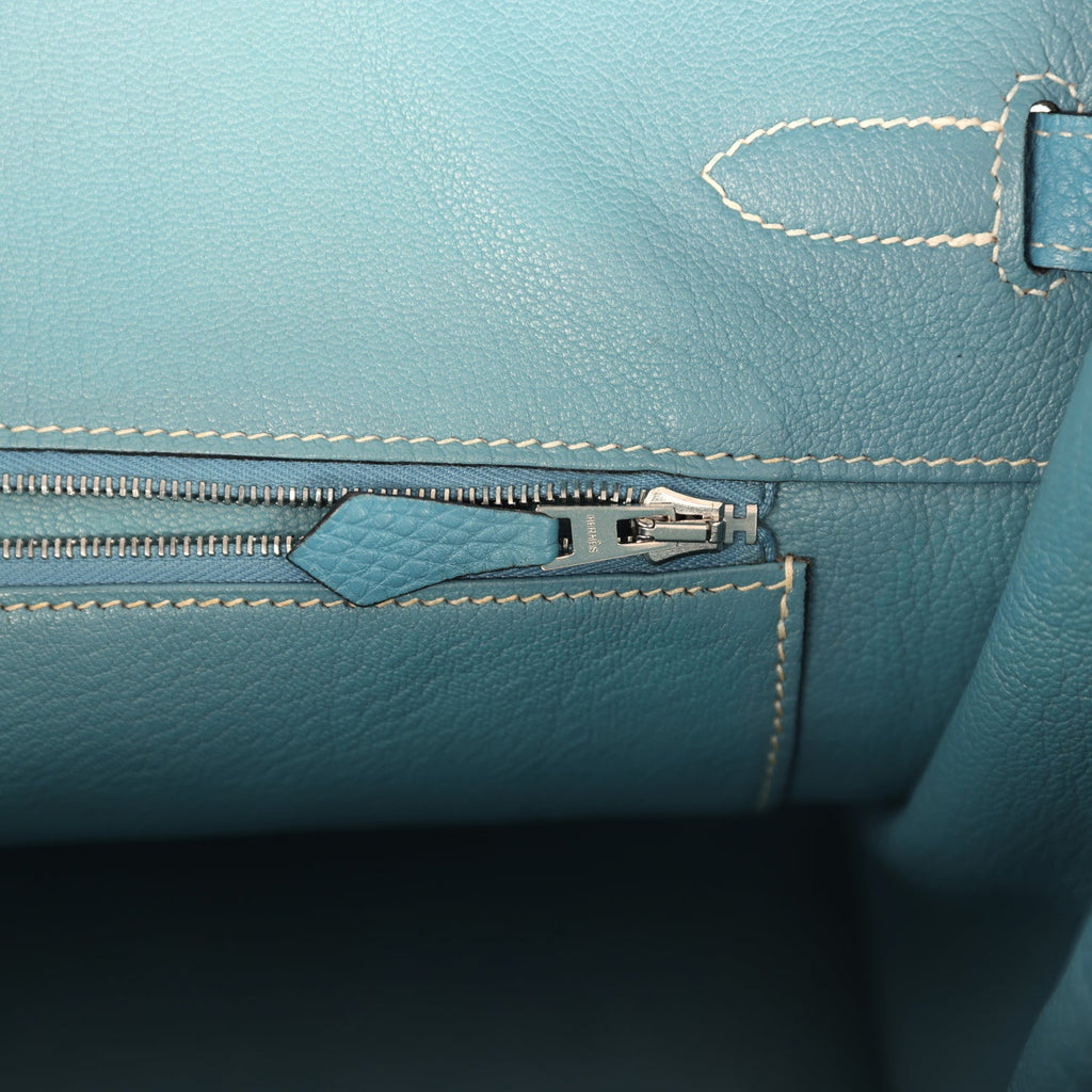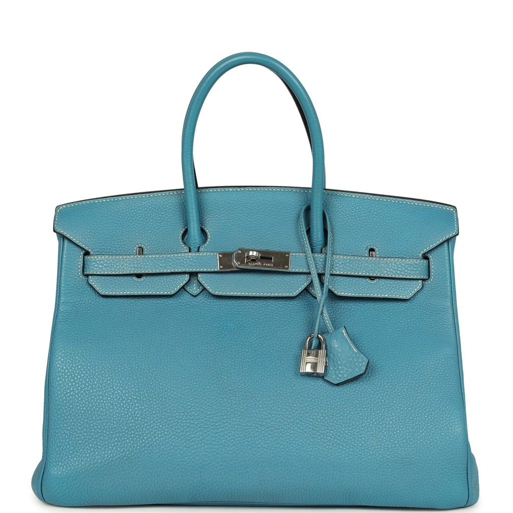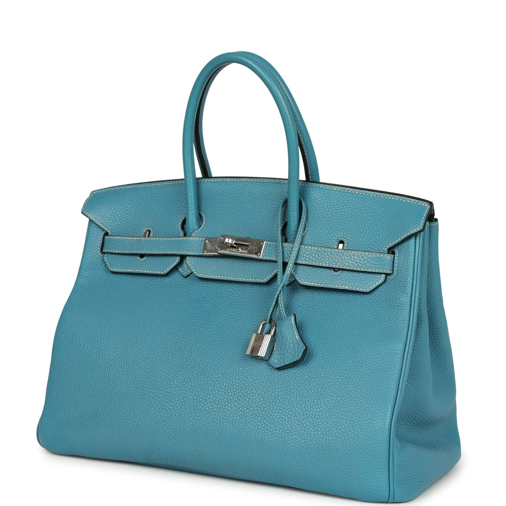 Vintage Hermes Birkin 35 Blue Jean Togo Palladium Hardware
