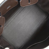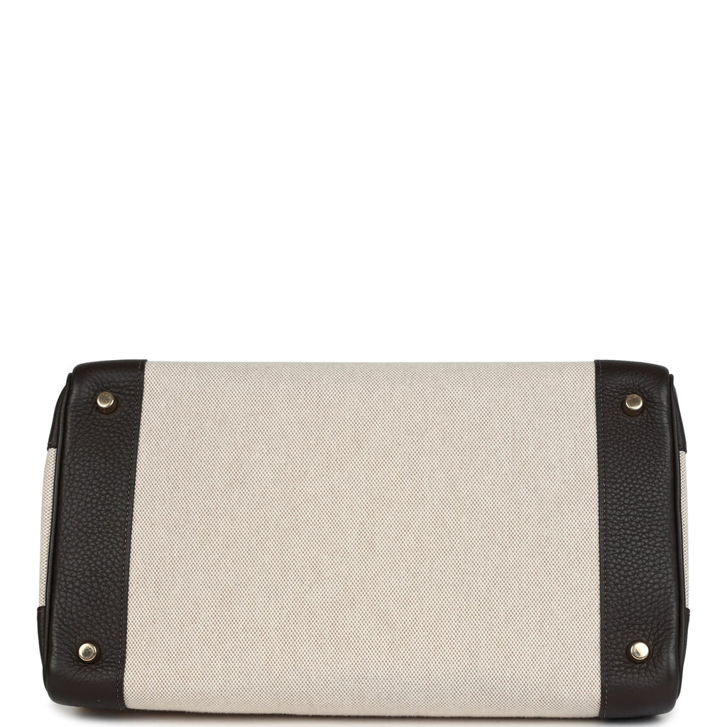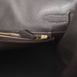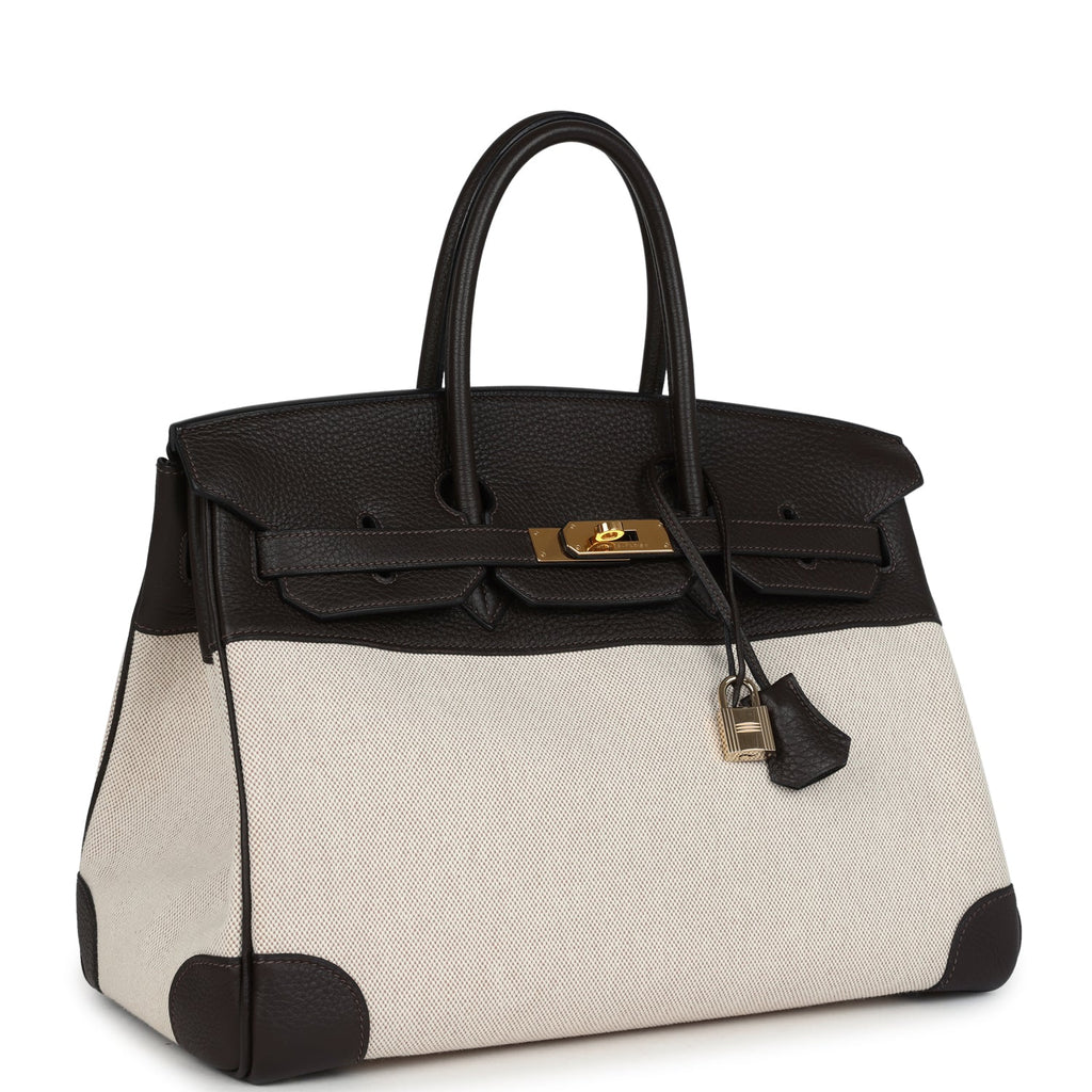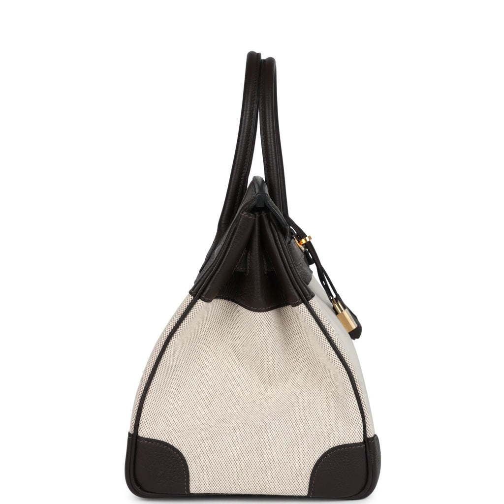 Pre-owned Hermes Birkin 35 Ebene Clemence and Ecru-Beige Toile H Canvas Gold Hardware