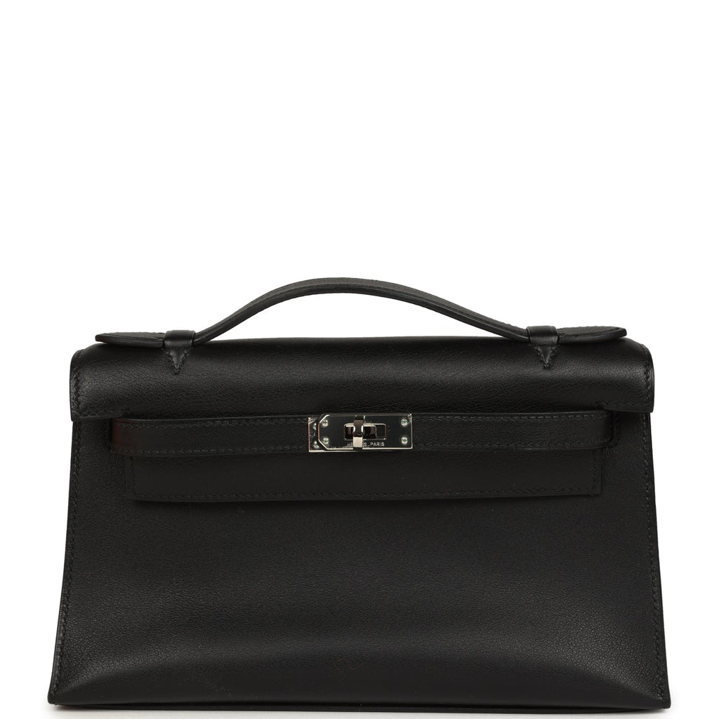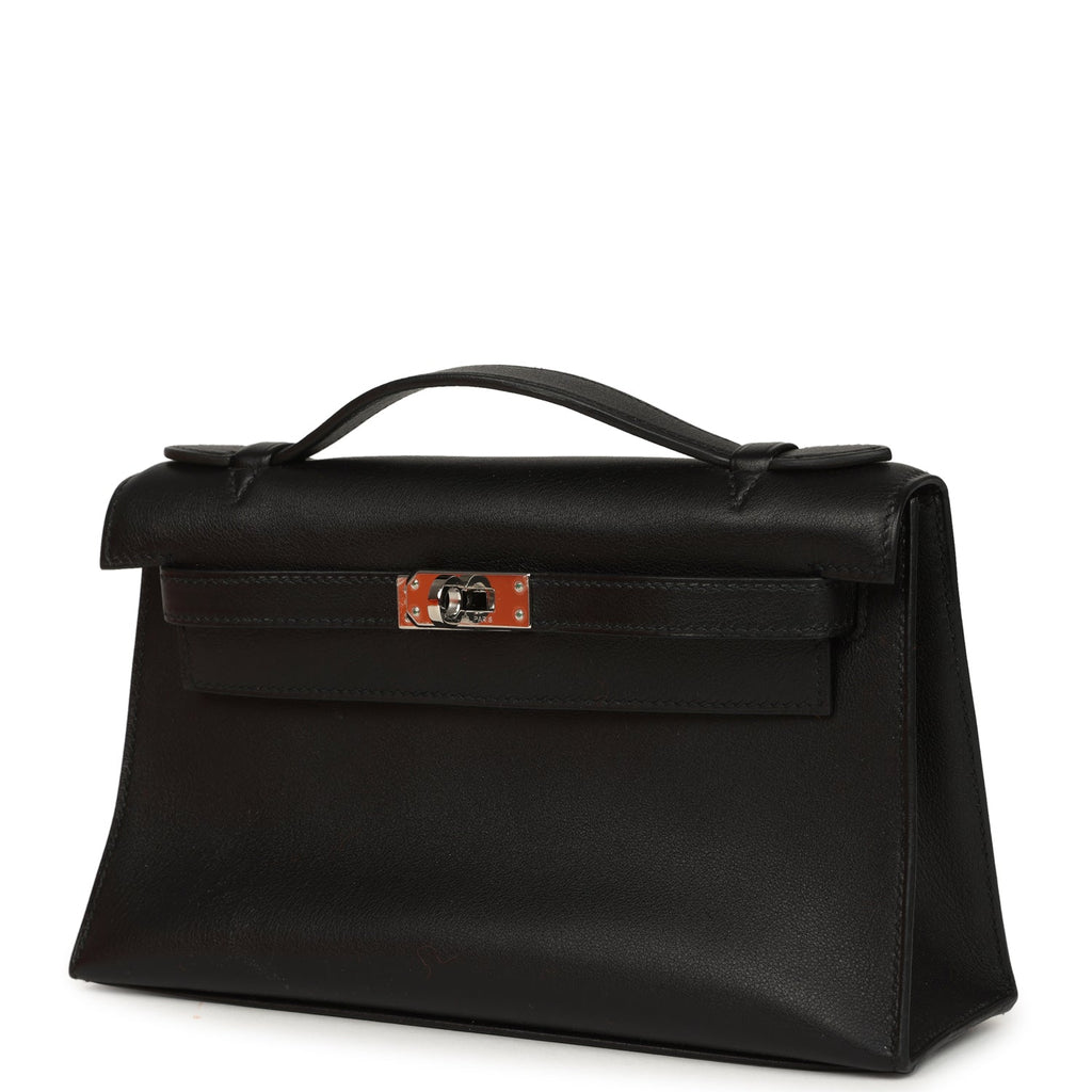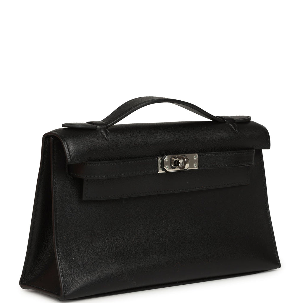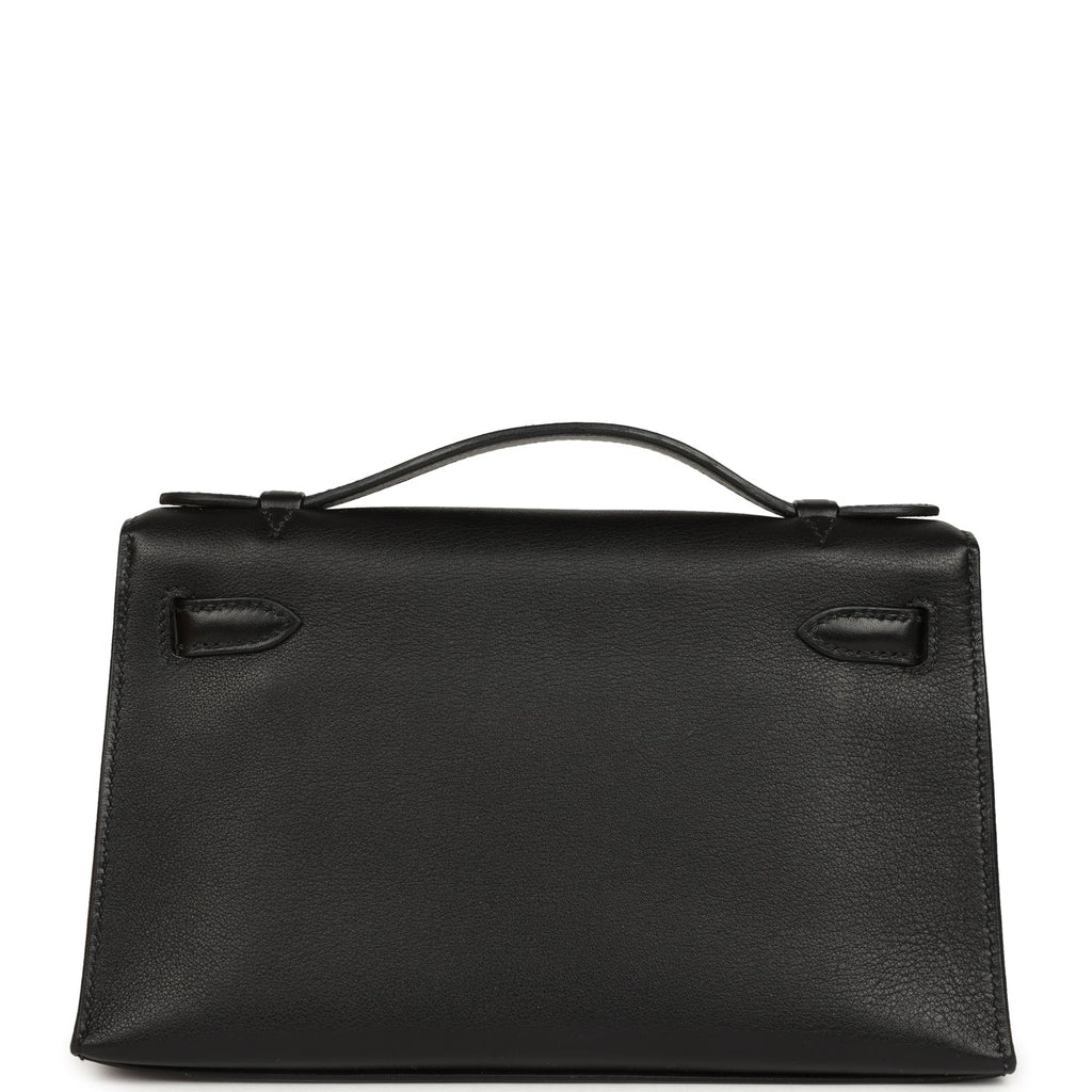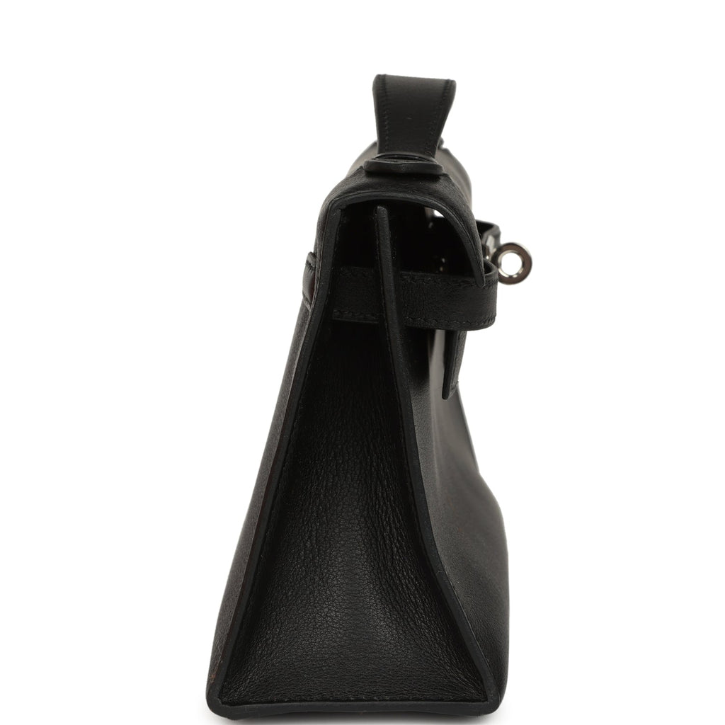 Vintage Hermes Kelly Pochette Black Swift Palladium Hardware