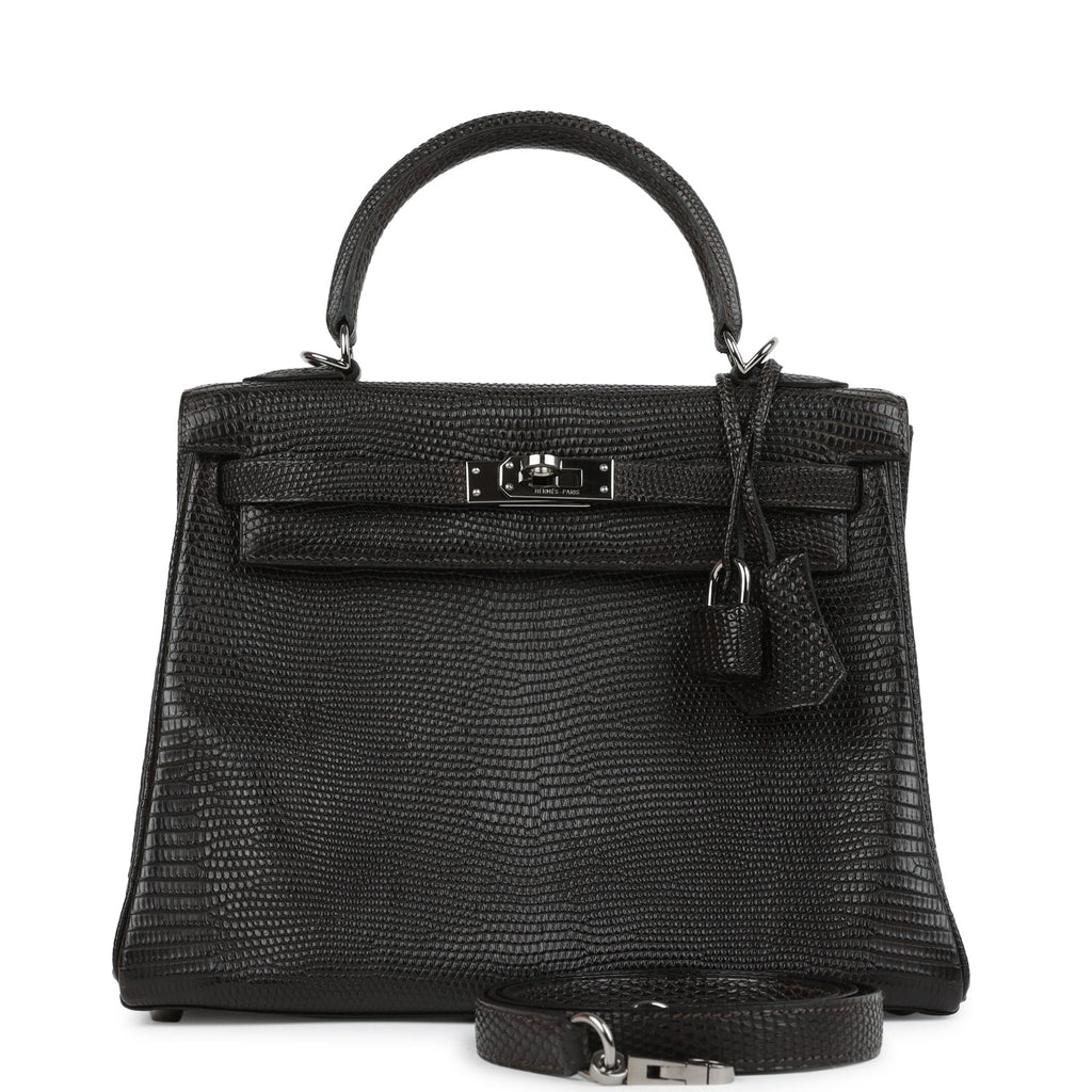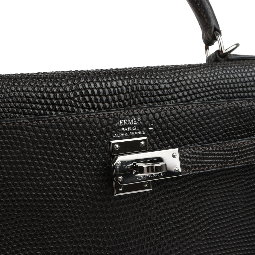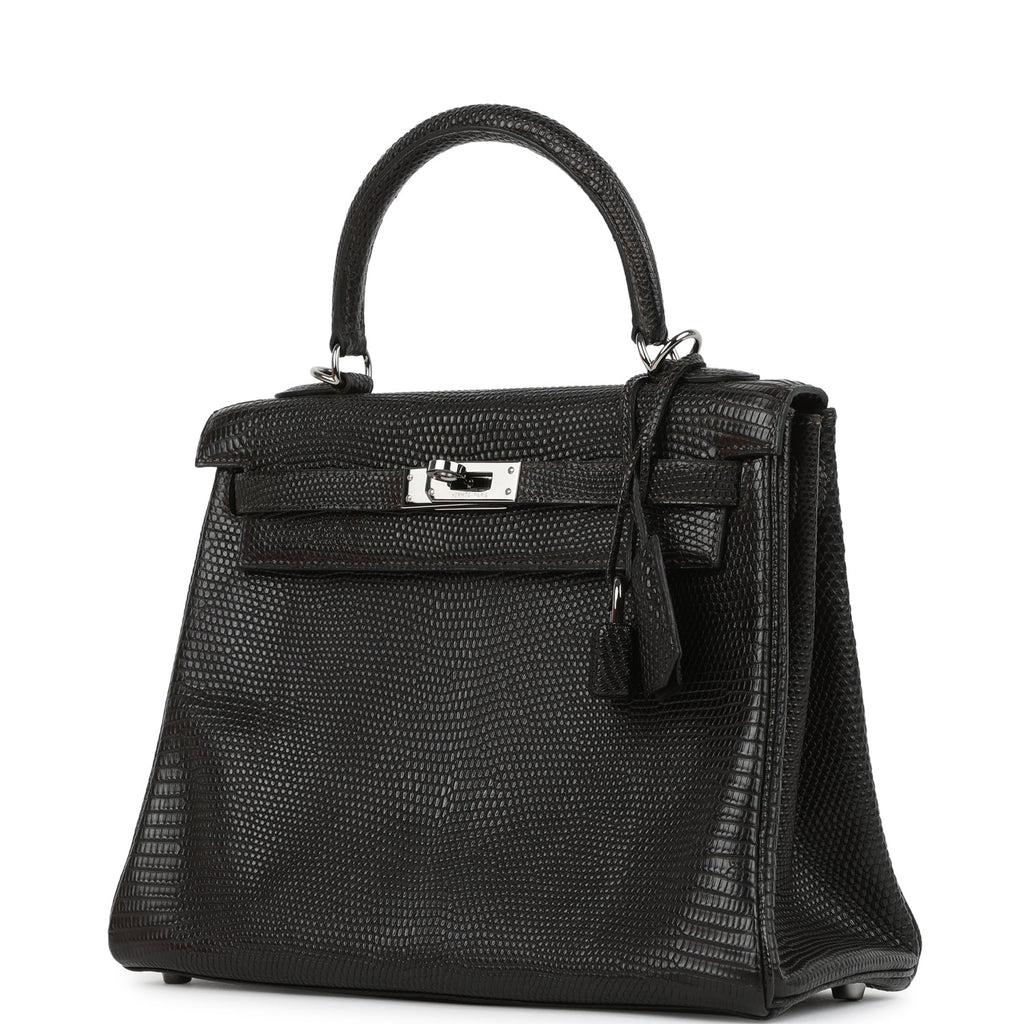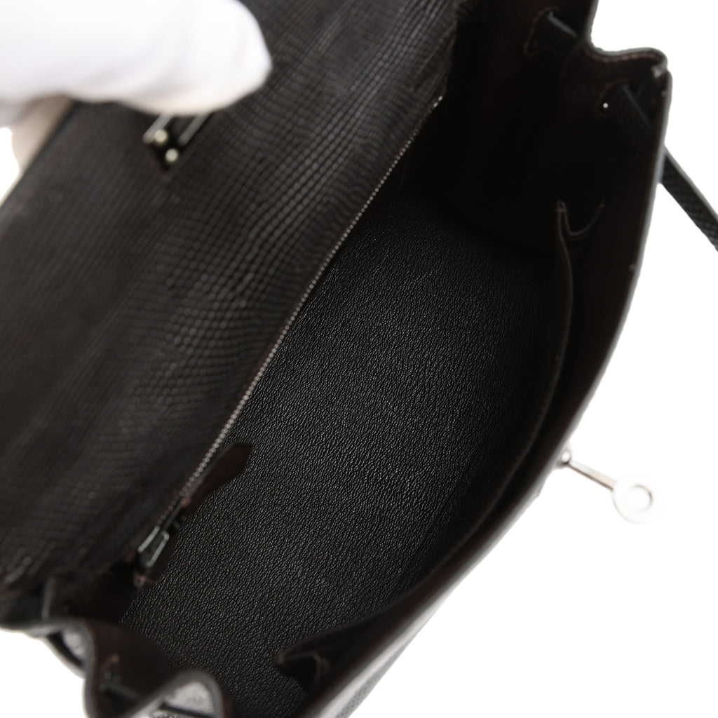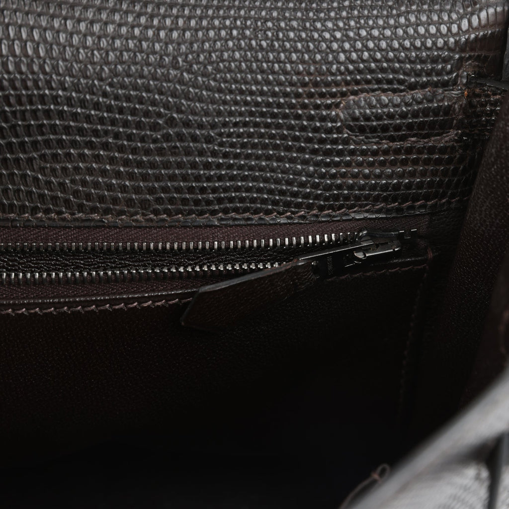 Vintage Hermes Kelly Retourne 25 Cocoan Matte Varanus Salvator Lizard Ruthenium Hardware