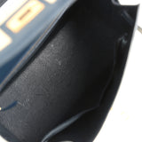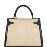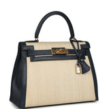 Vintage Hermes Kelly Sellier 28 Bleu Marine Courchevel and Ecru Crinoline Gold Hardware