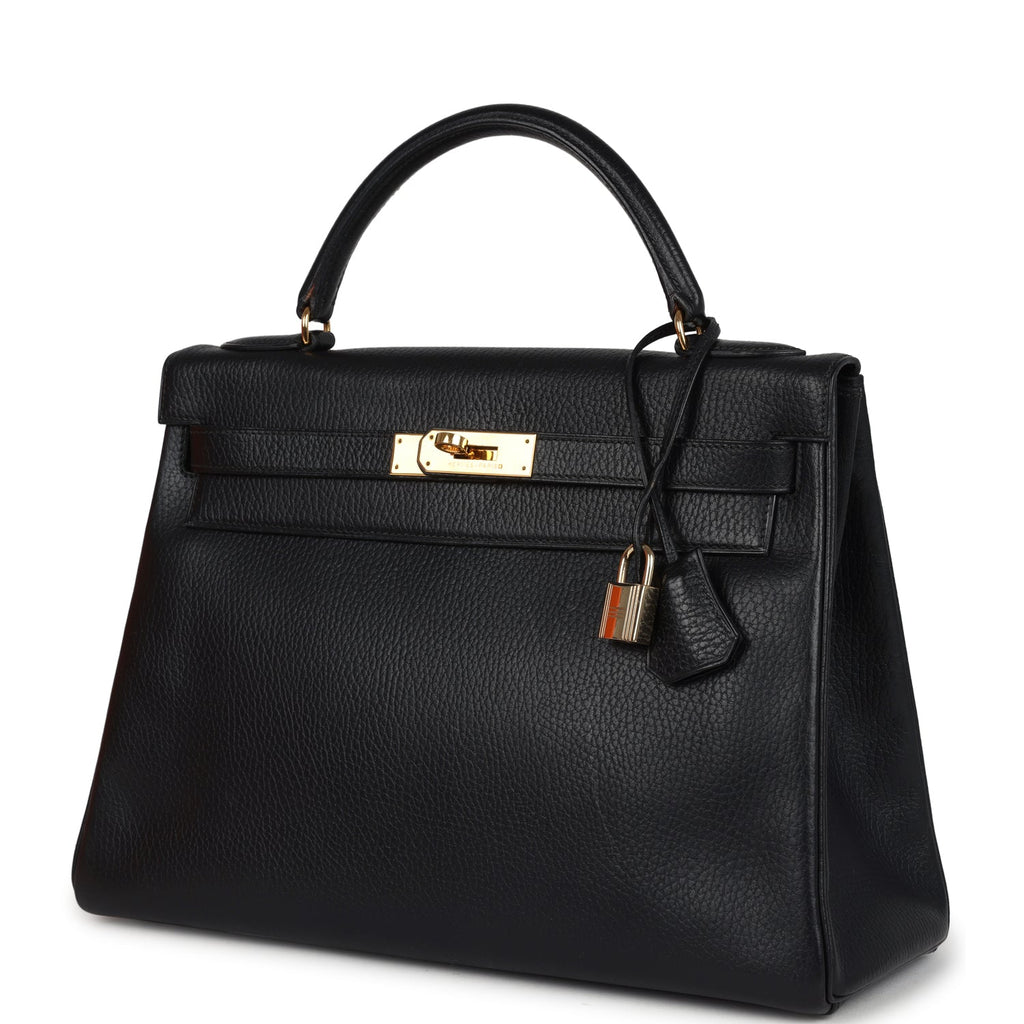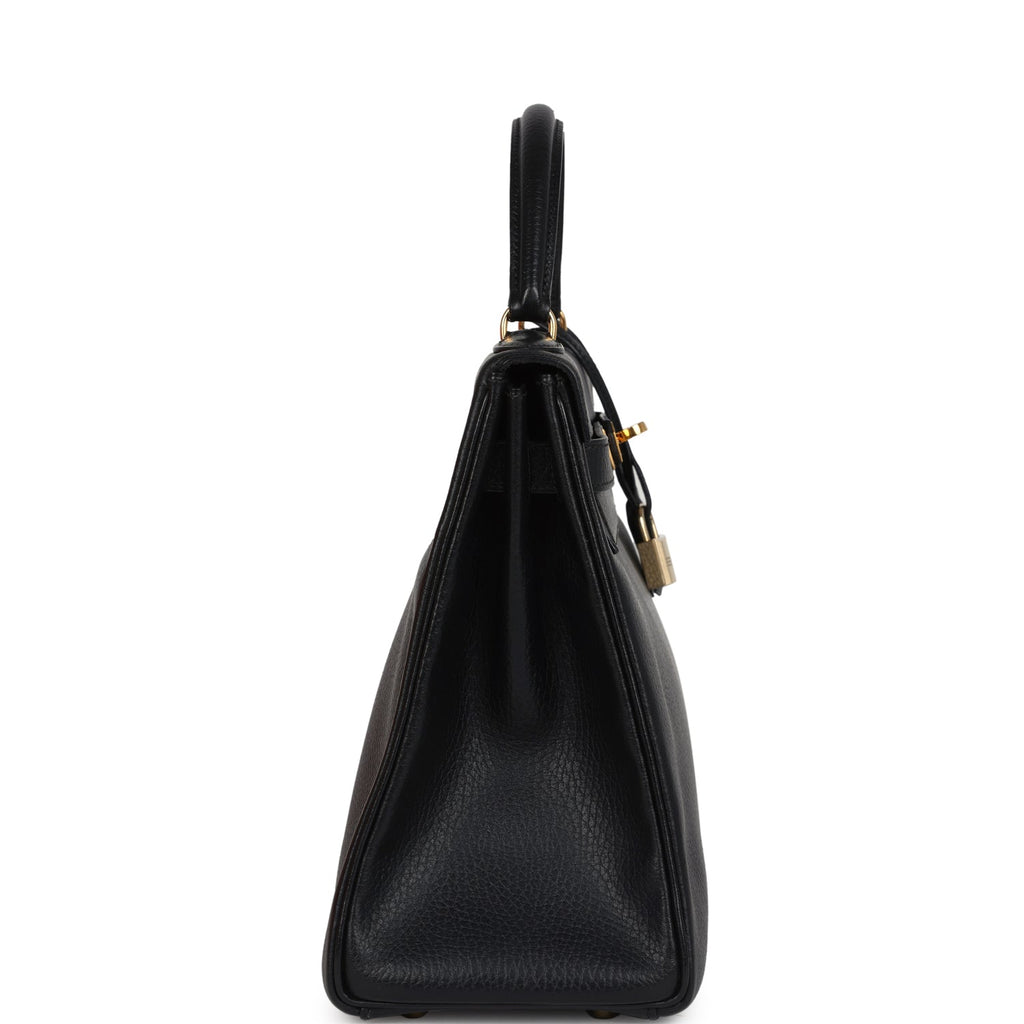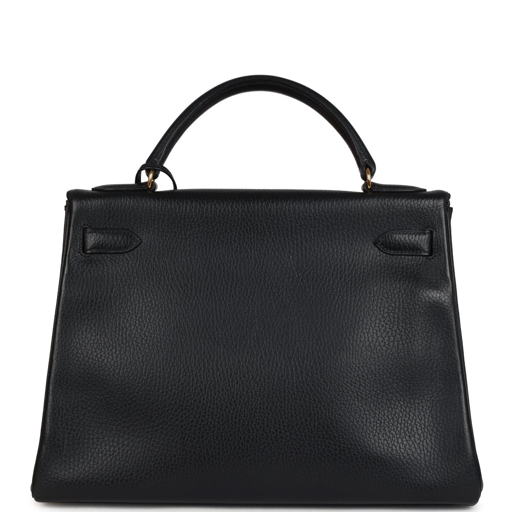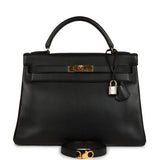 Vintage Hermes Kelly Retourne 32 Black Ardennes Gold Hardware