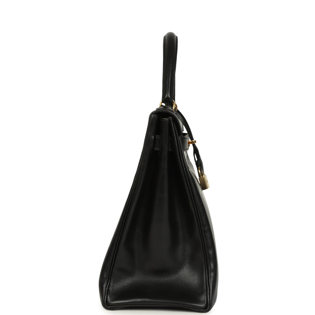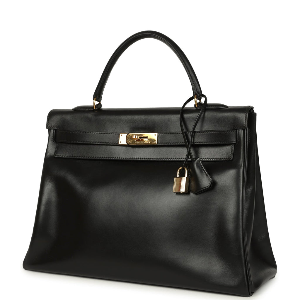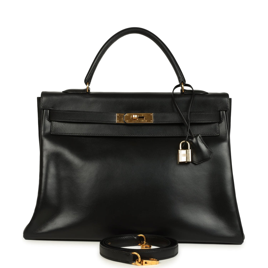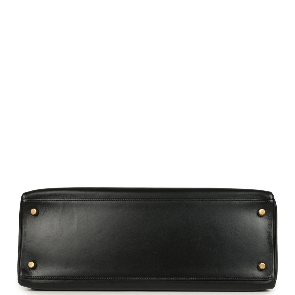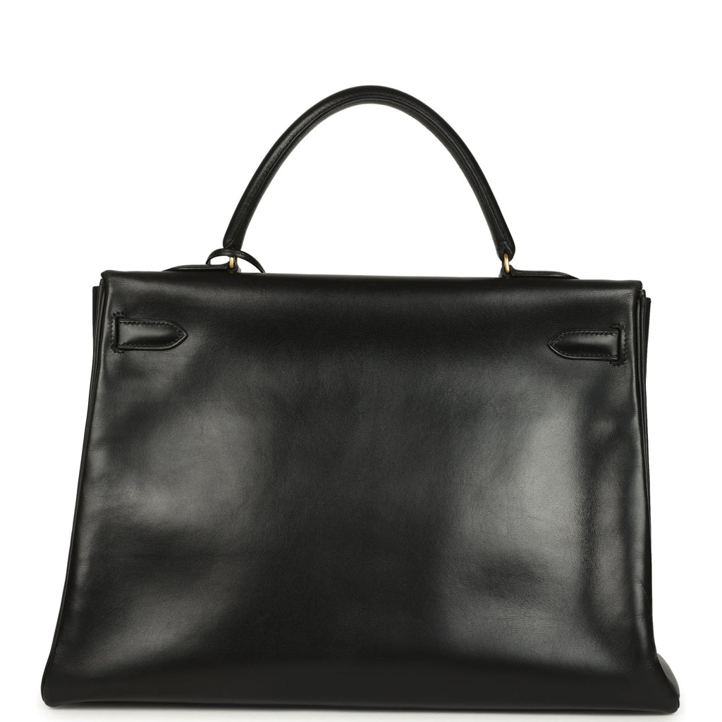 Vintage Hermes Kelly Retourne 35 Black Box Gold Hardware
