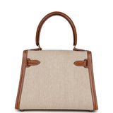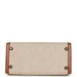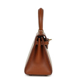 Vintage Hermes Kelly Sellier 20 Gold Courchevel and Ecru-Beige Toile H Canvas Gold Hardware