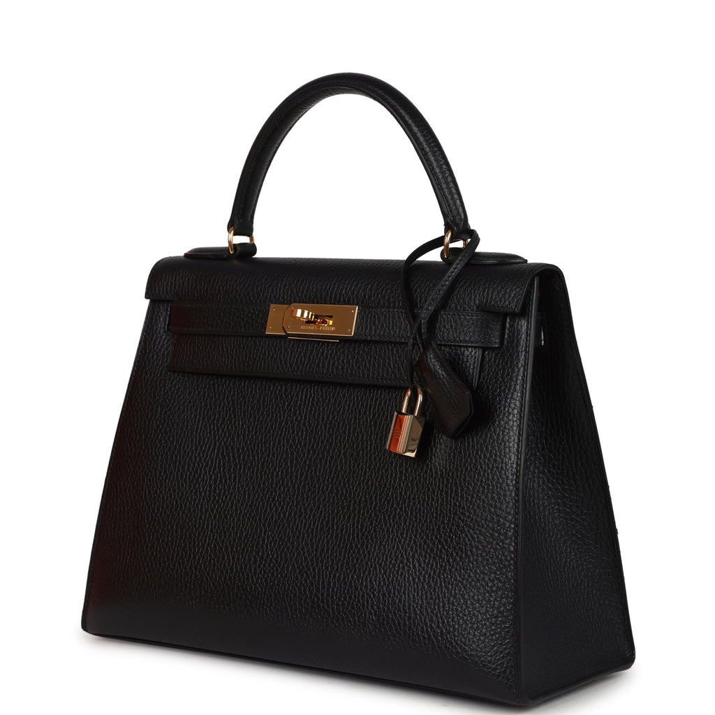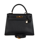 Vintage Hermes Kelly Sellier 28 Black Ardennes Gold Hardware