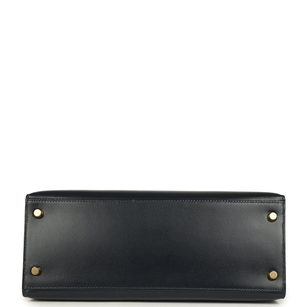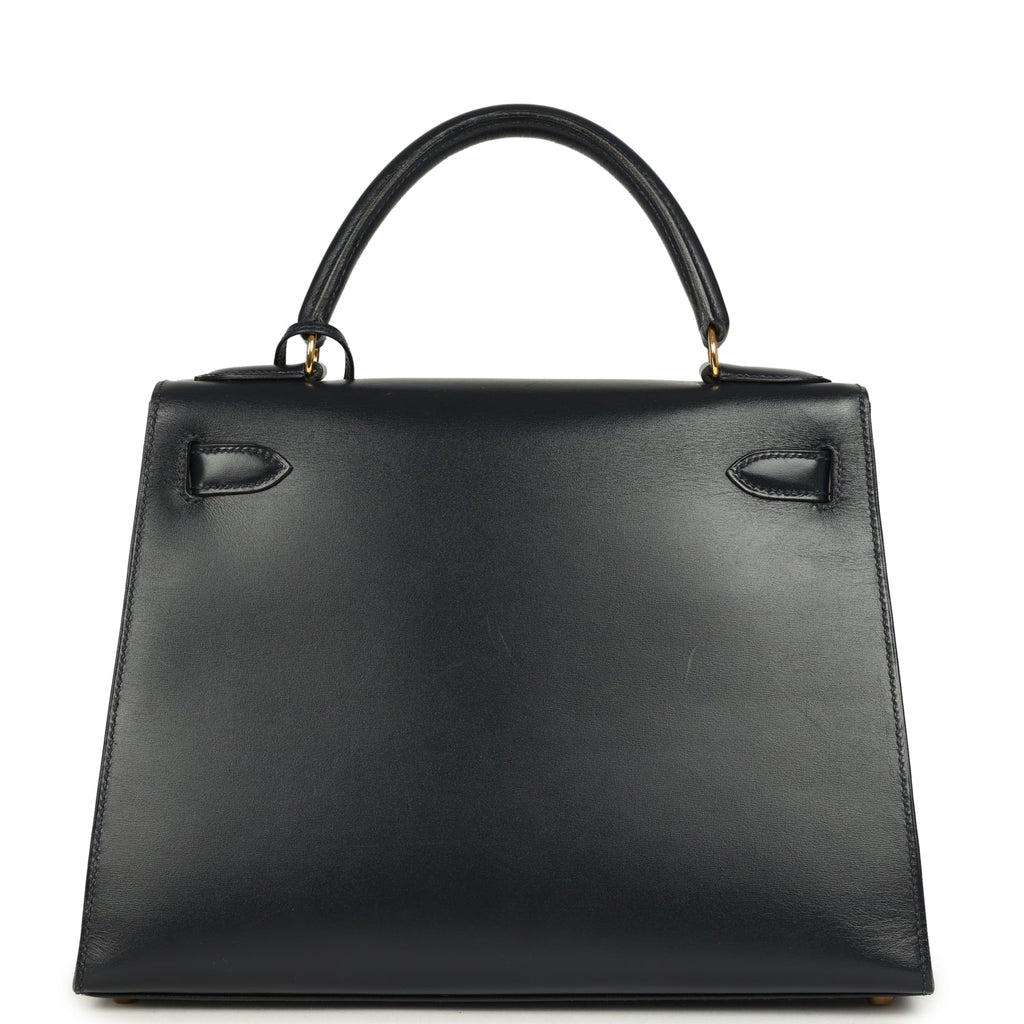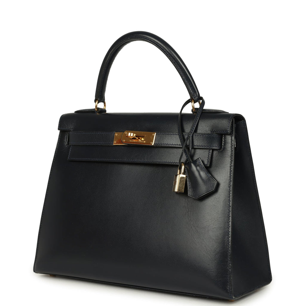Vintage Hermes Kelly Sellier 28 Bleu Marine Box Gold Hardware