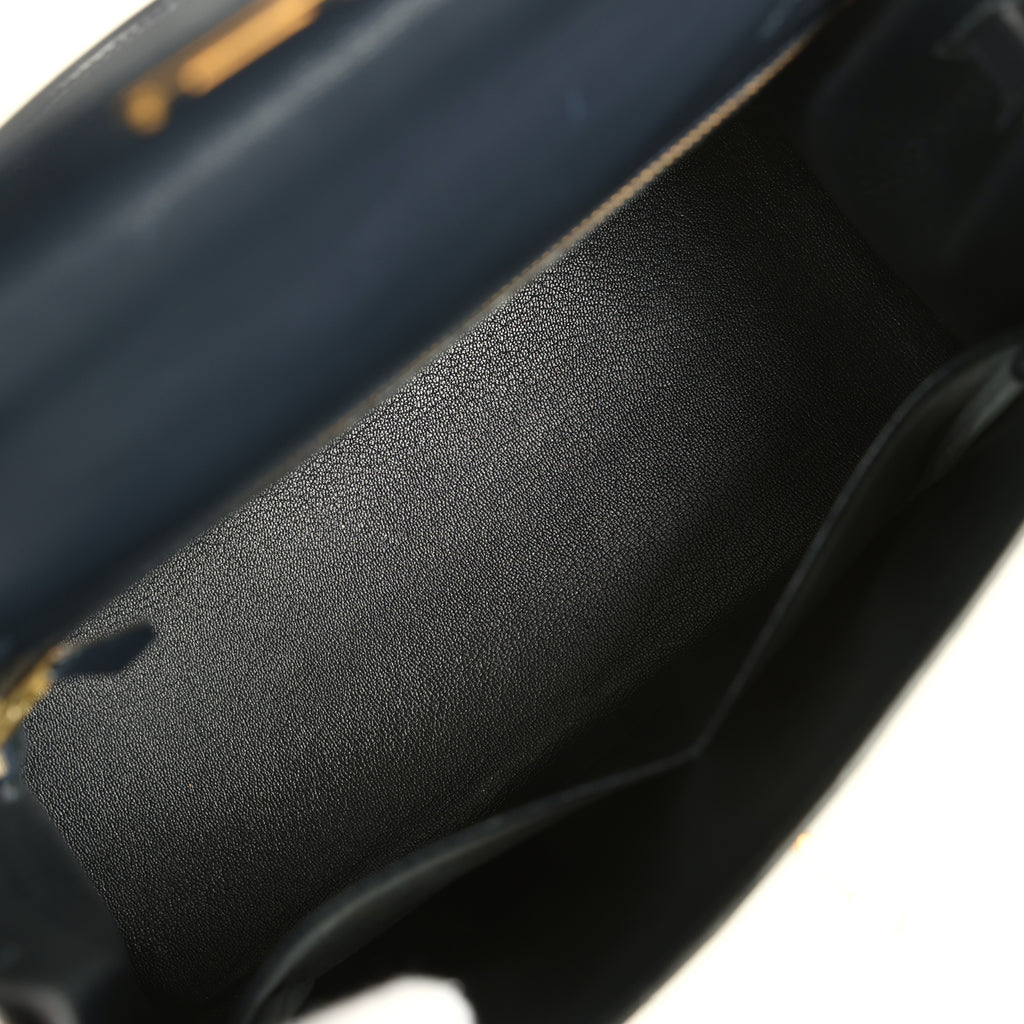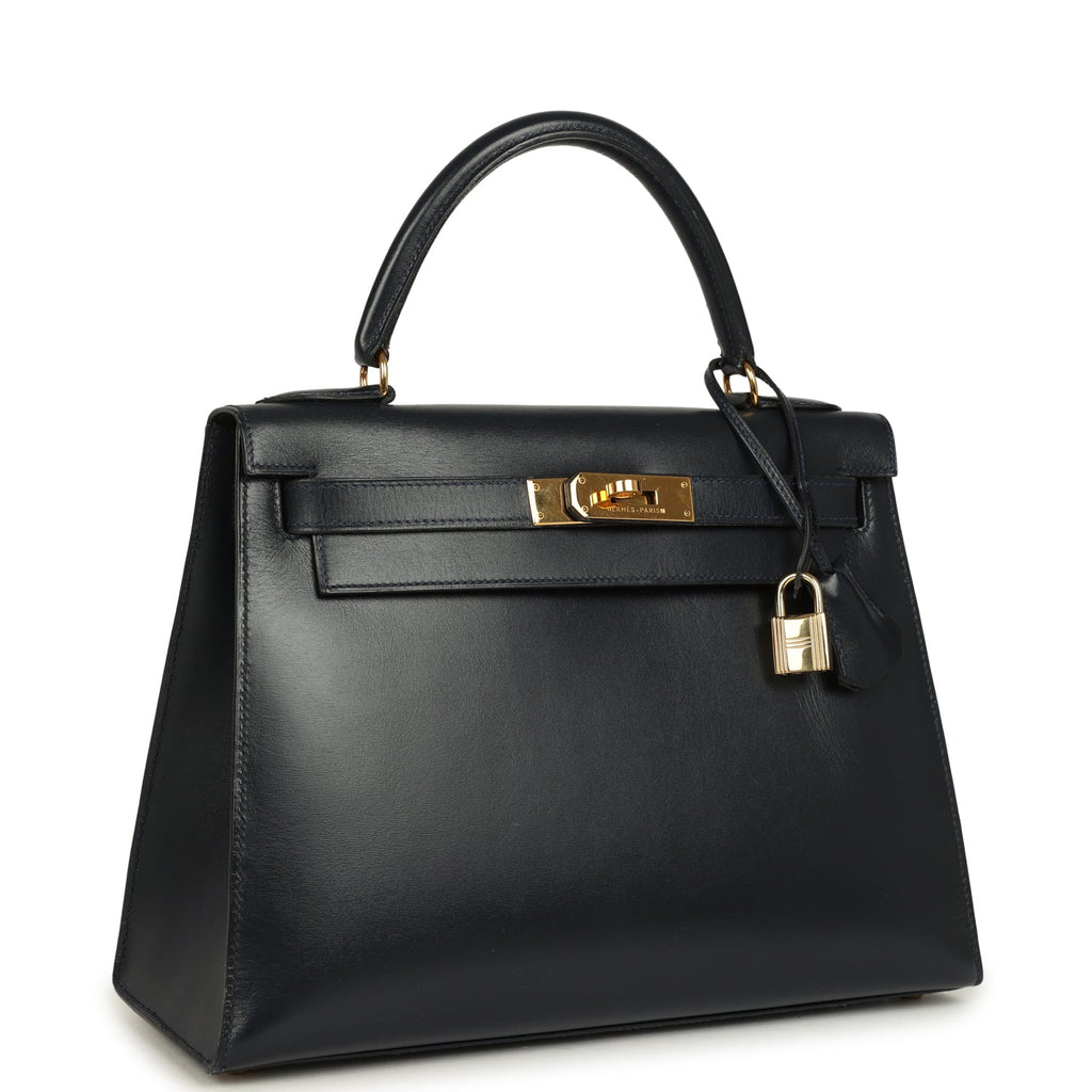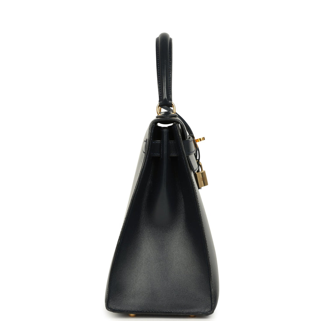 Vintage Hermes Kelly Sellier 28 Bleu Marine Box Gold Hardware