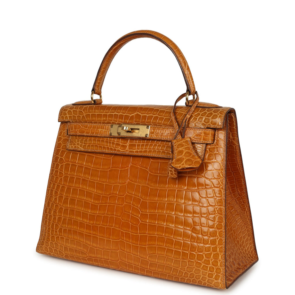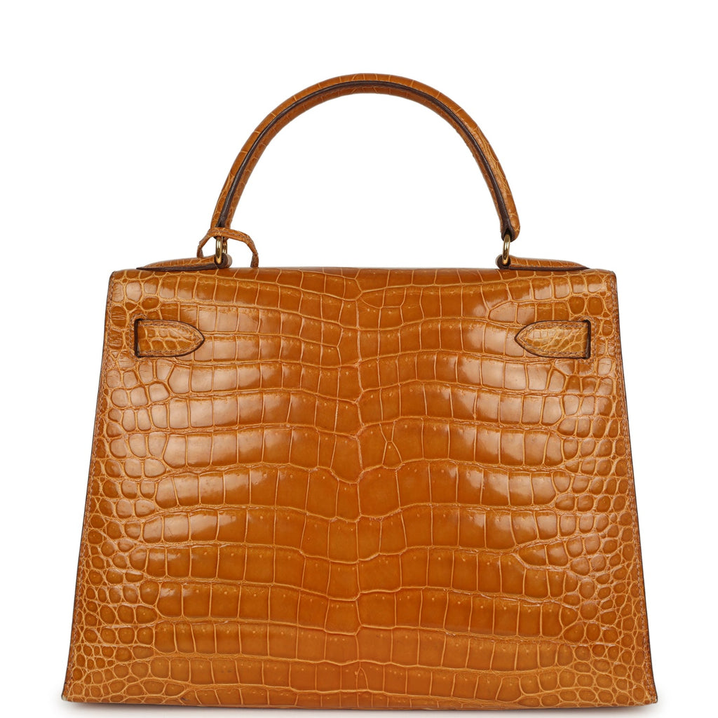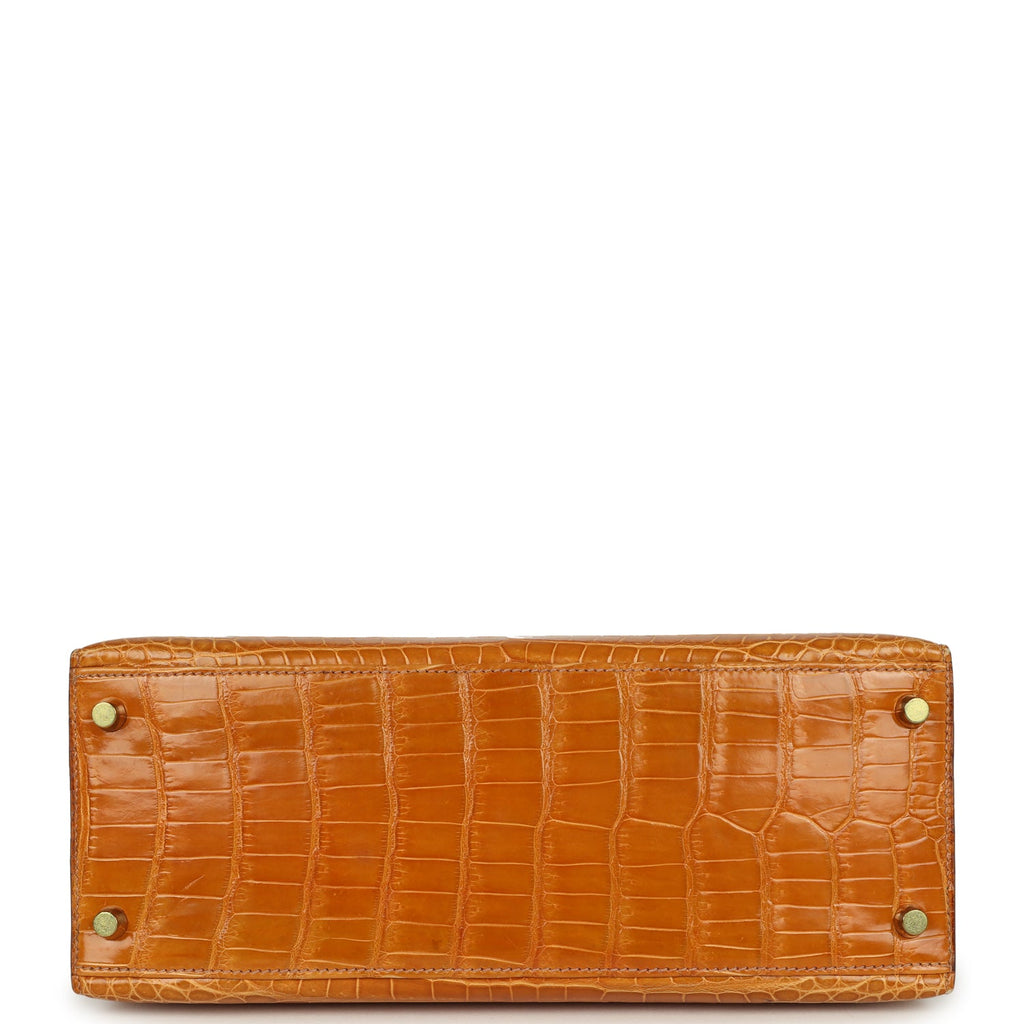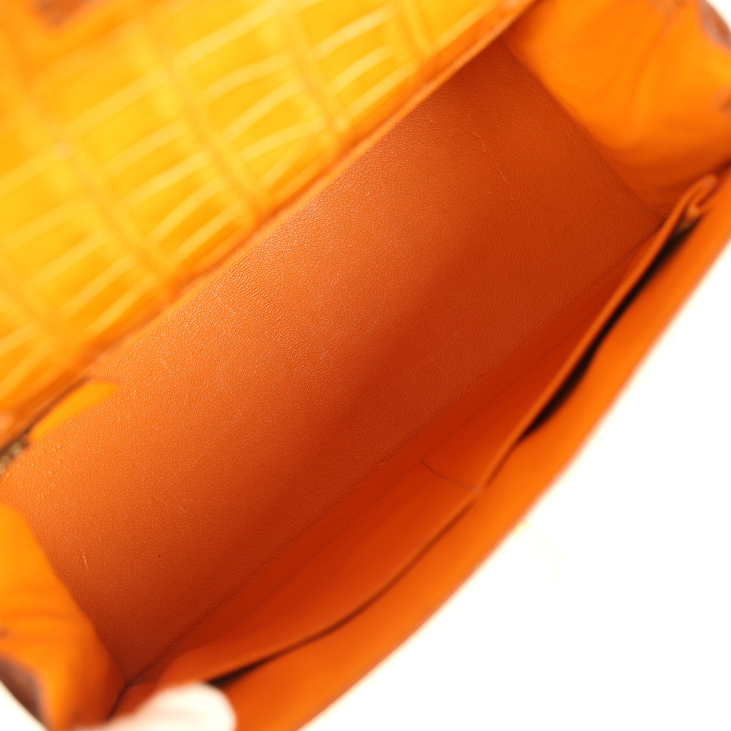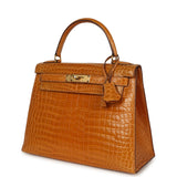 Vintage Hermes Kelly Sellier 28 Saffron Porosus Crocodile Gold Hardware