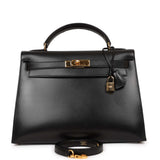 Vintage Hermes Kelly Sellier 32 Black Box Gold Hardware
