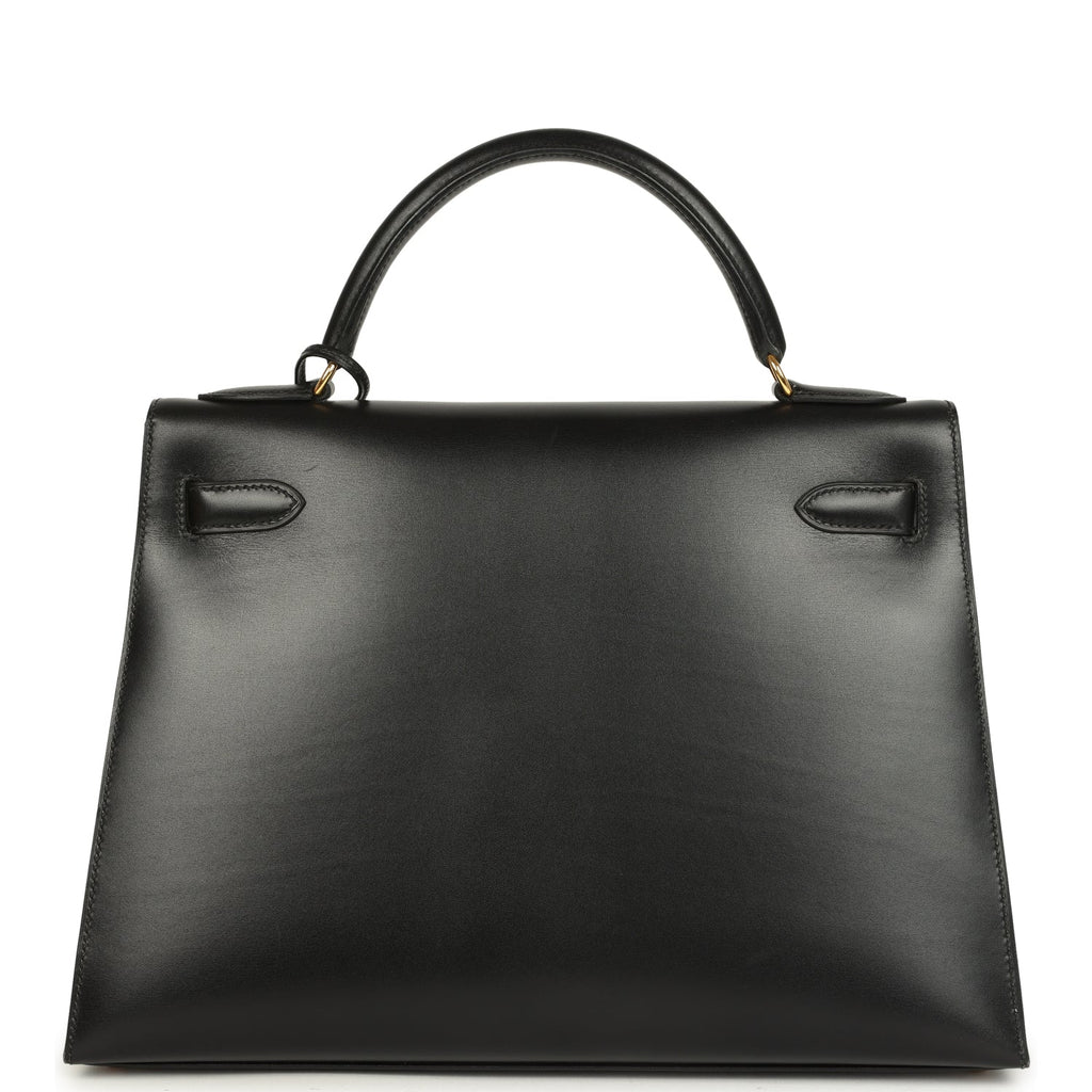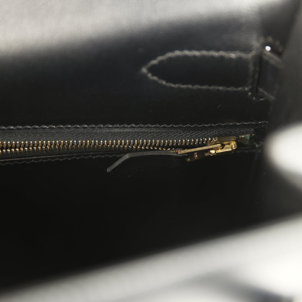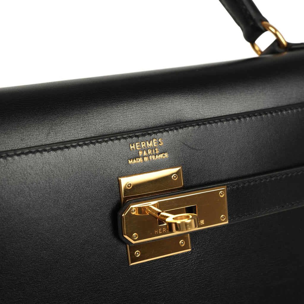 Vintage Hermes Kelly Sellier 32 Black Box Gold Hardware