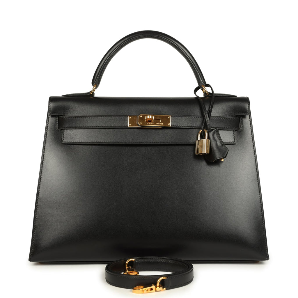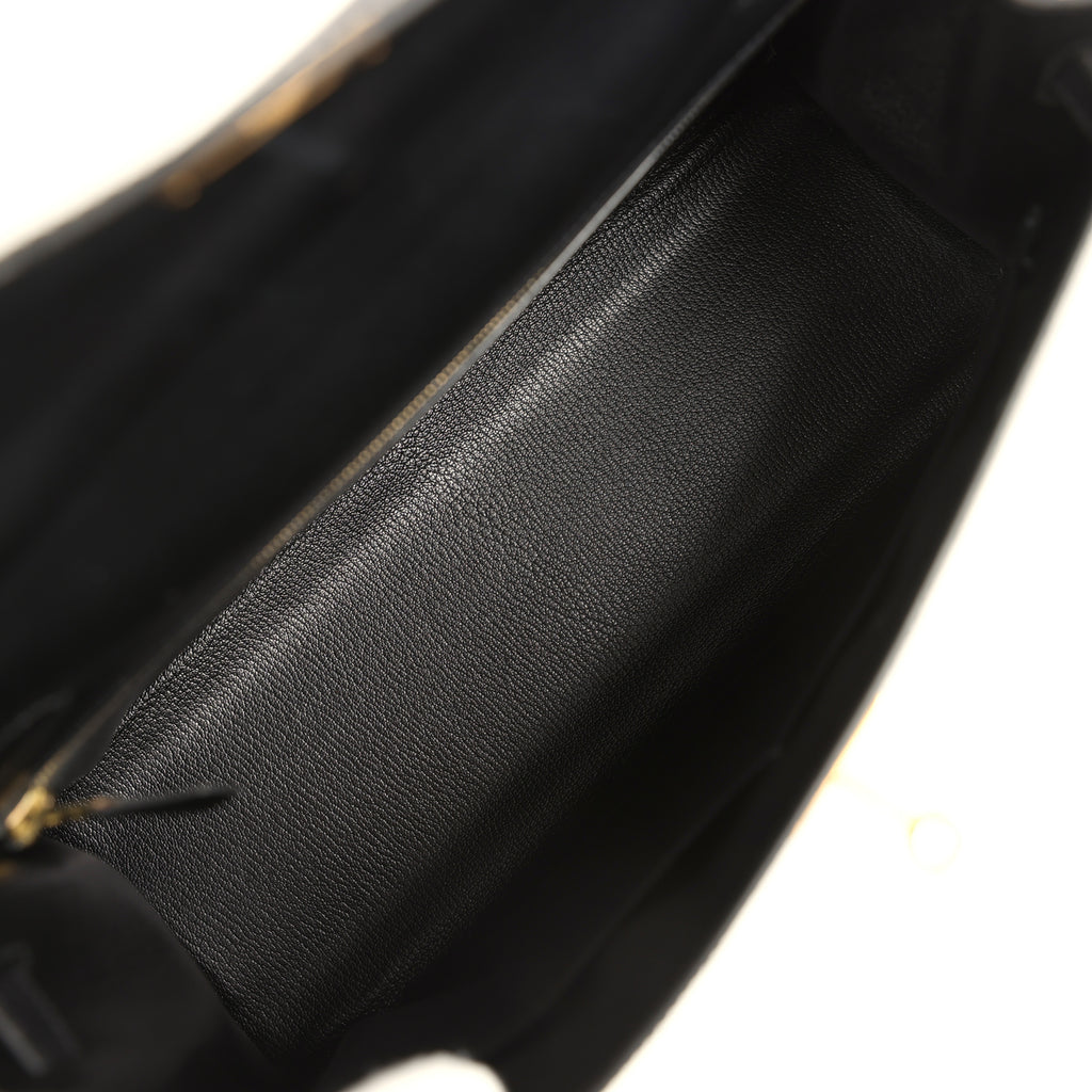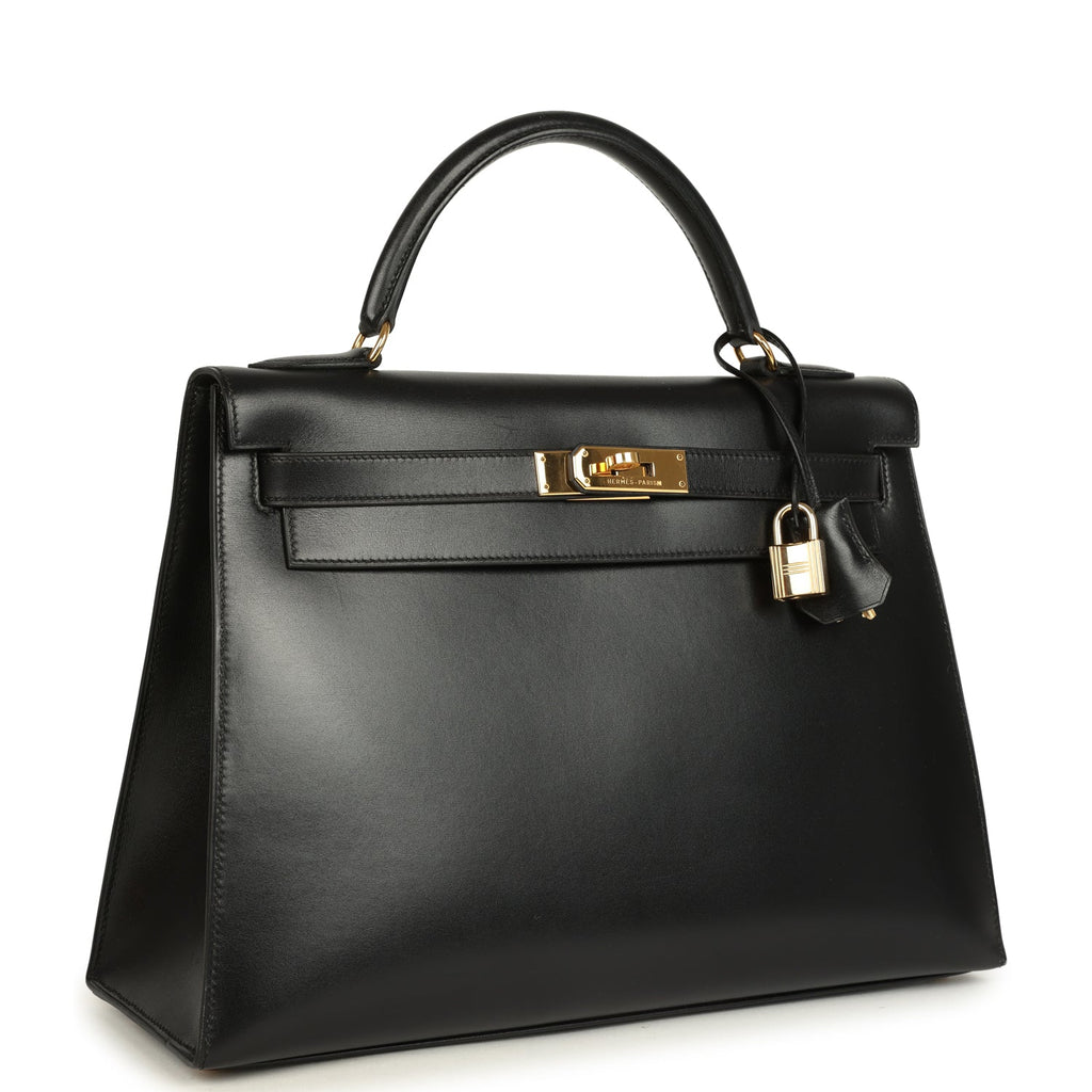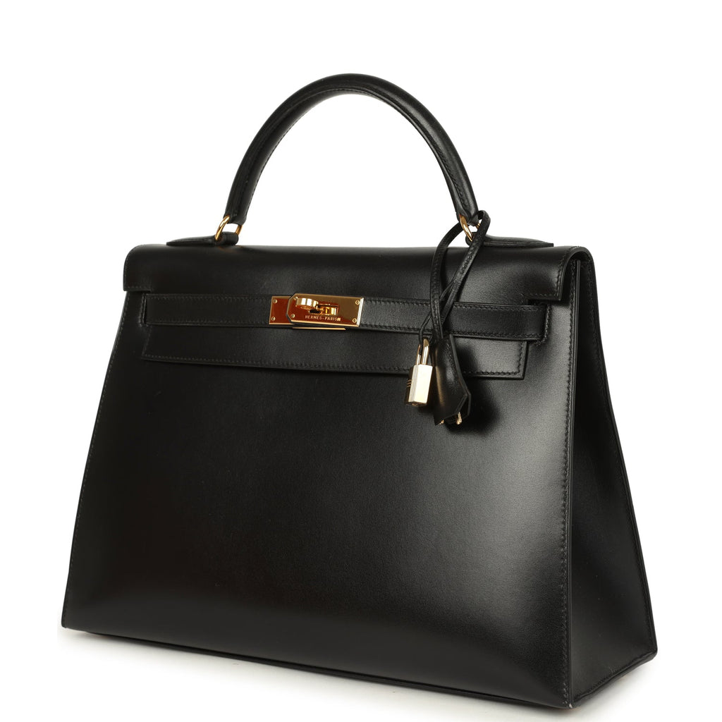Vintage Hermes Kelly Sellier 32 Black Box Gold Hardware